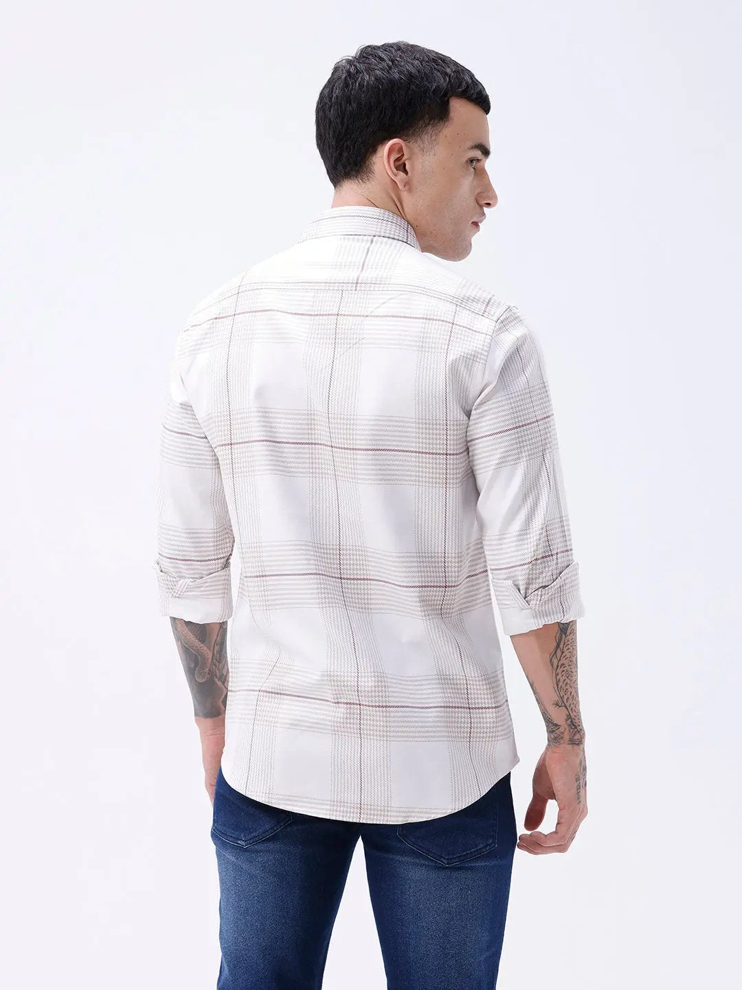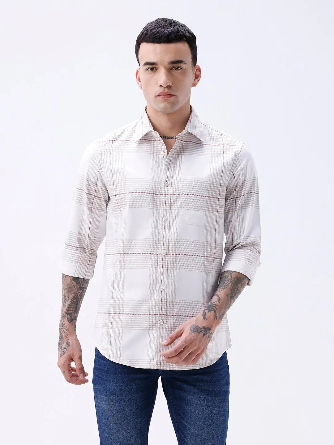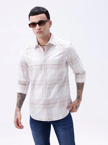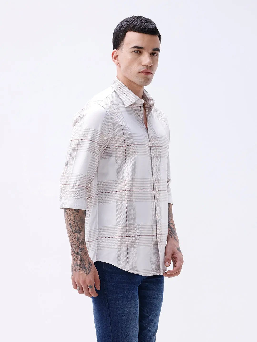 The Beige Dobby Checks Shirt offers a stylish, comfortable fit with subtle check patterns, perfect for casual or smart-casual occasions.