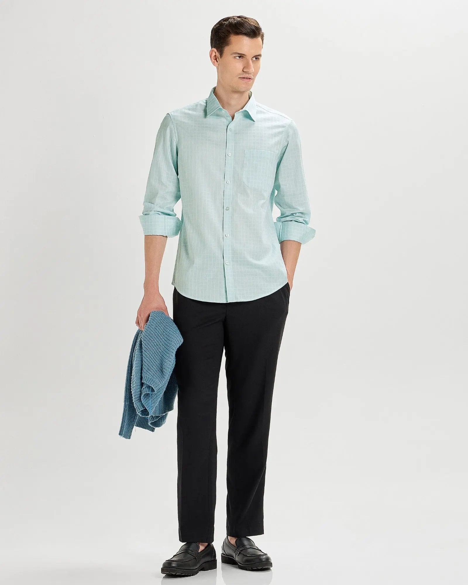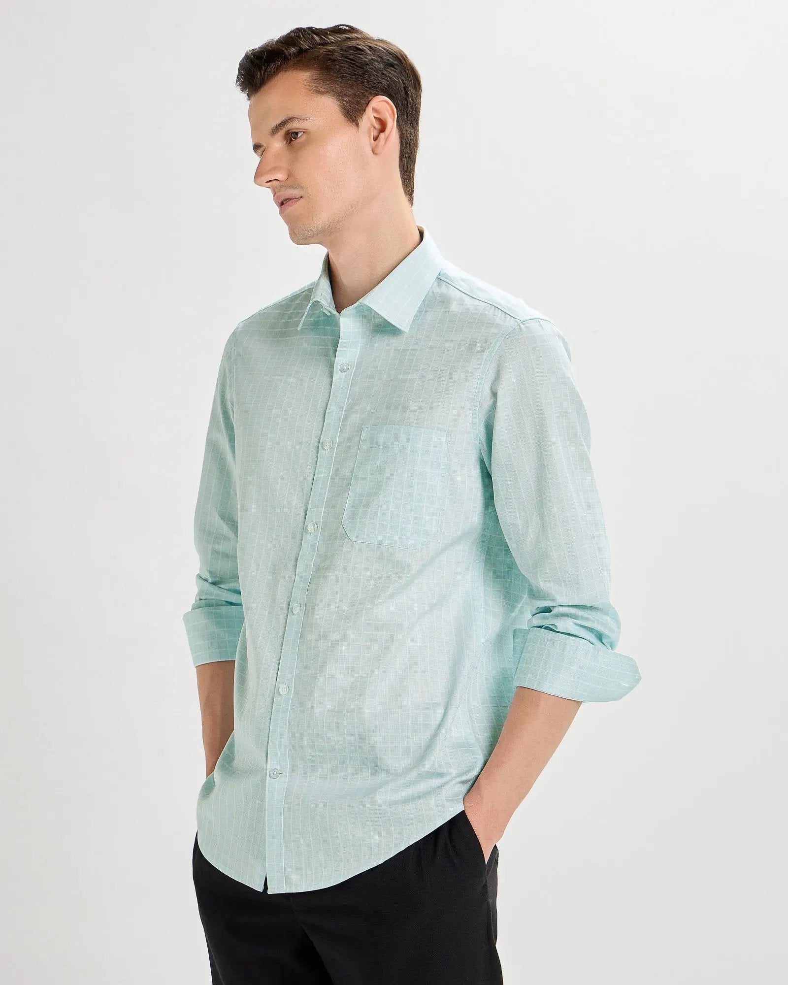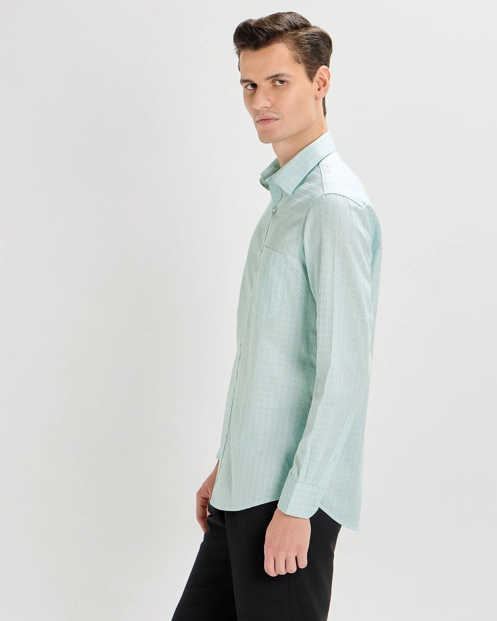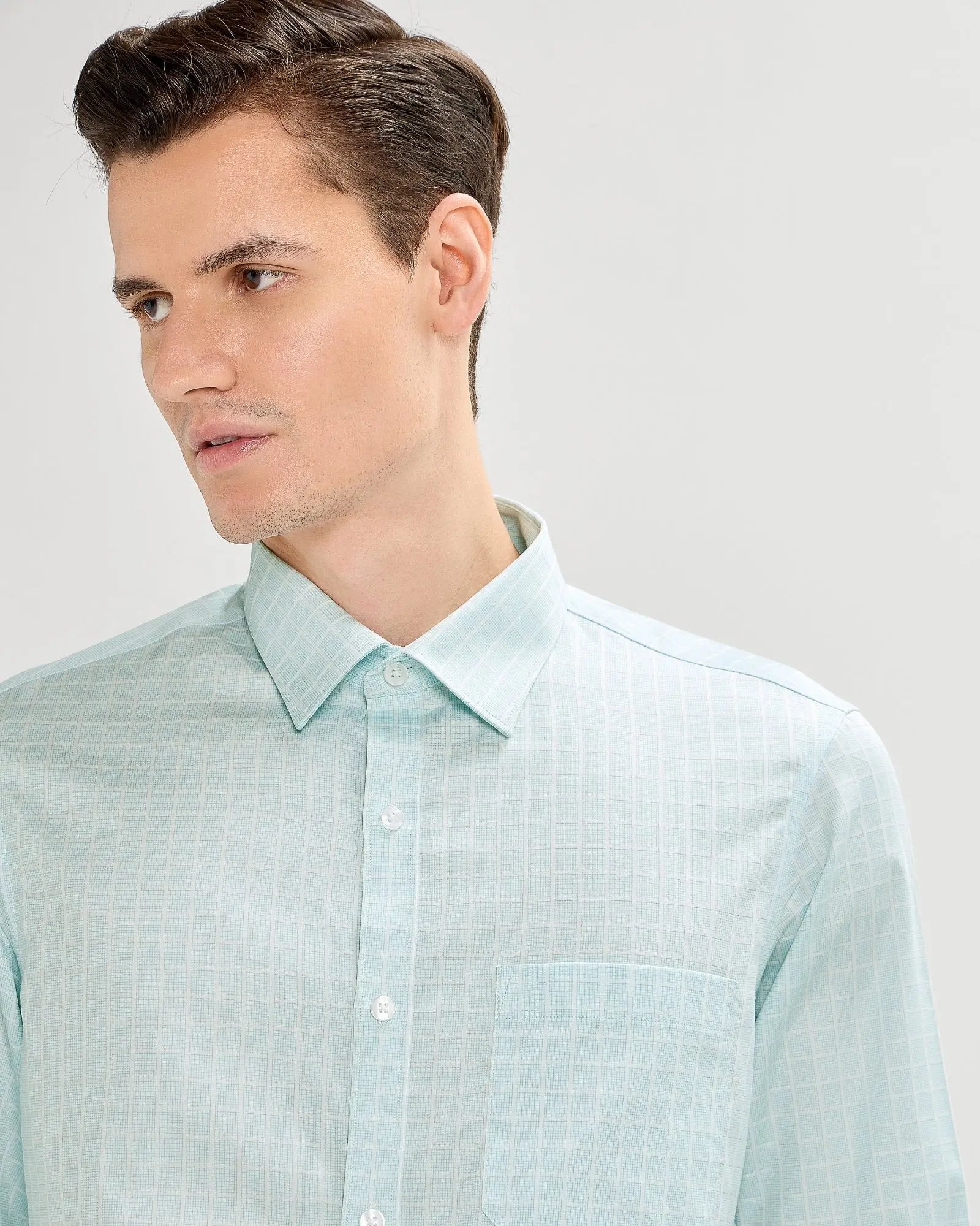 Get a feel for our luxurious Biscay Green Checks Shirt. Crafted from the softest Giza cotton fabric, this lightweight fabric is the definition for ultimate comfort. Perfect for any formal occasion, this shirt exudes an elegant and refined aura.