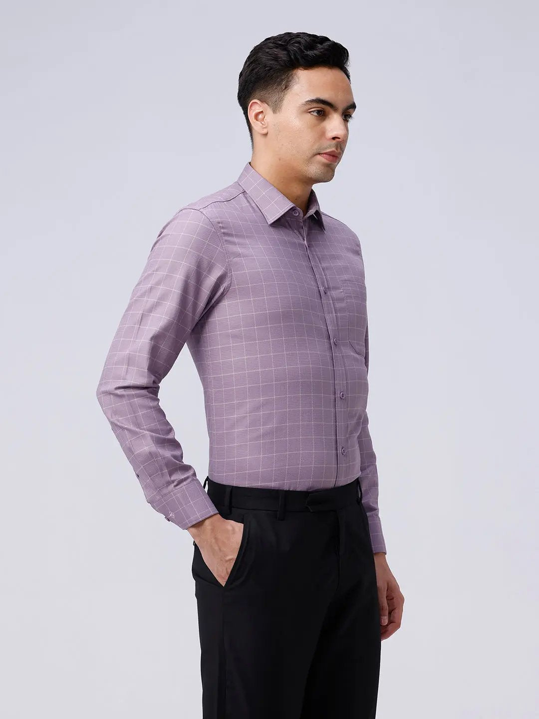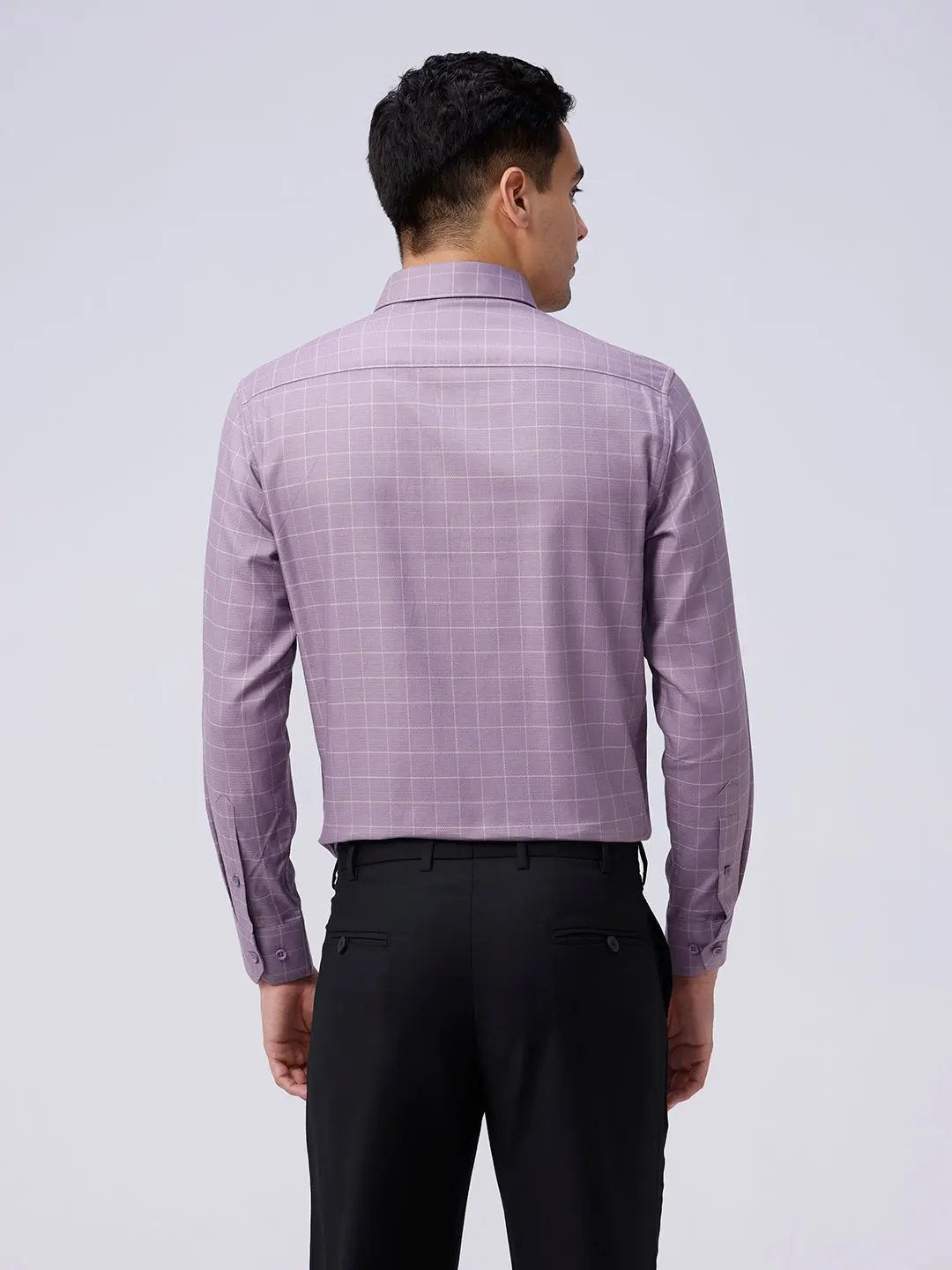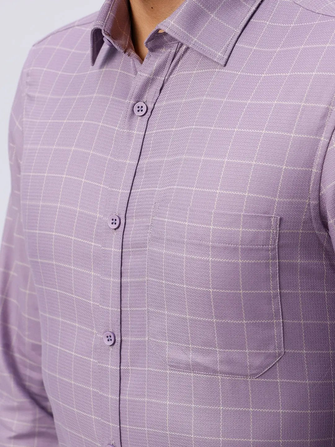 Elegant mauve checks on dobby fabric, suitable for casual or office wear.