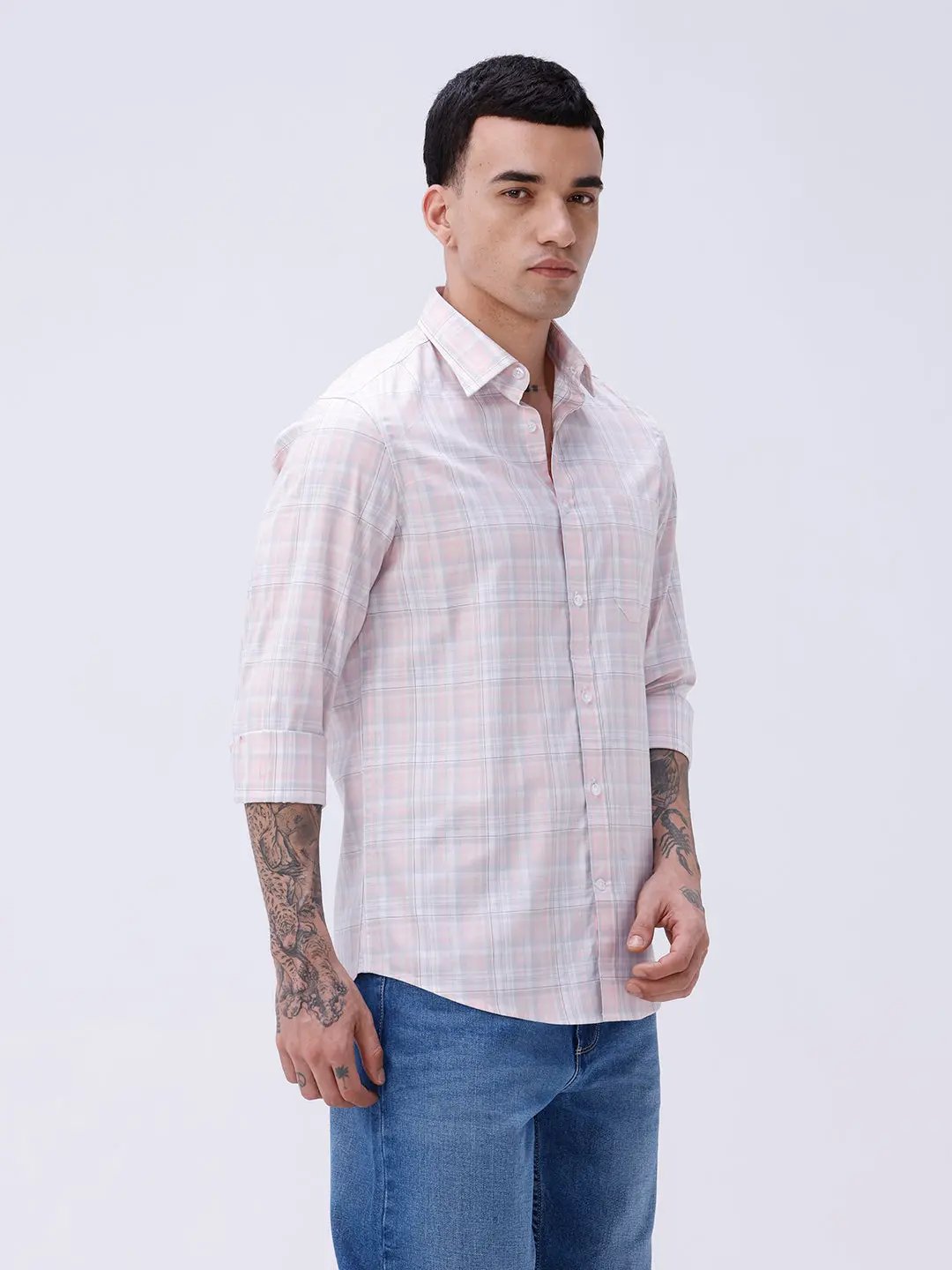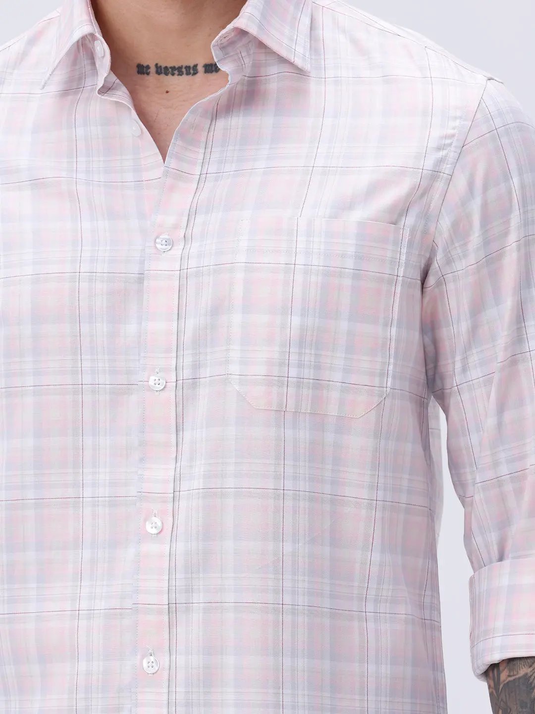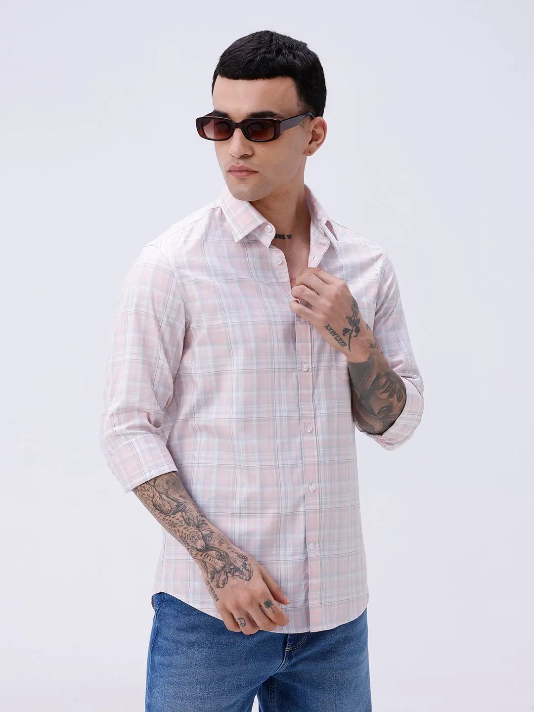 Soft Tencel shirt with pink and grey checks, perfect for relaxed, stylish outings.