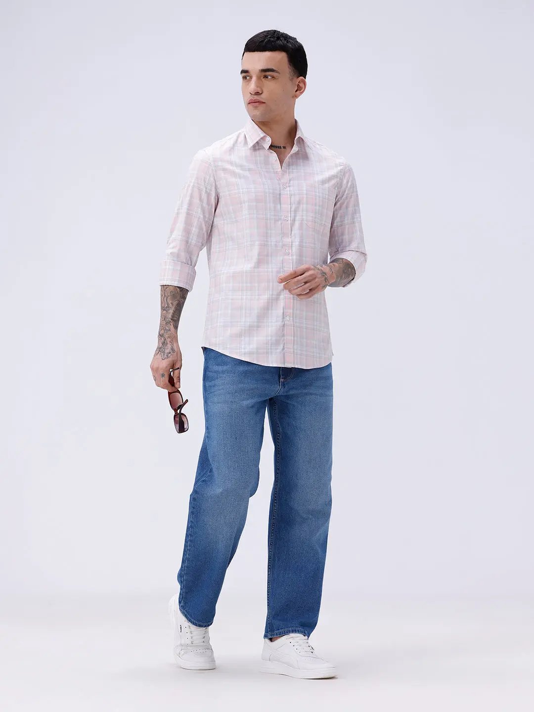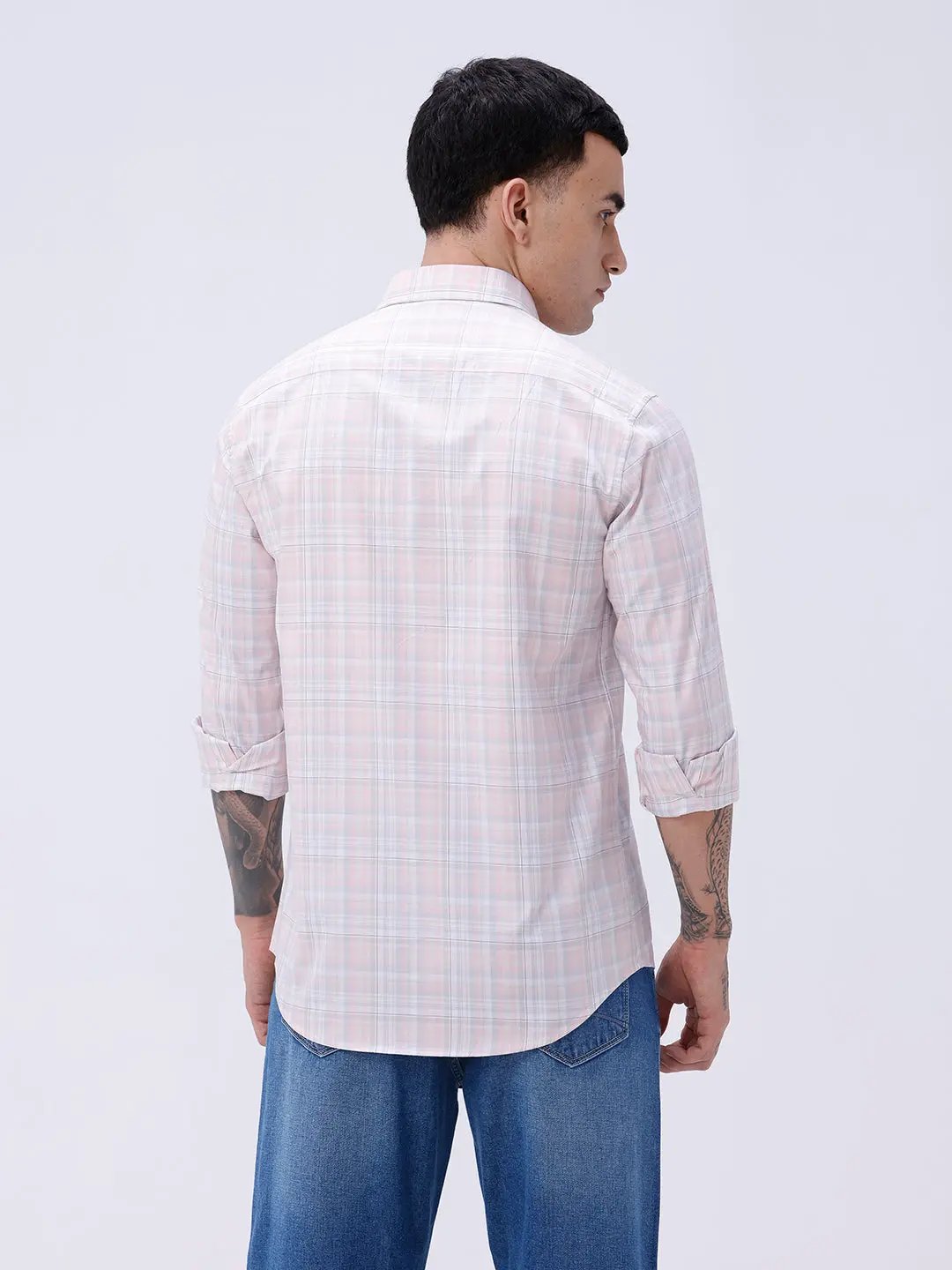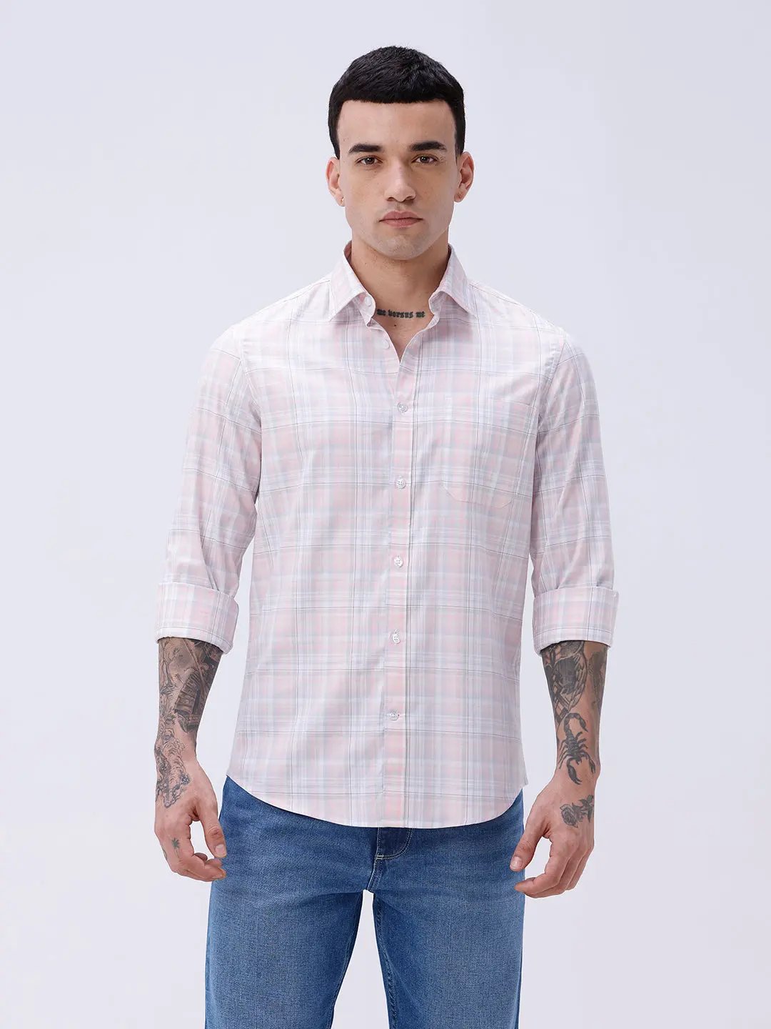 Soft Tencel shirt with pink and grey checks, perfect for relaxed, stylish outings.