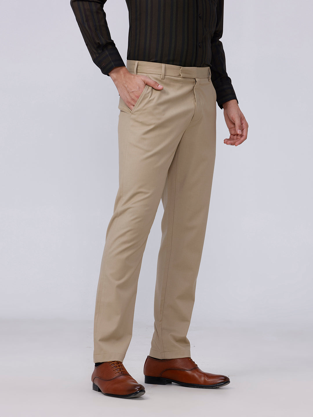 A versatile beige chino trouser featuring a classic fit, lightweight cotton fabric, and a clean, timeless design perfect for casual or semi-formal occasions.