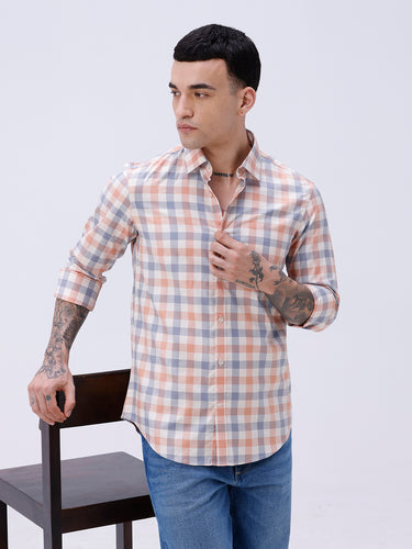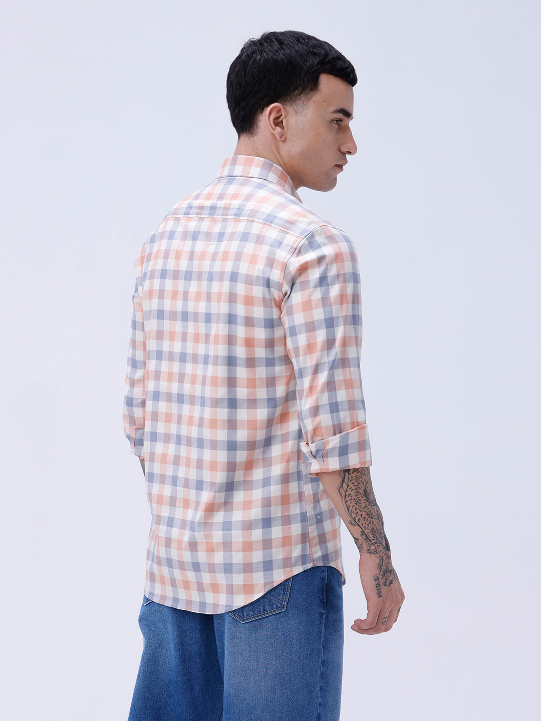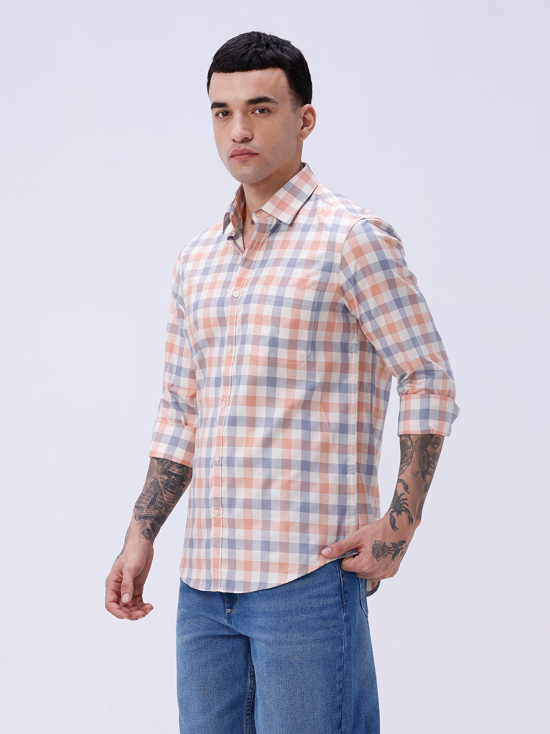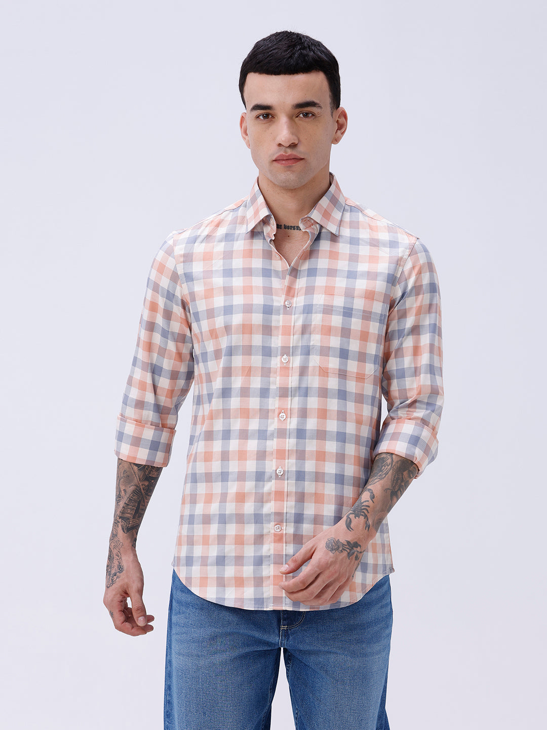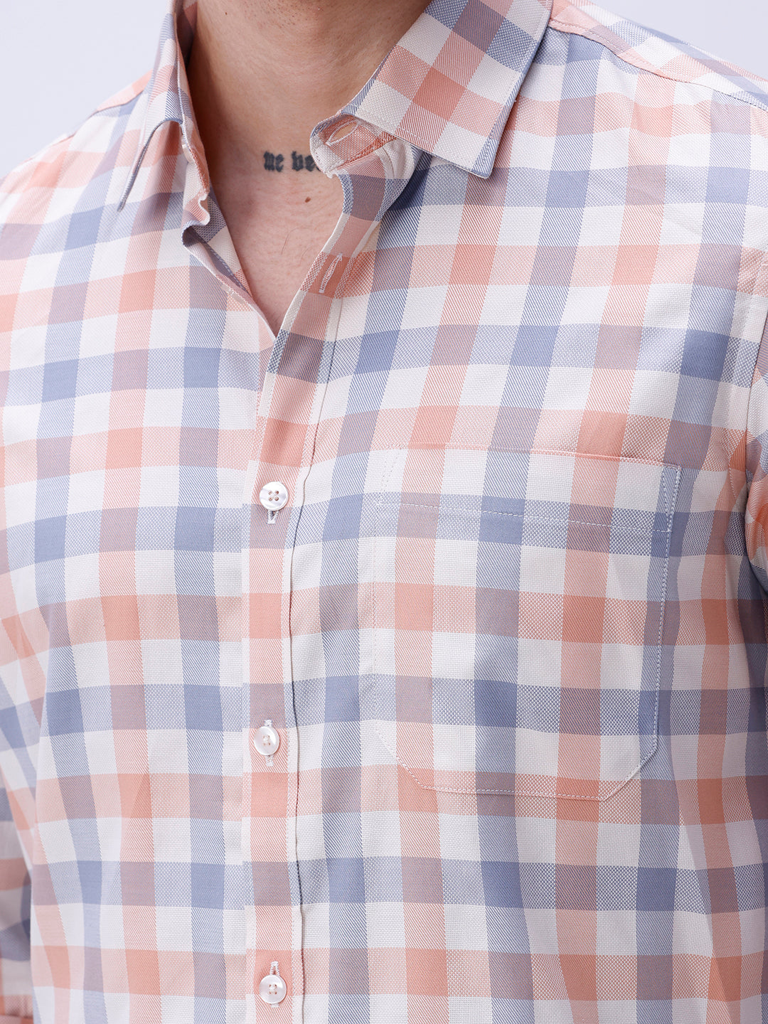 Versatile dobby shirt with checks in blue and beige for a classic yet stylish look.