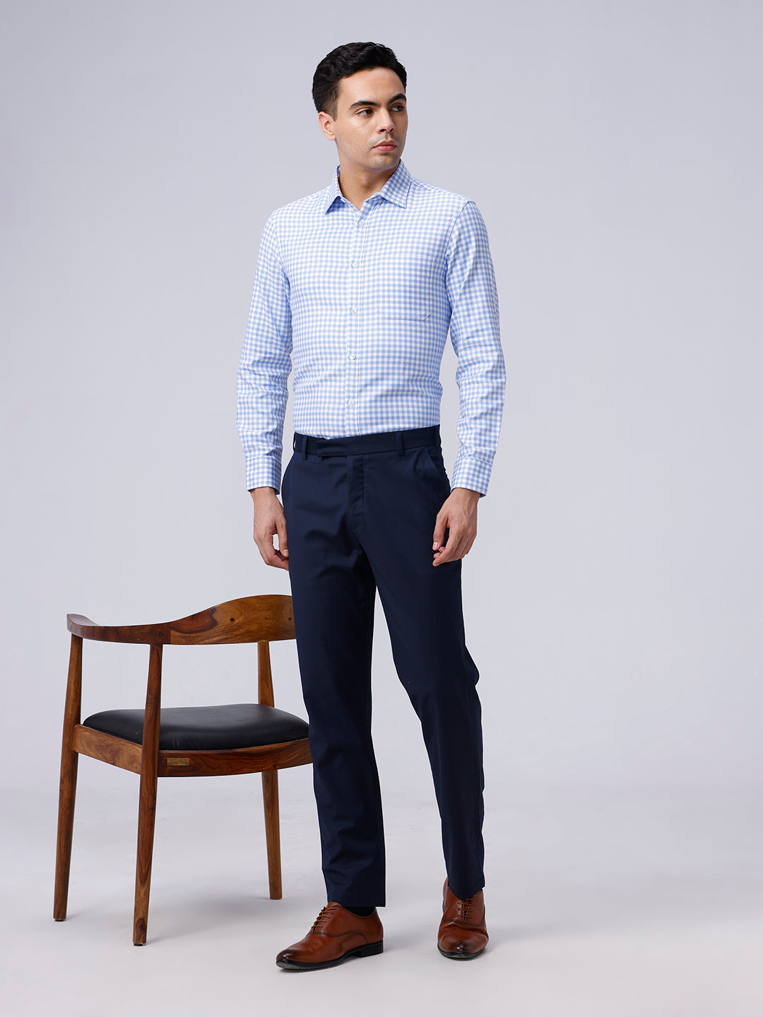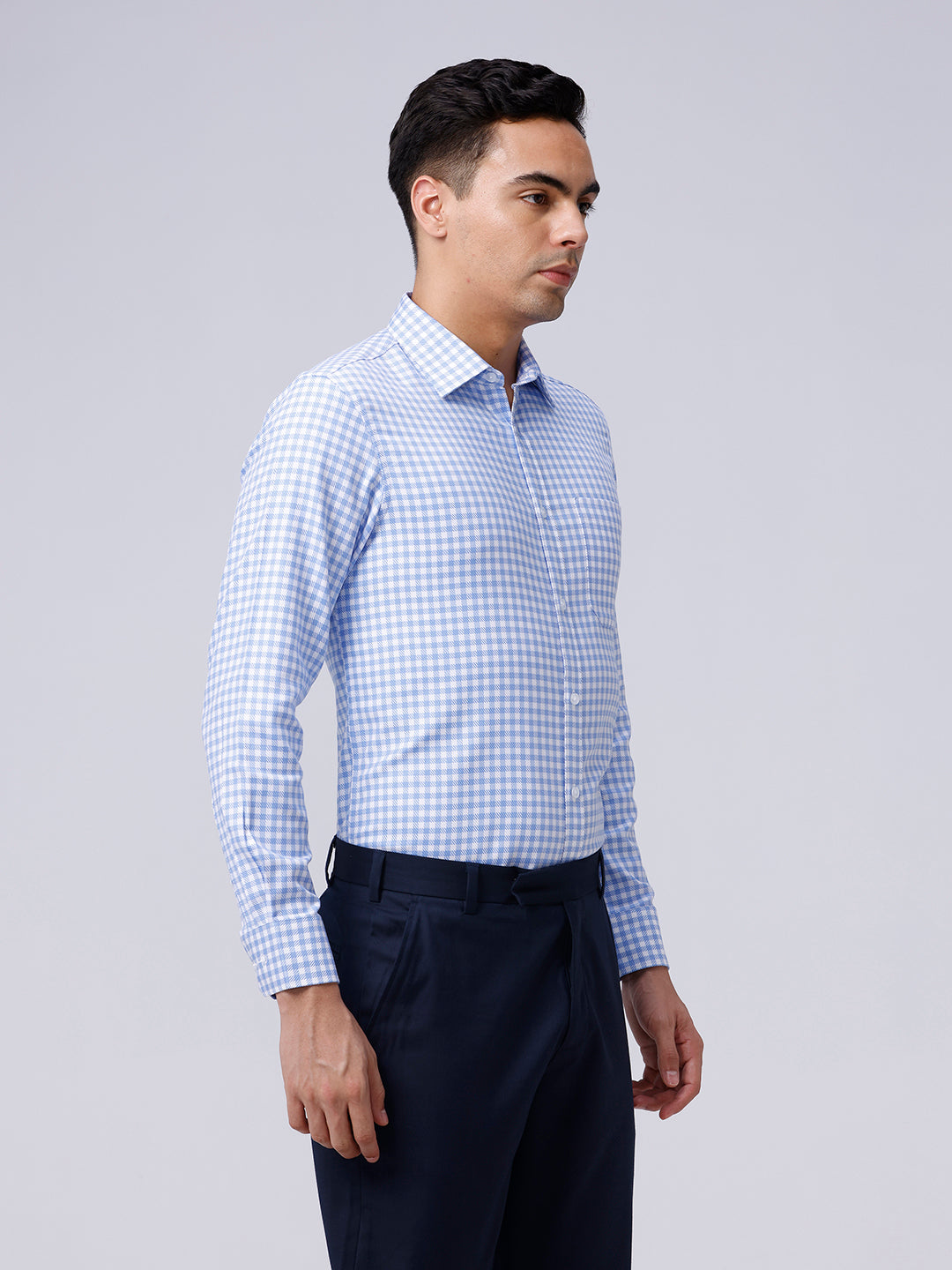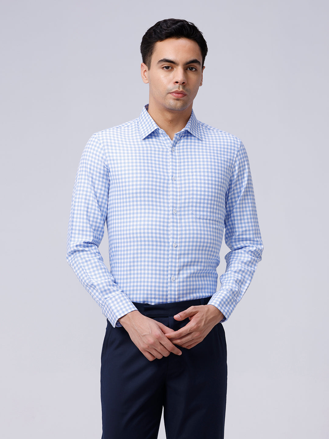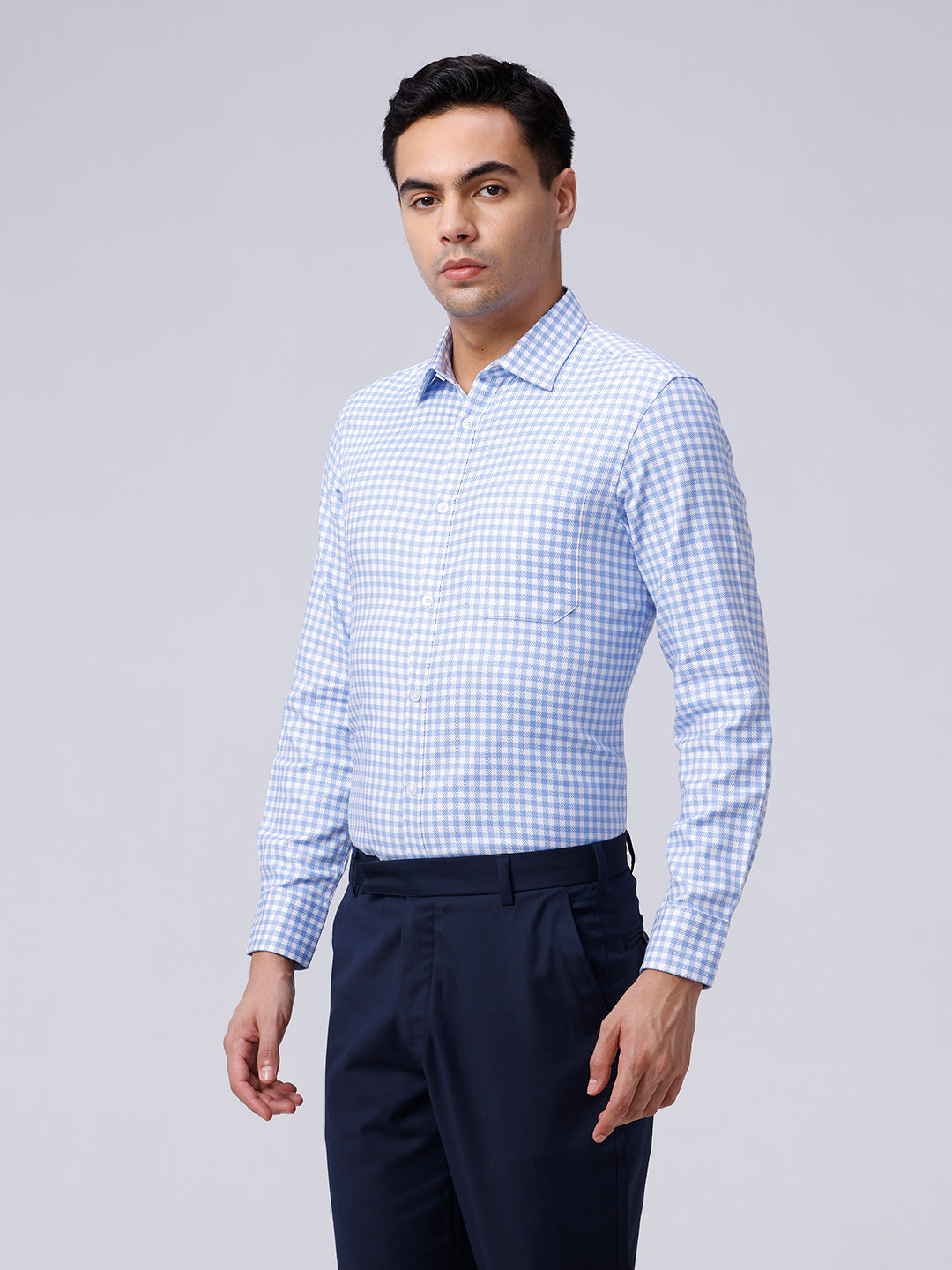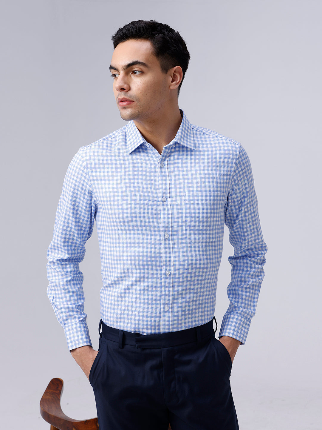 Blue and White Checks Dobby Shirt