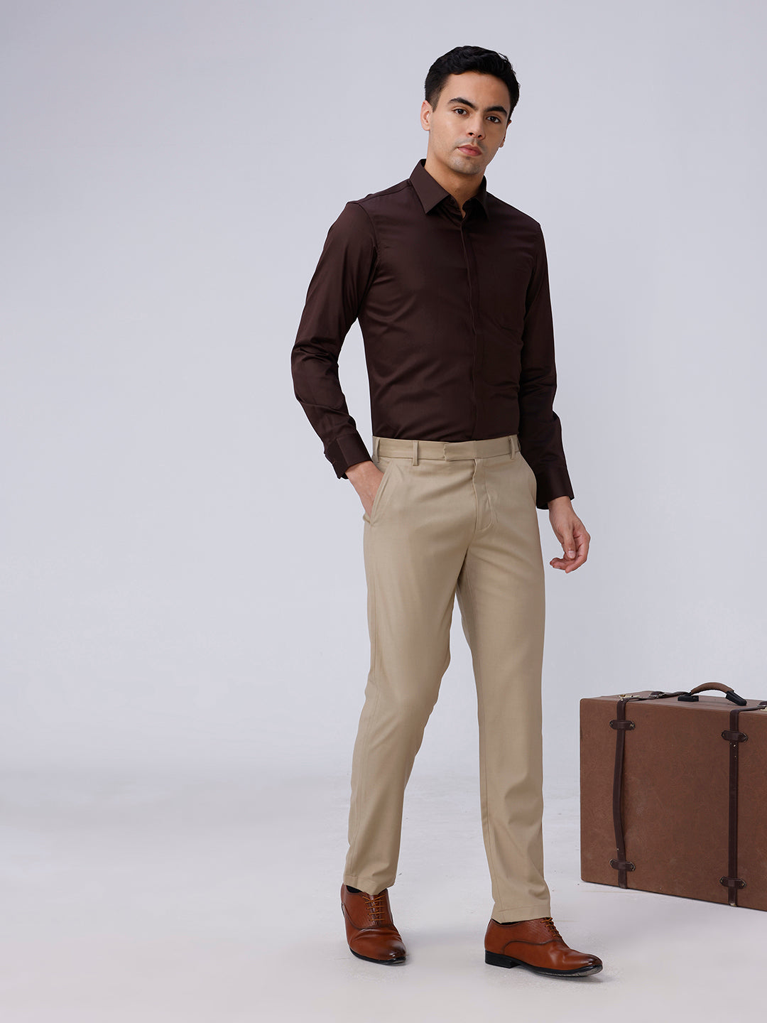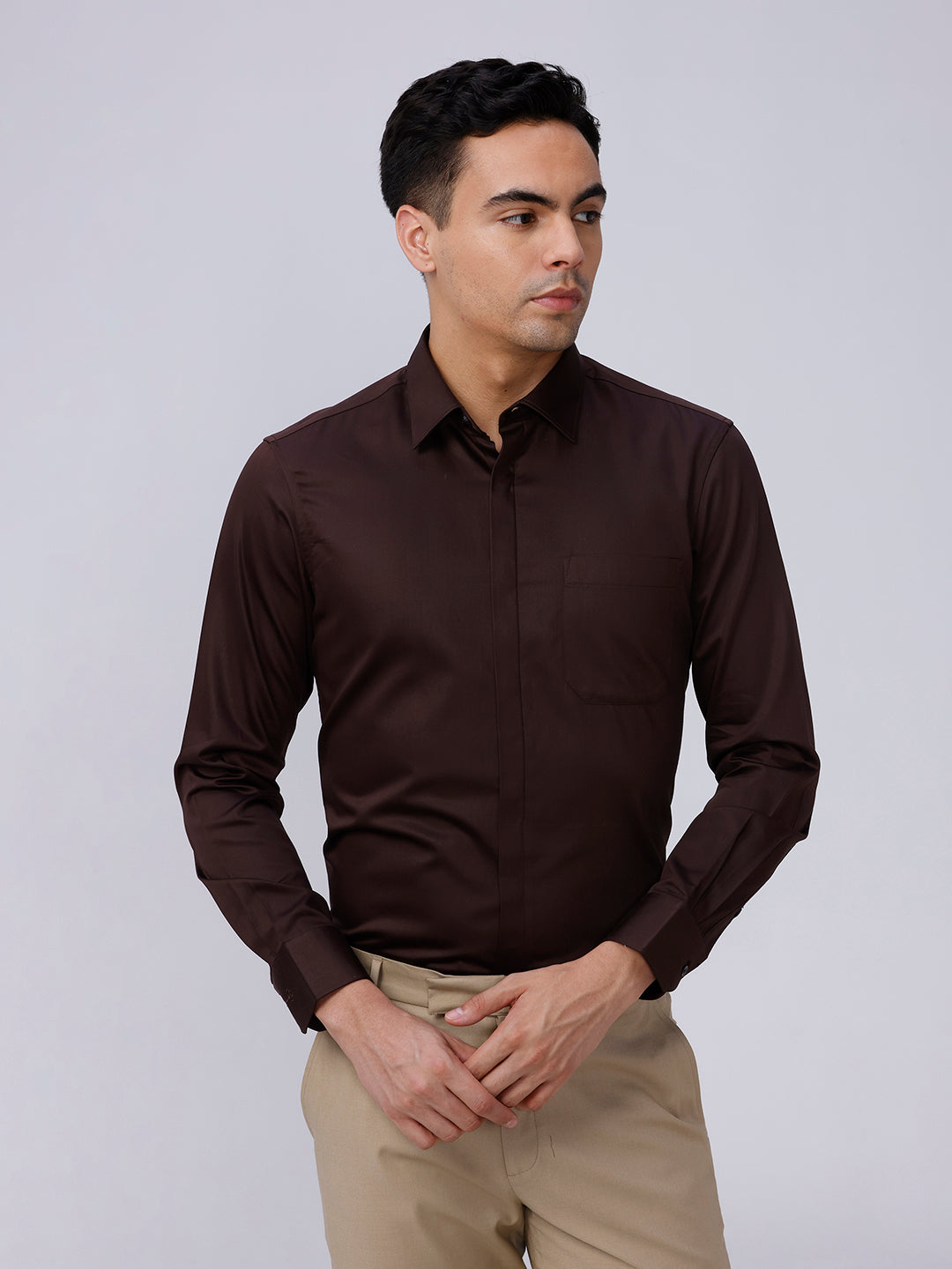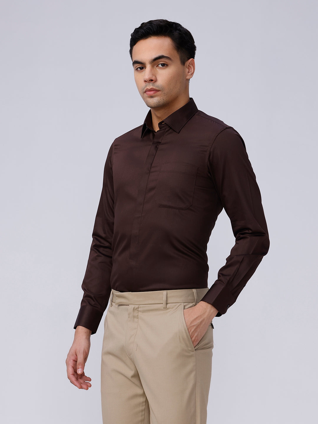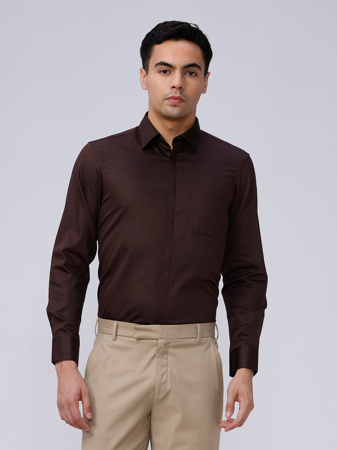 Brown Satin Plain Shirt