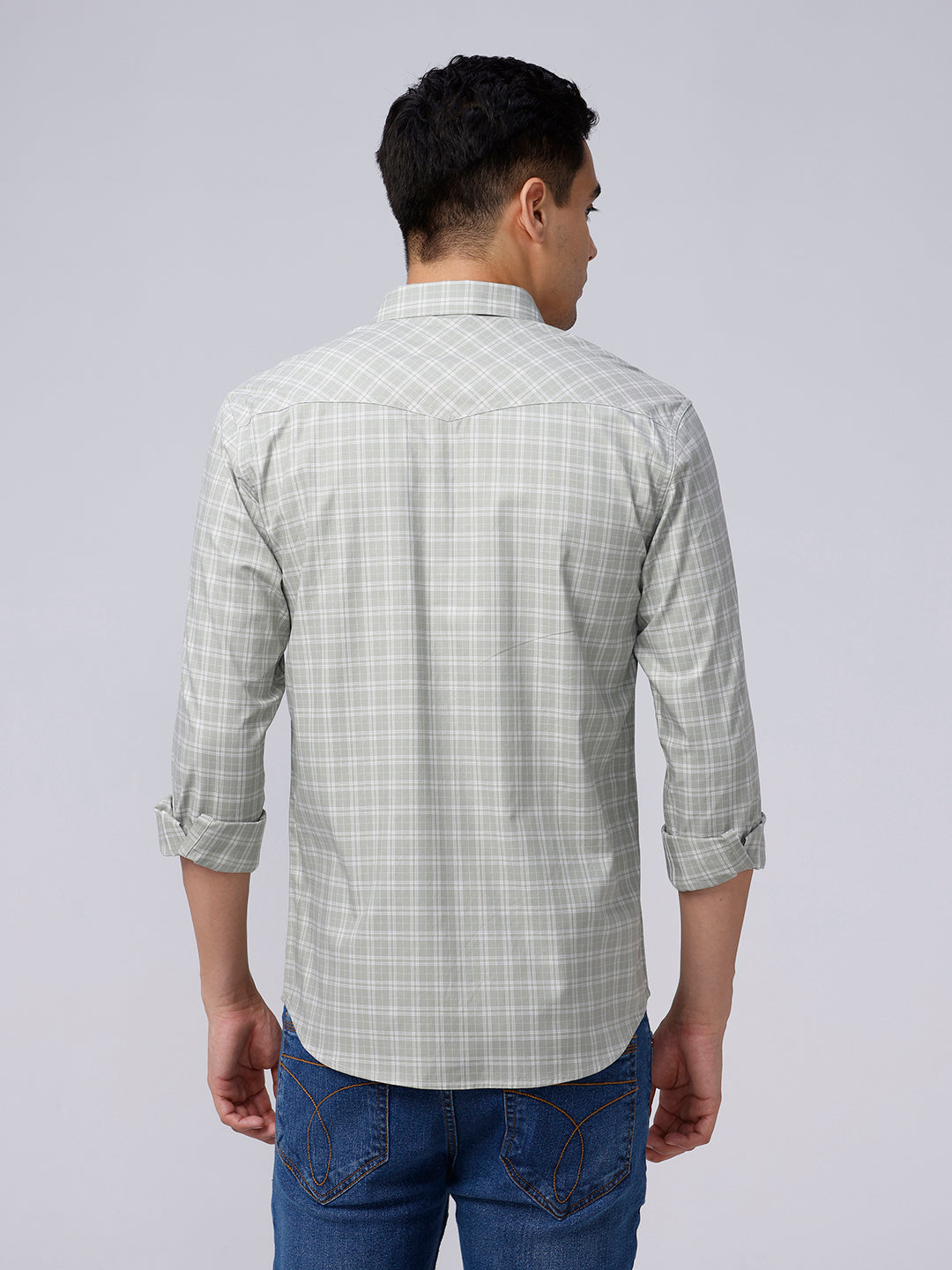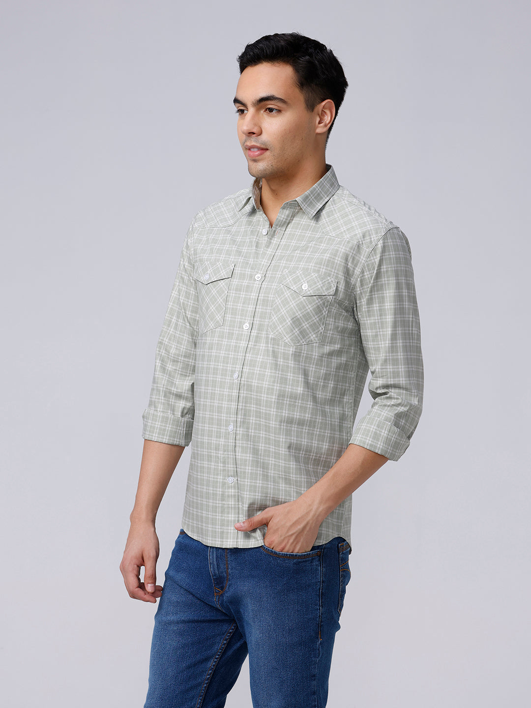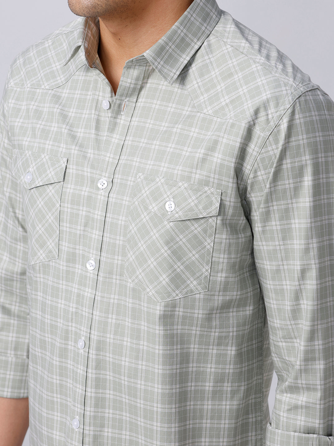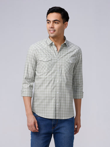 Green and Grey Checks Poplin / Dobby Shirt