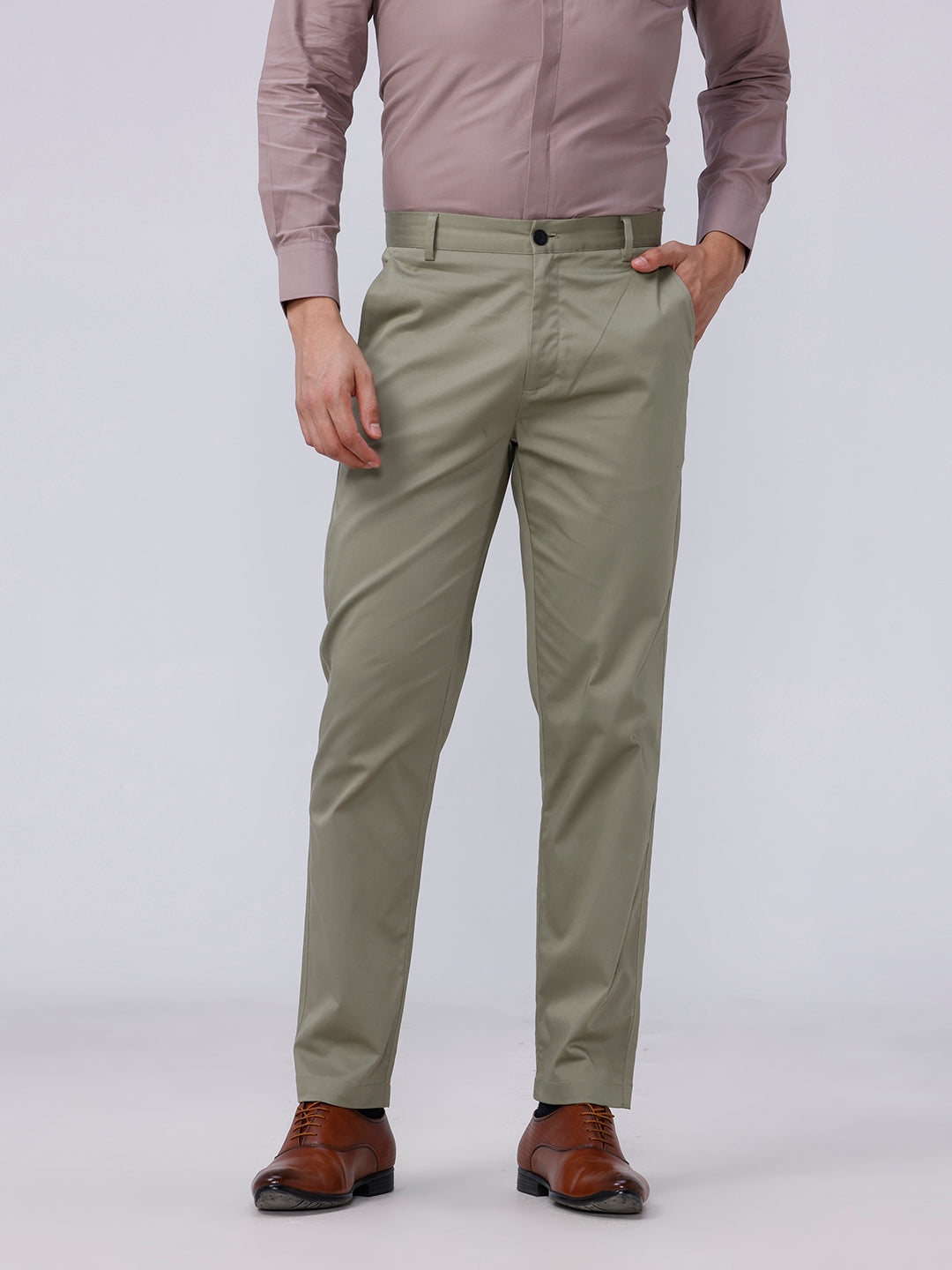 A classic green chino trouser with a regular fit, durable cotton blend fabric, and a versatile design suitable for both casual and smart-casual occasions.