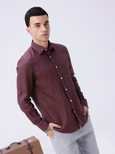 Maroon Full Sleeve Linen Shirt
