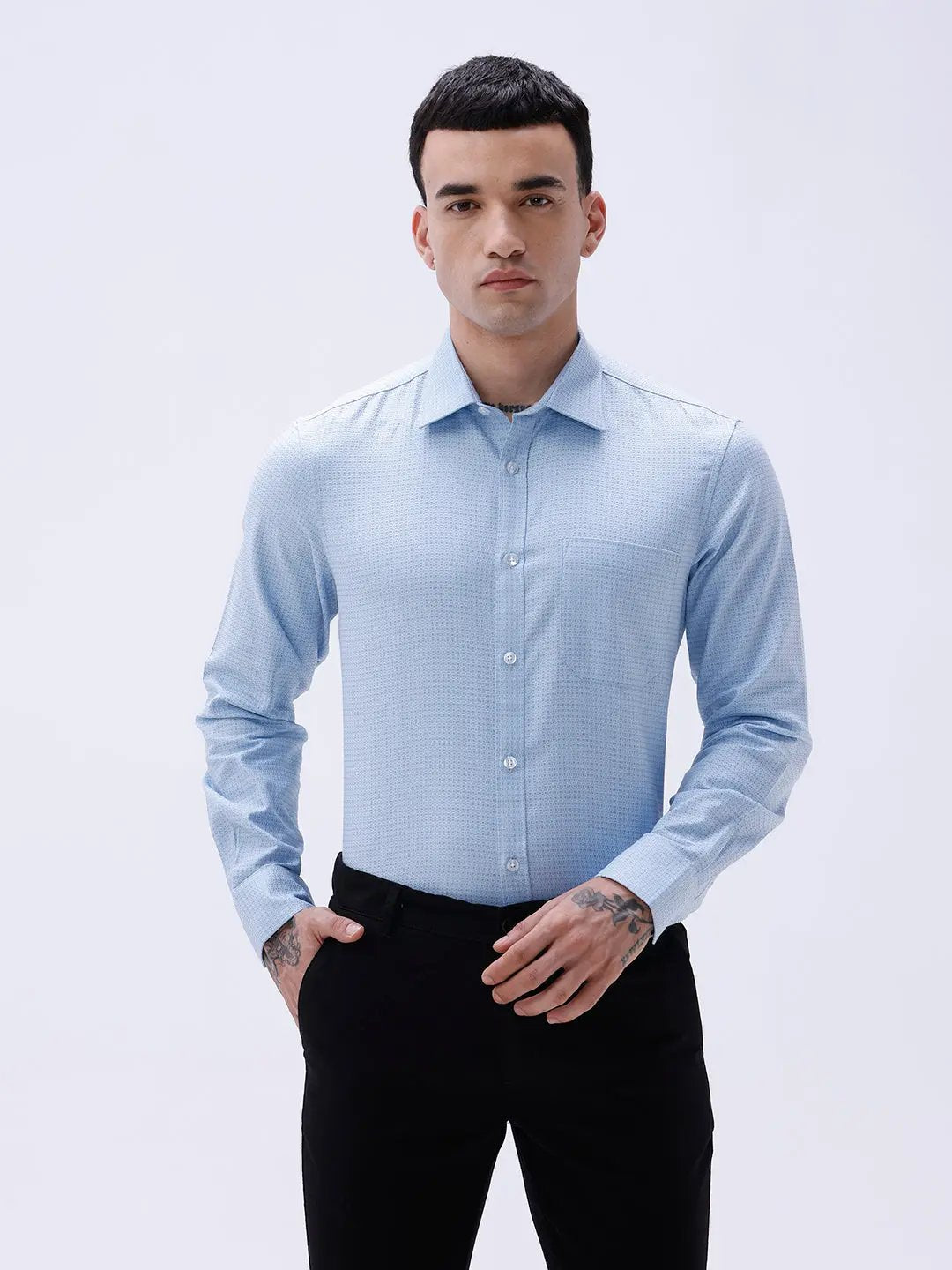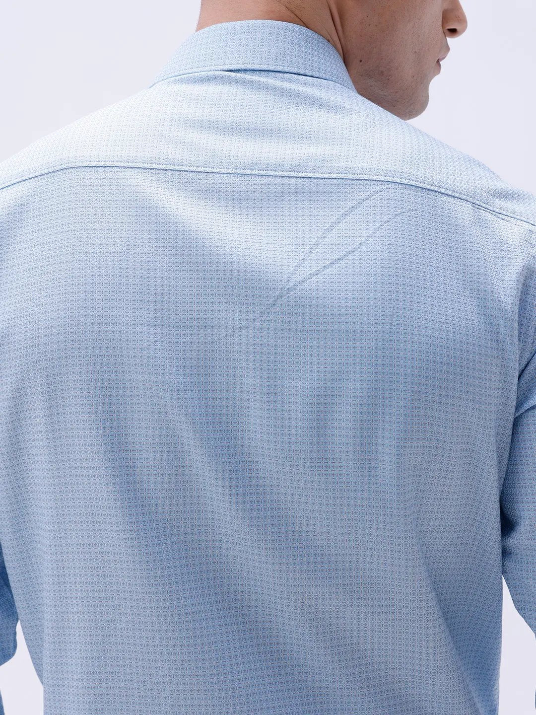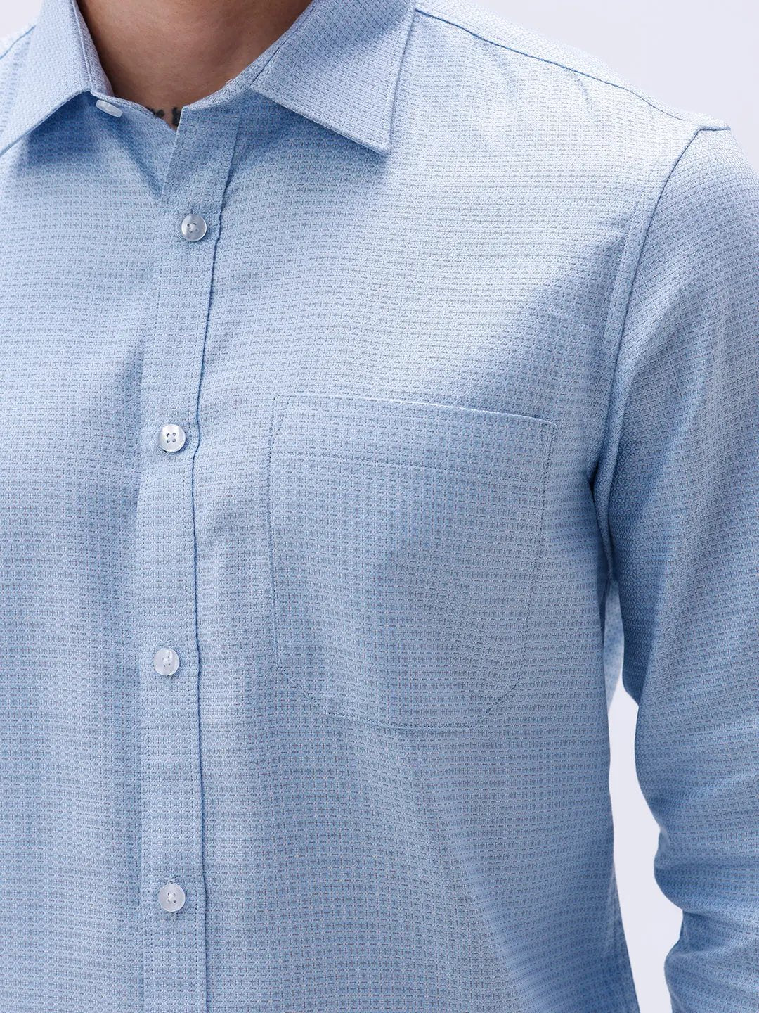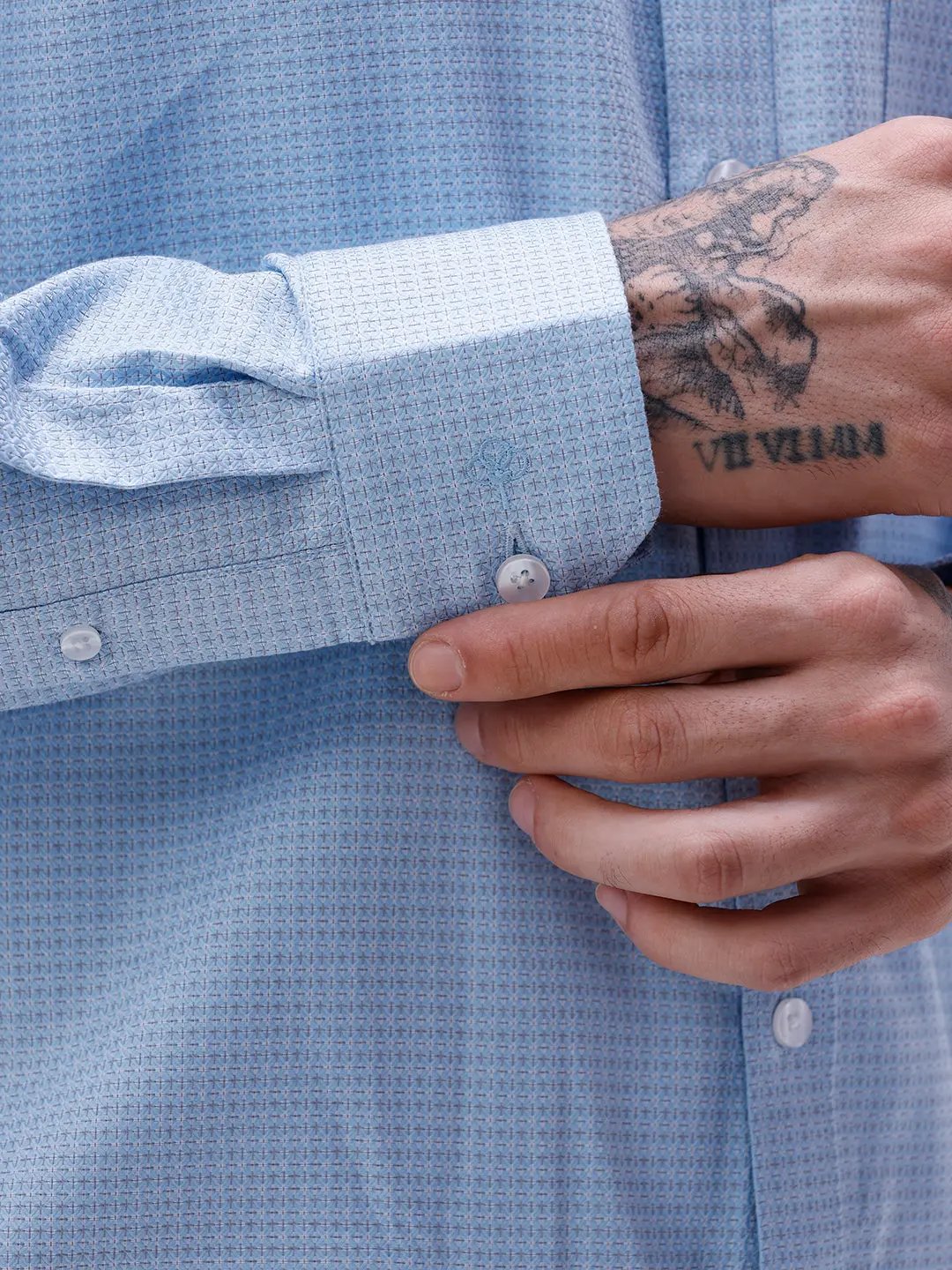 Well-fitted dobby shirt in blue with a structured design for a polished appearance.
