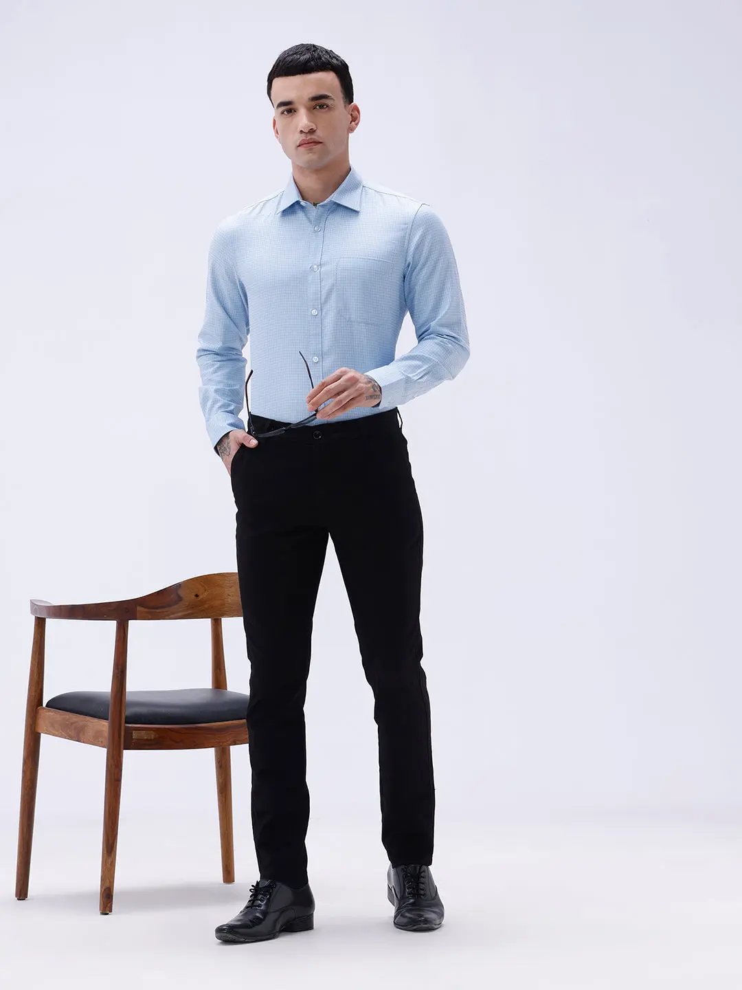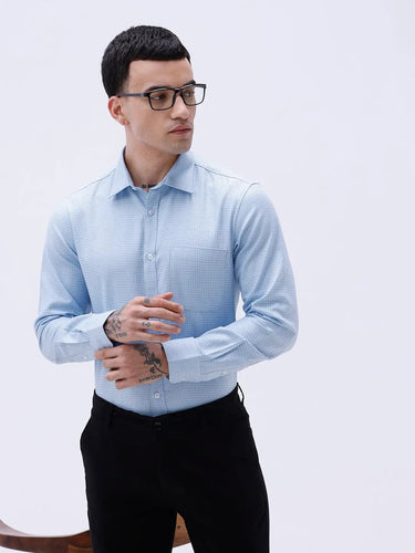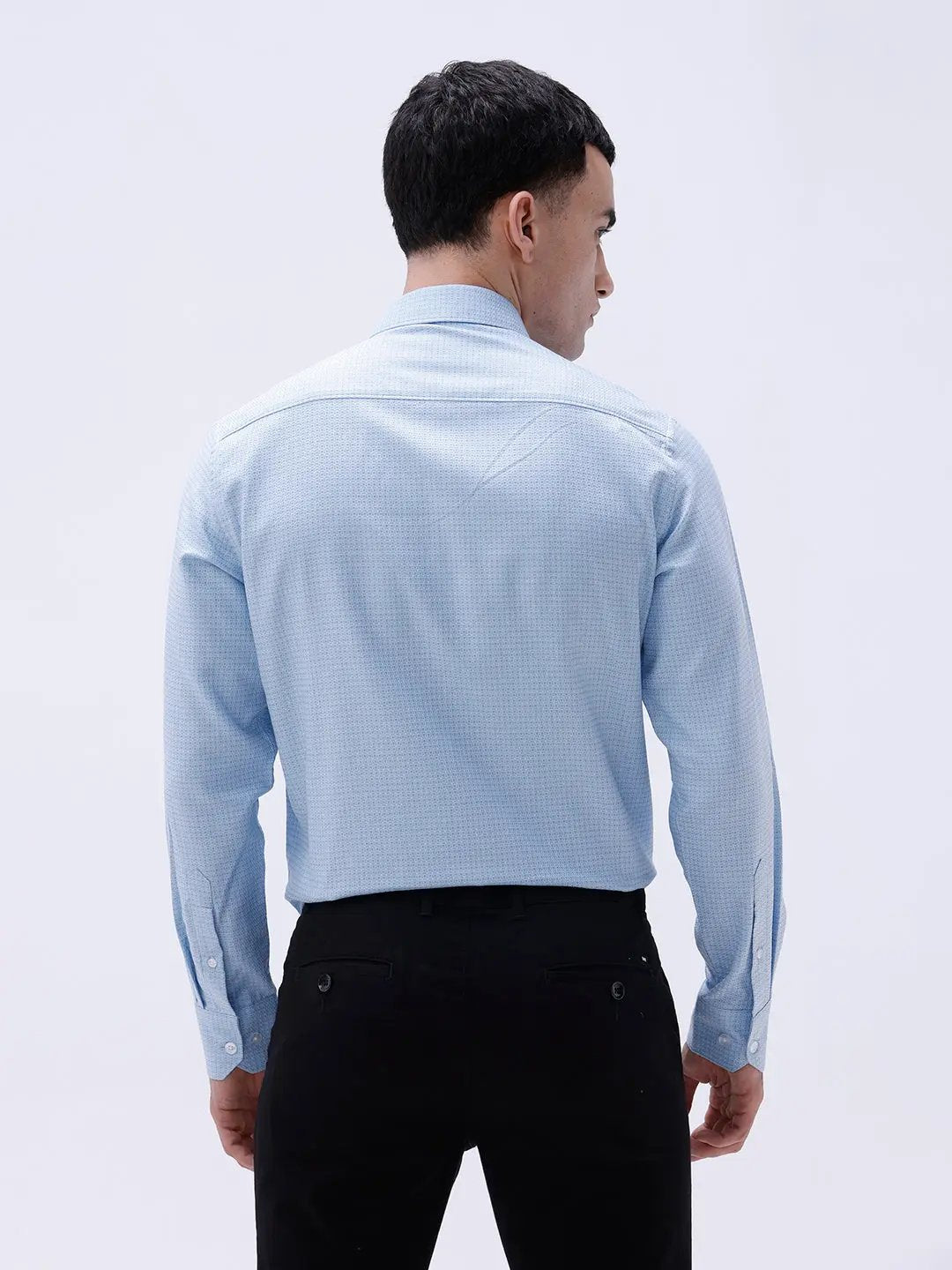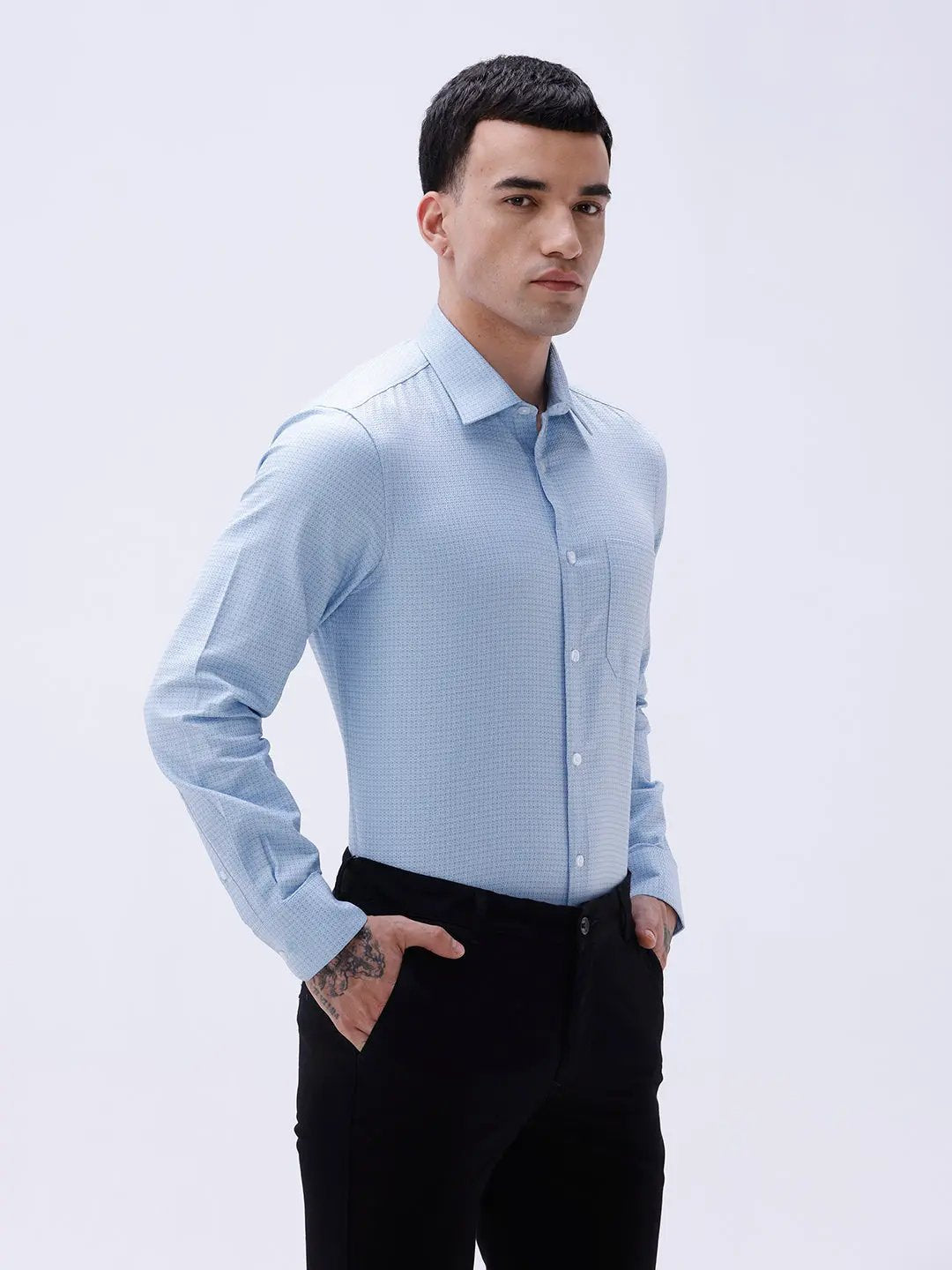 Well-fitted dobby shirt in blue with a structured design for a polished appearance.