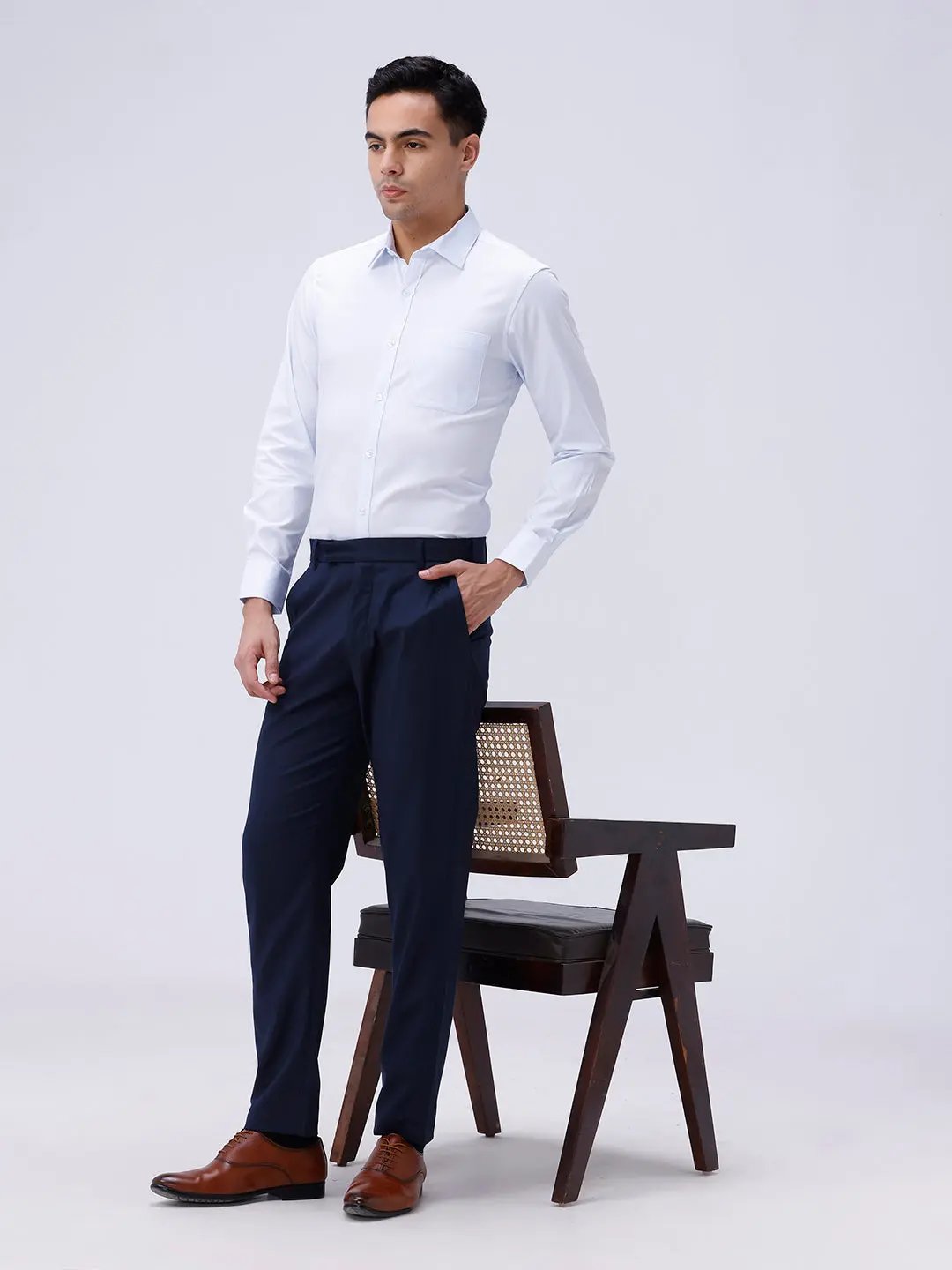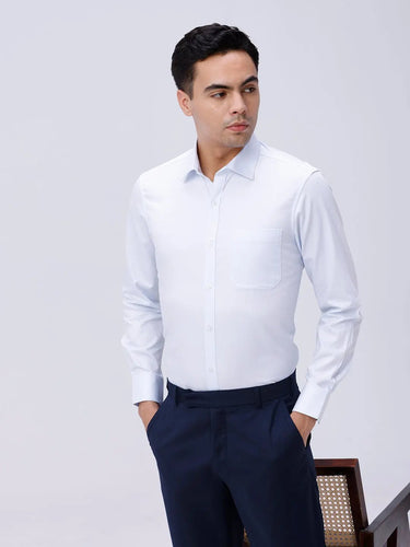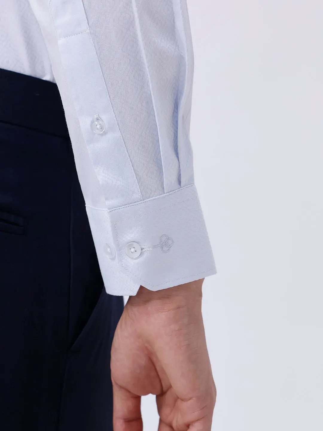 Elegant satin shirt in blue with a structured fit, ideal for formal or evening wear.