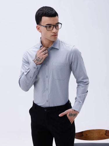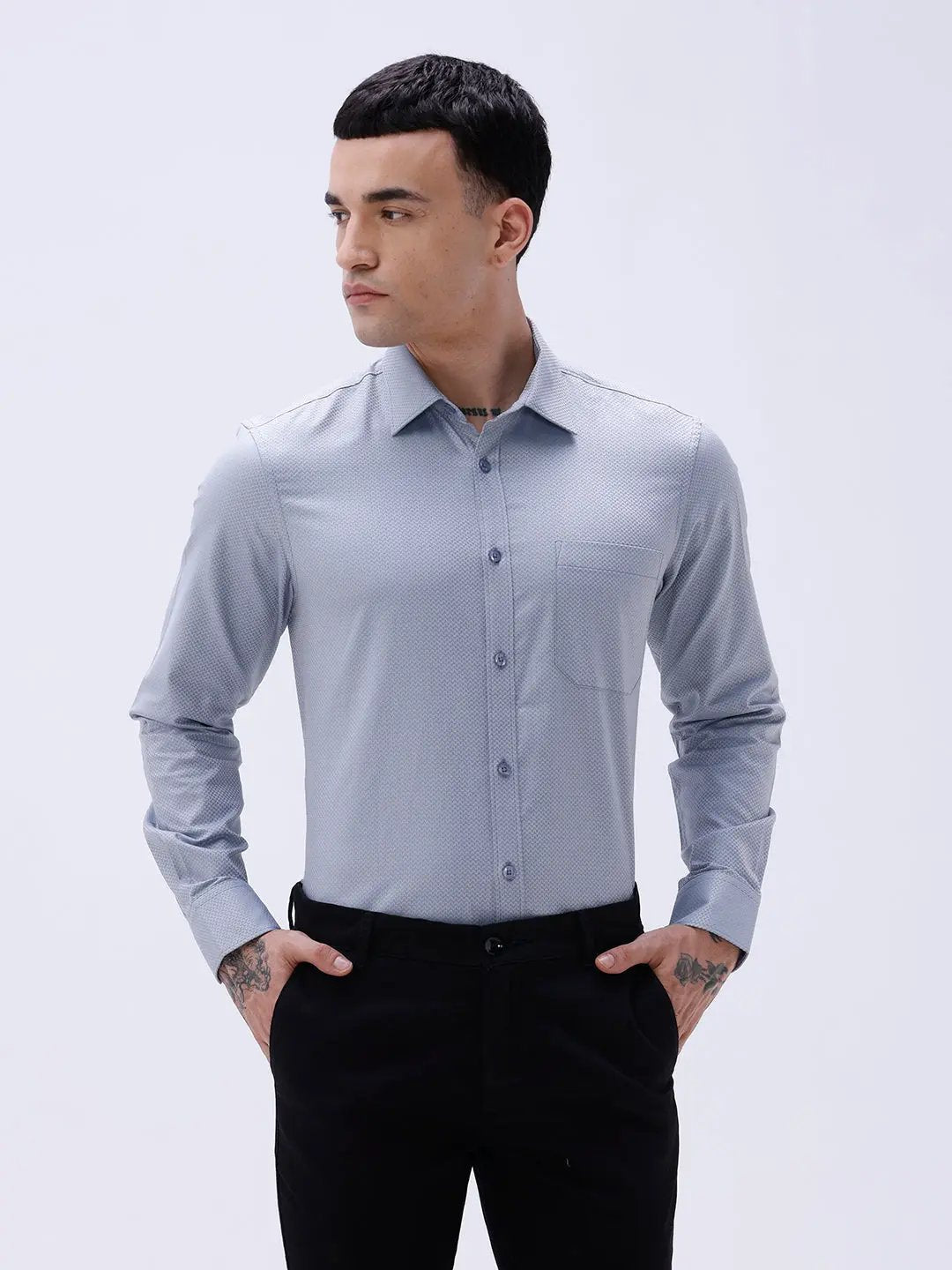 Durable twill fabric shirt in blue with a structured silhouette, great for smart casuals.