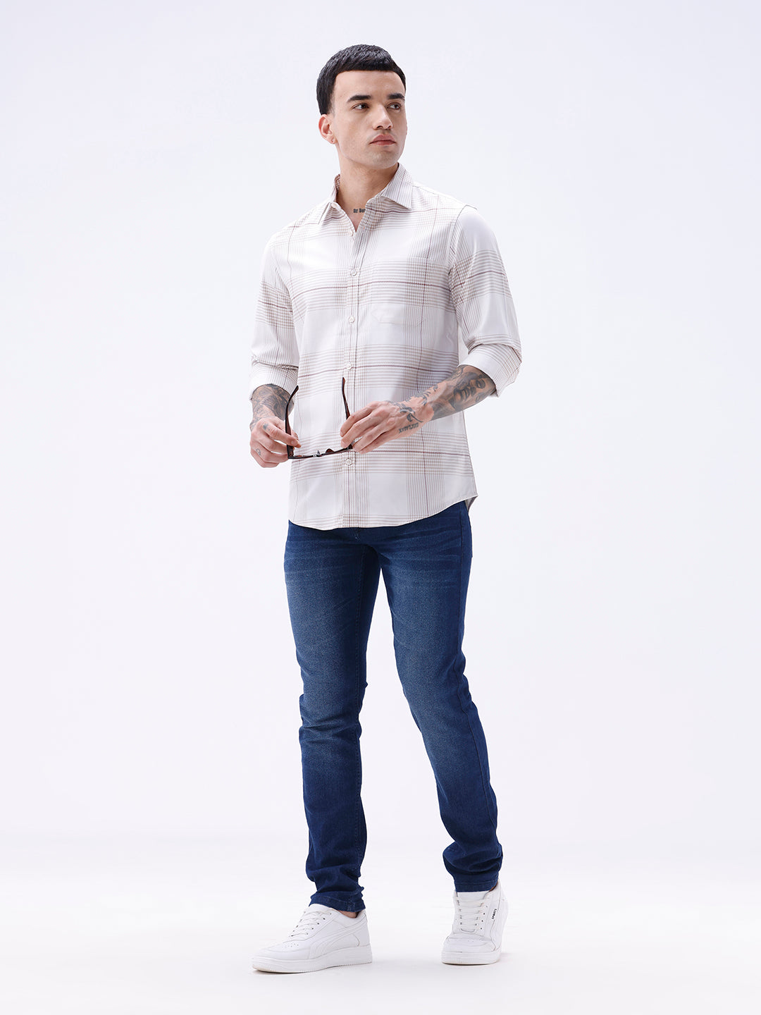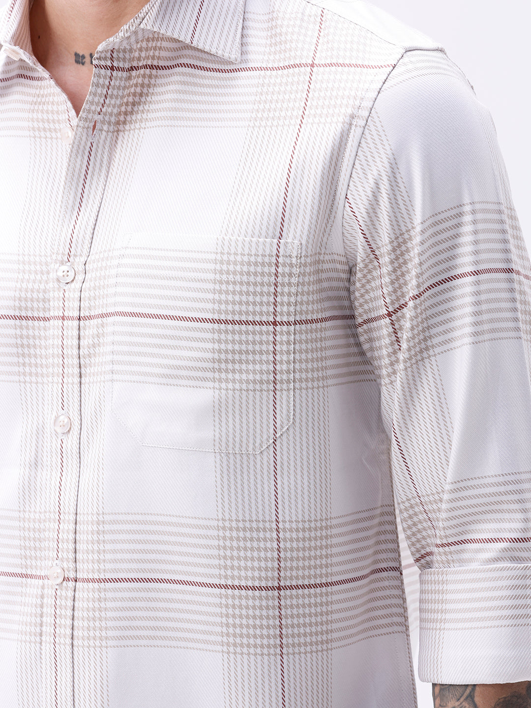 The Beige Dobby Checks Shirt offers a stylish, comfortable fit with subtle check patterns, perfect for casual or smart-casual occasions.