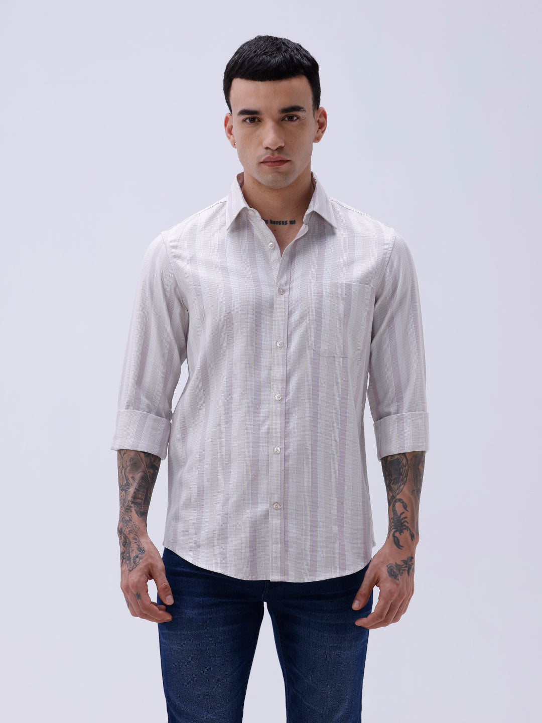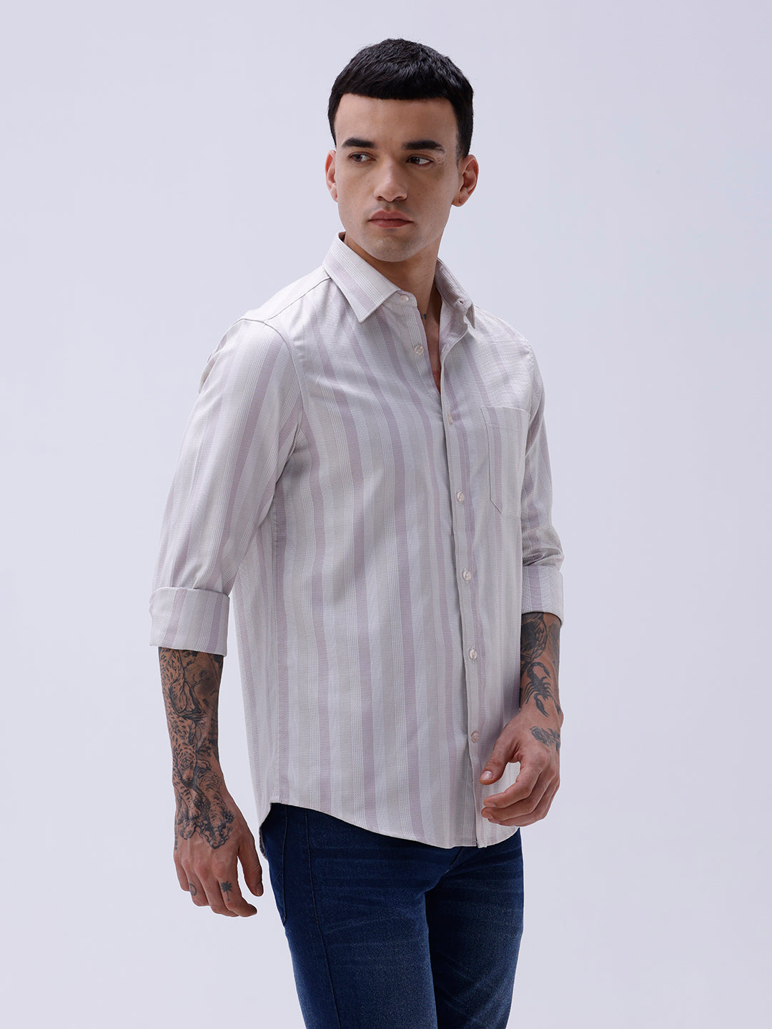 Mauve Striped Twill Shirt