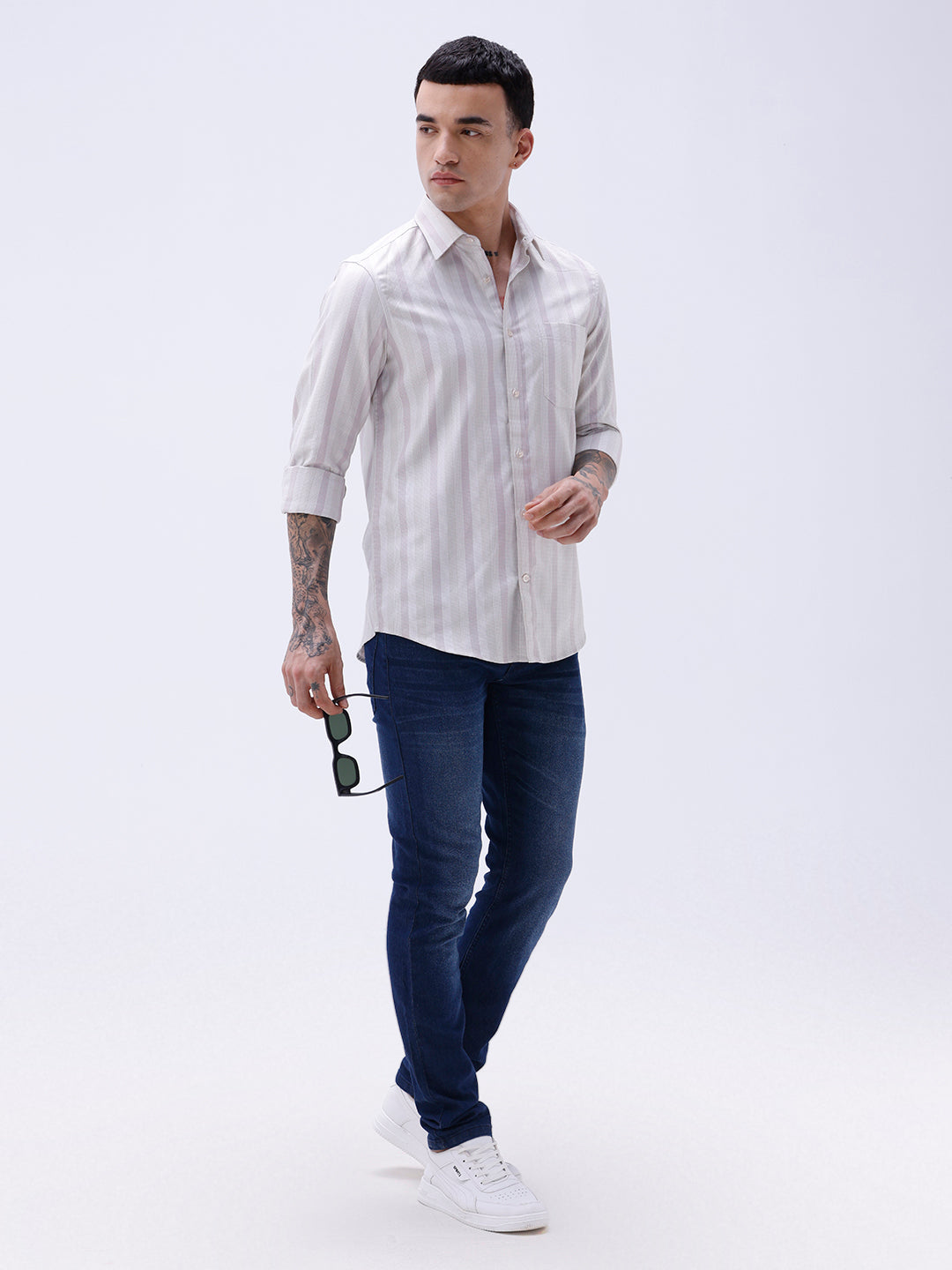Stylish twill shirt with light and dark Mauve stripes, great for a casual yet polished style.