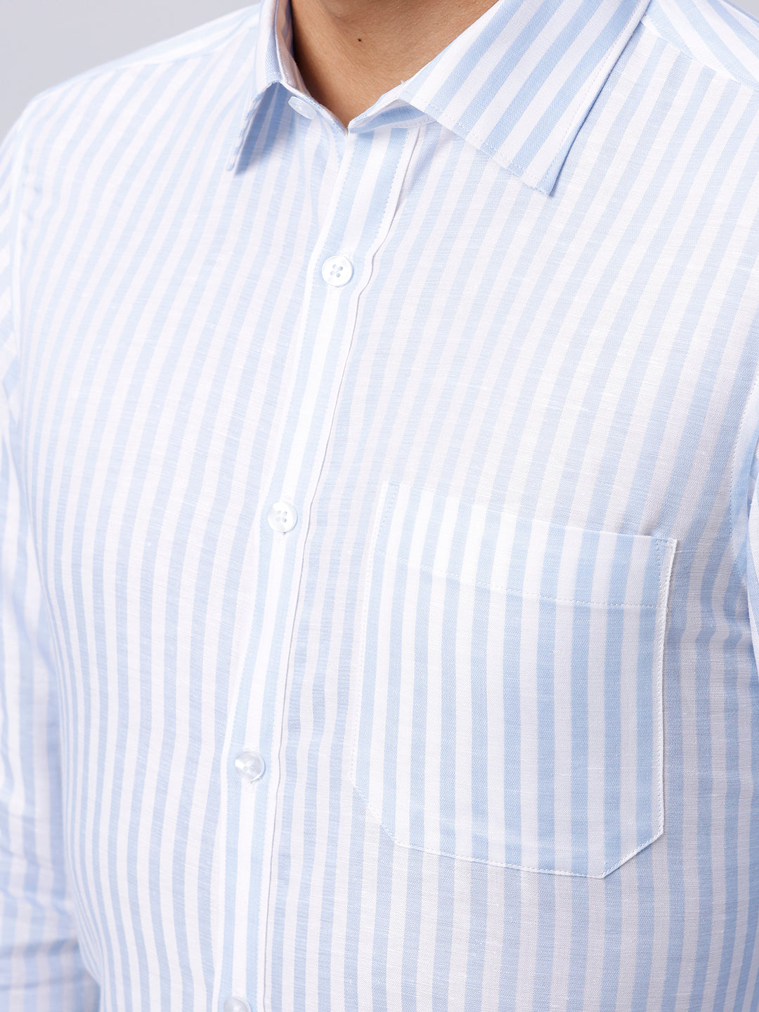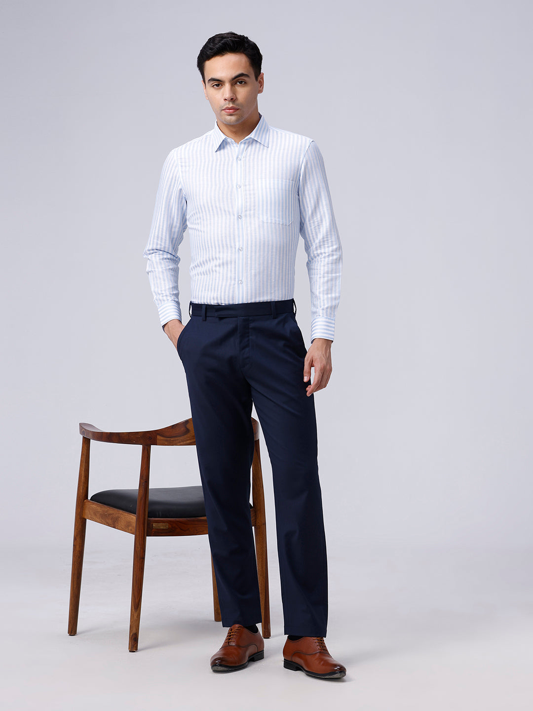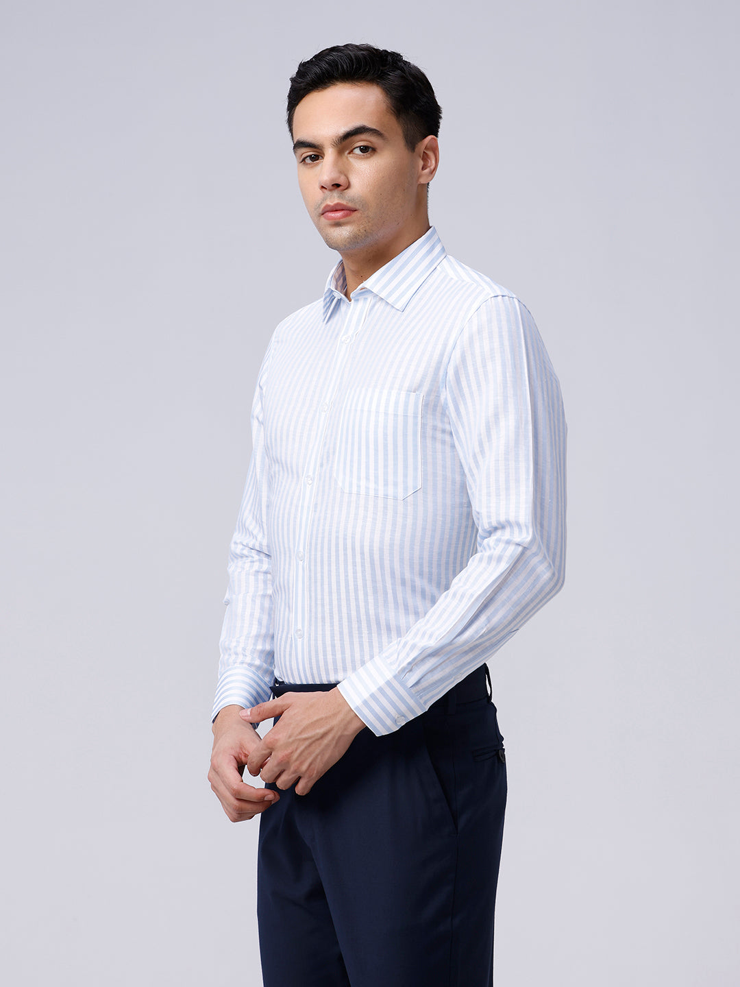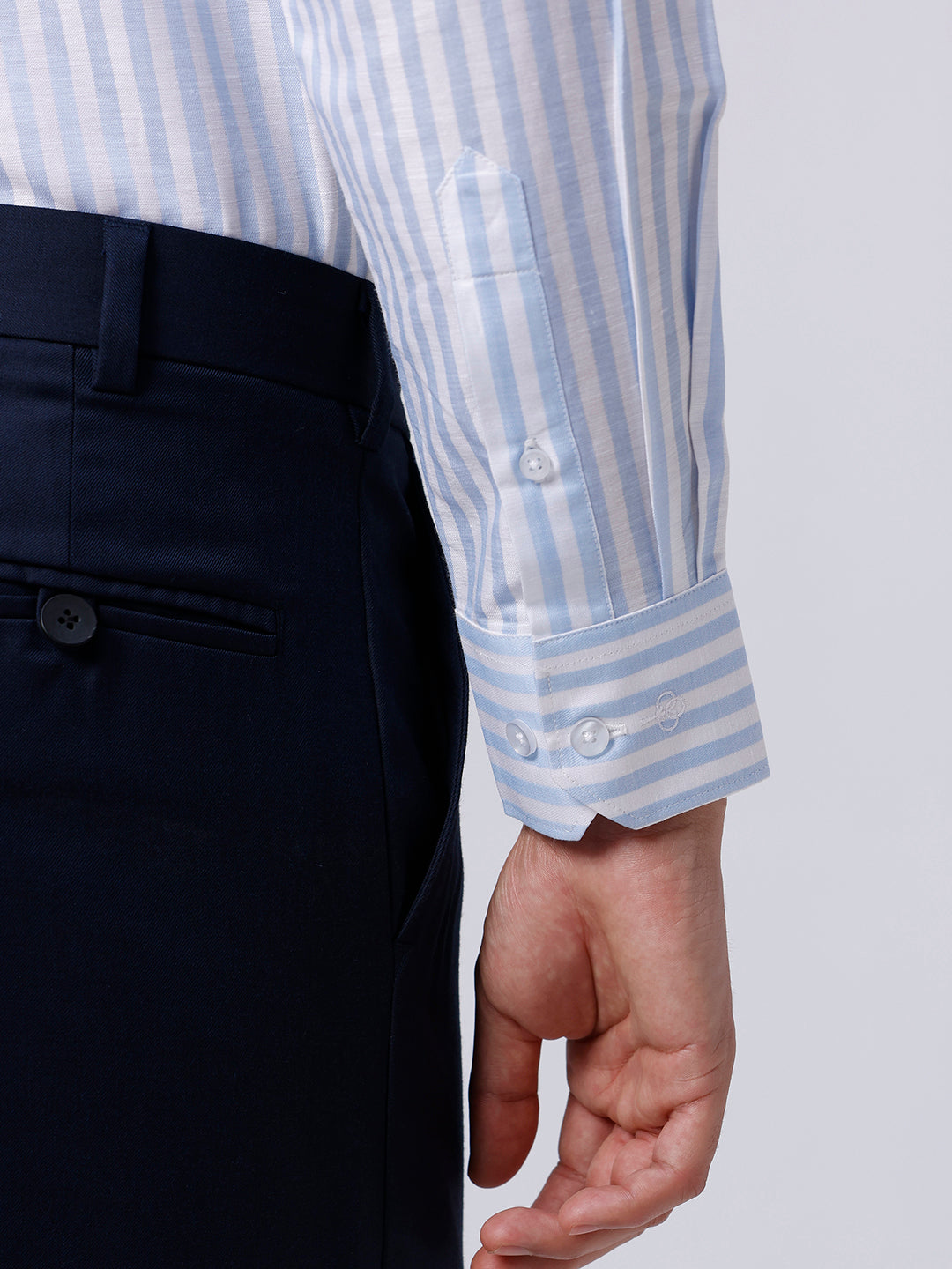 Stylish twill fabric shirt with white and blue stripes for a fresh, modern look.