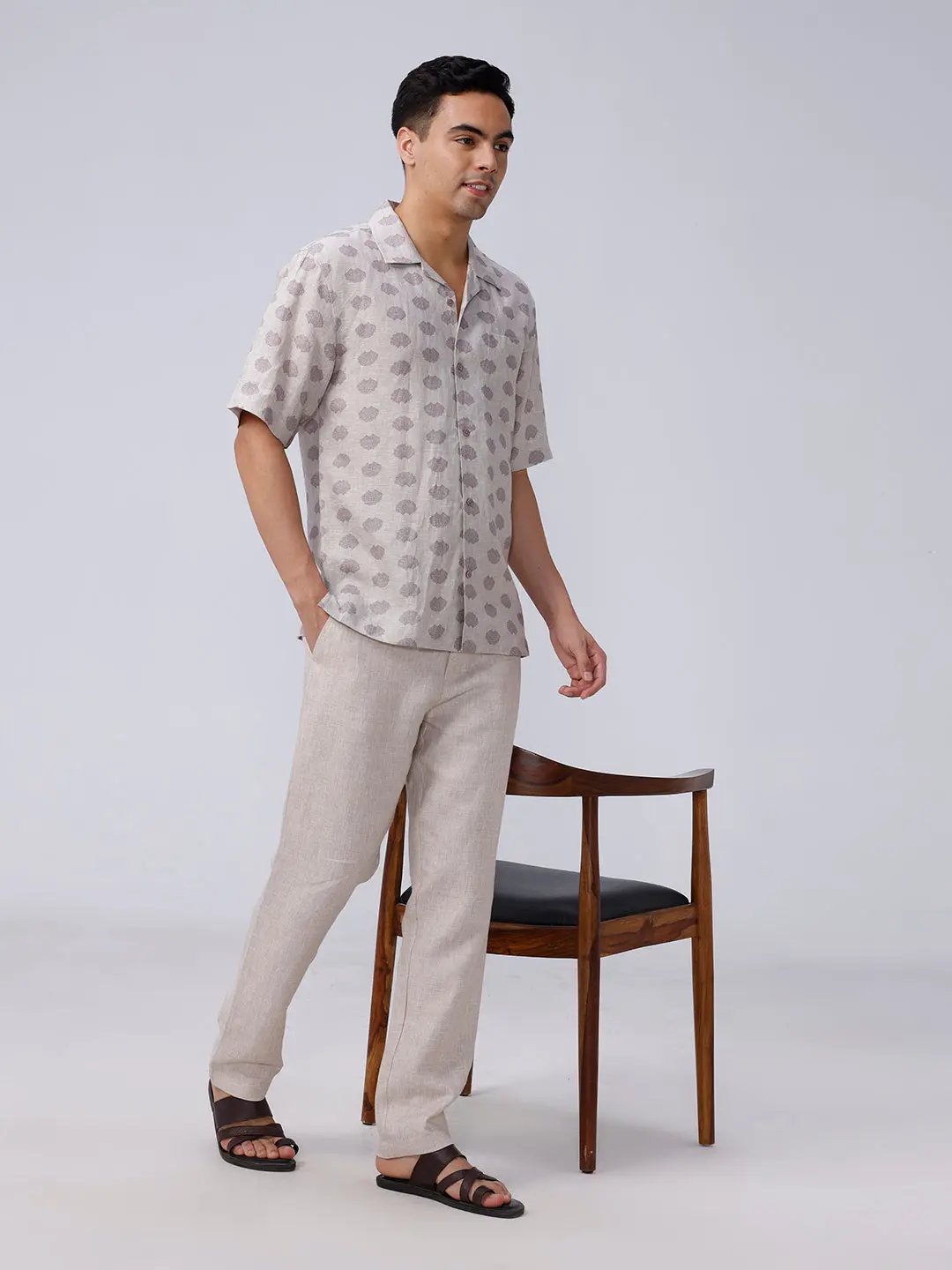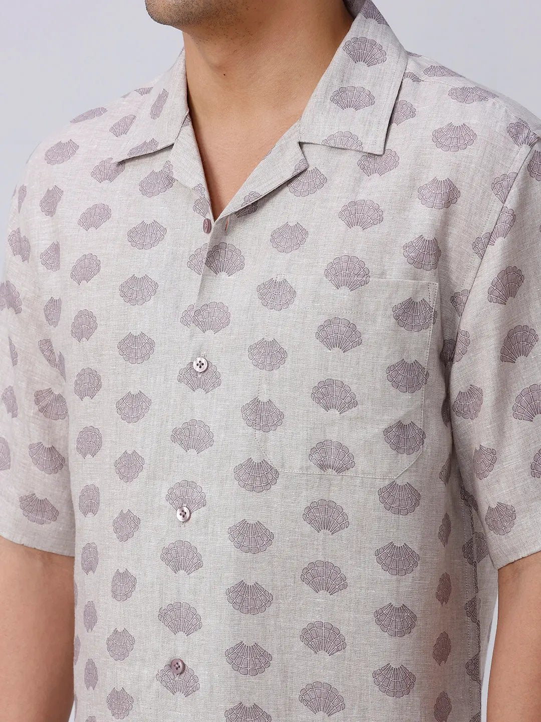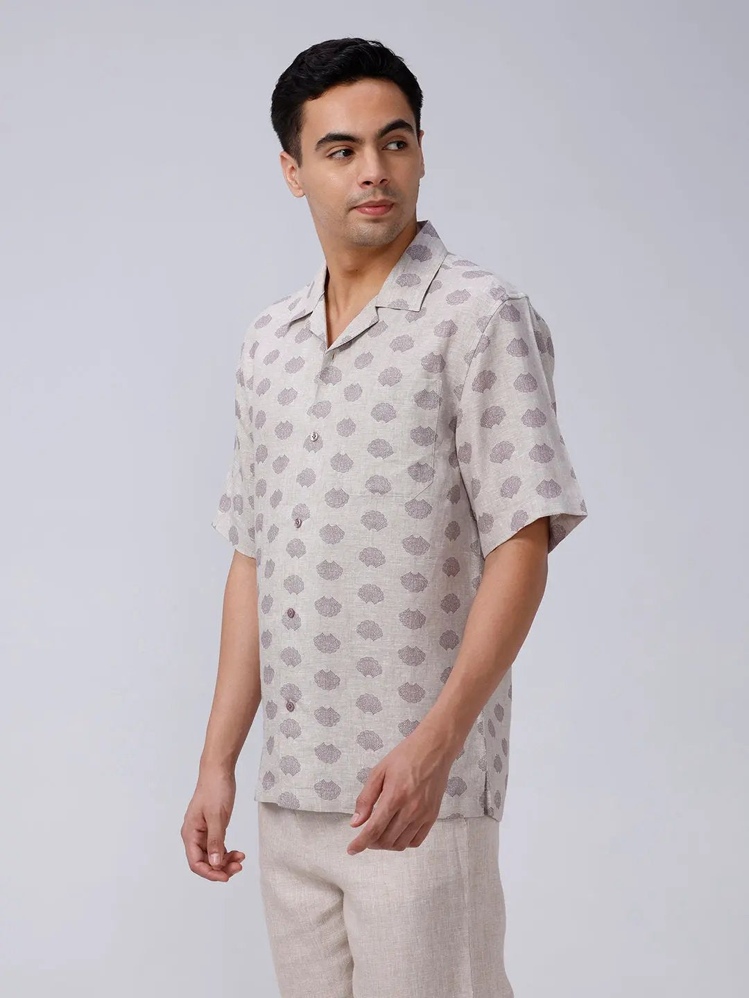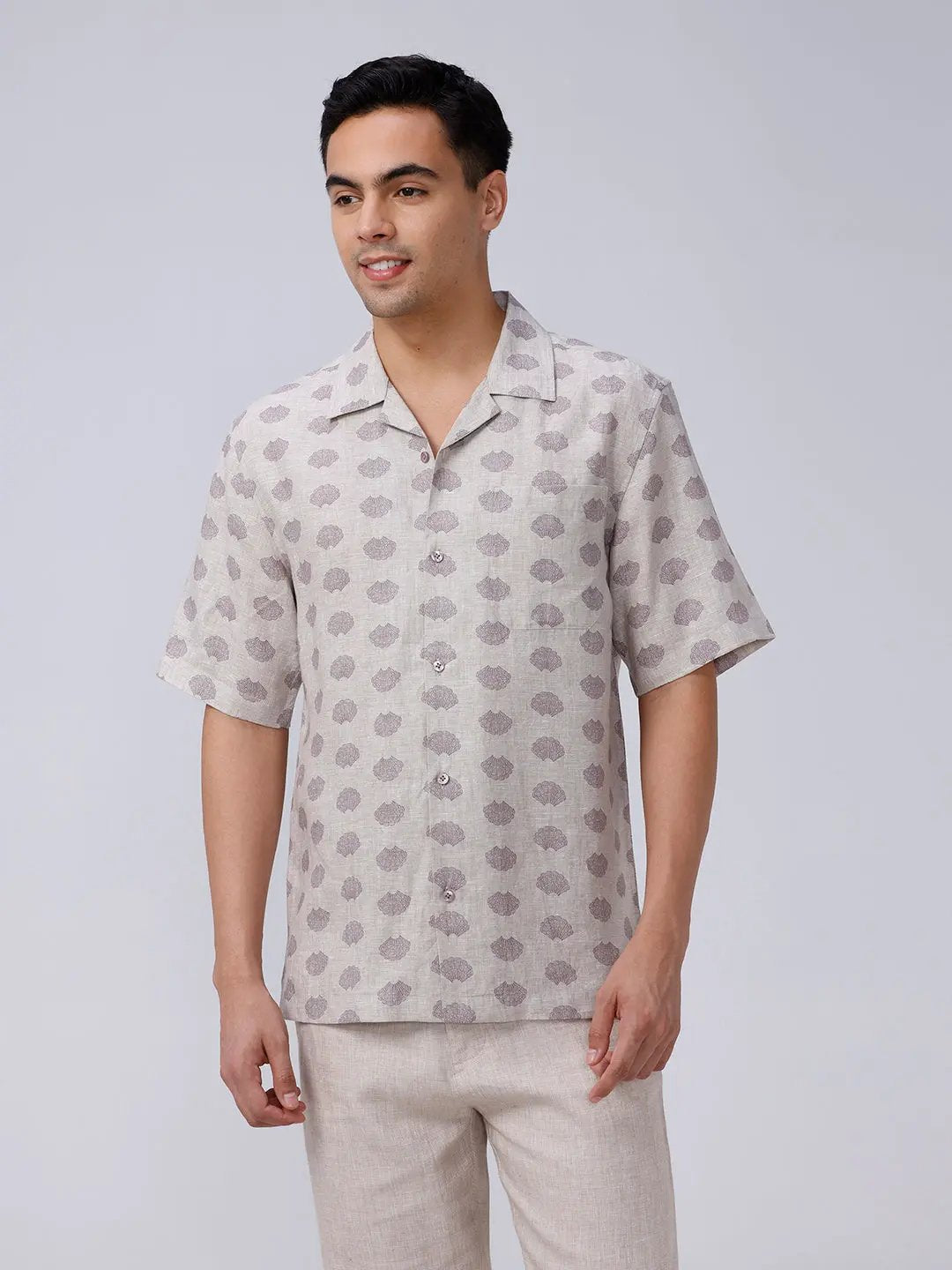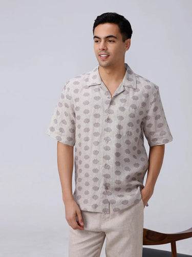 Modern digital print shirt blending beige and brown tones for a stylish, contemporary look.