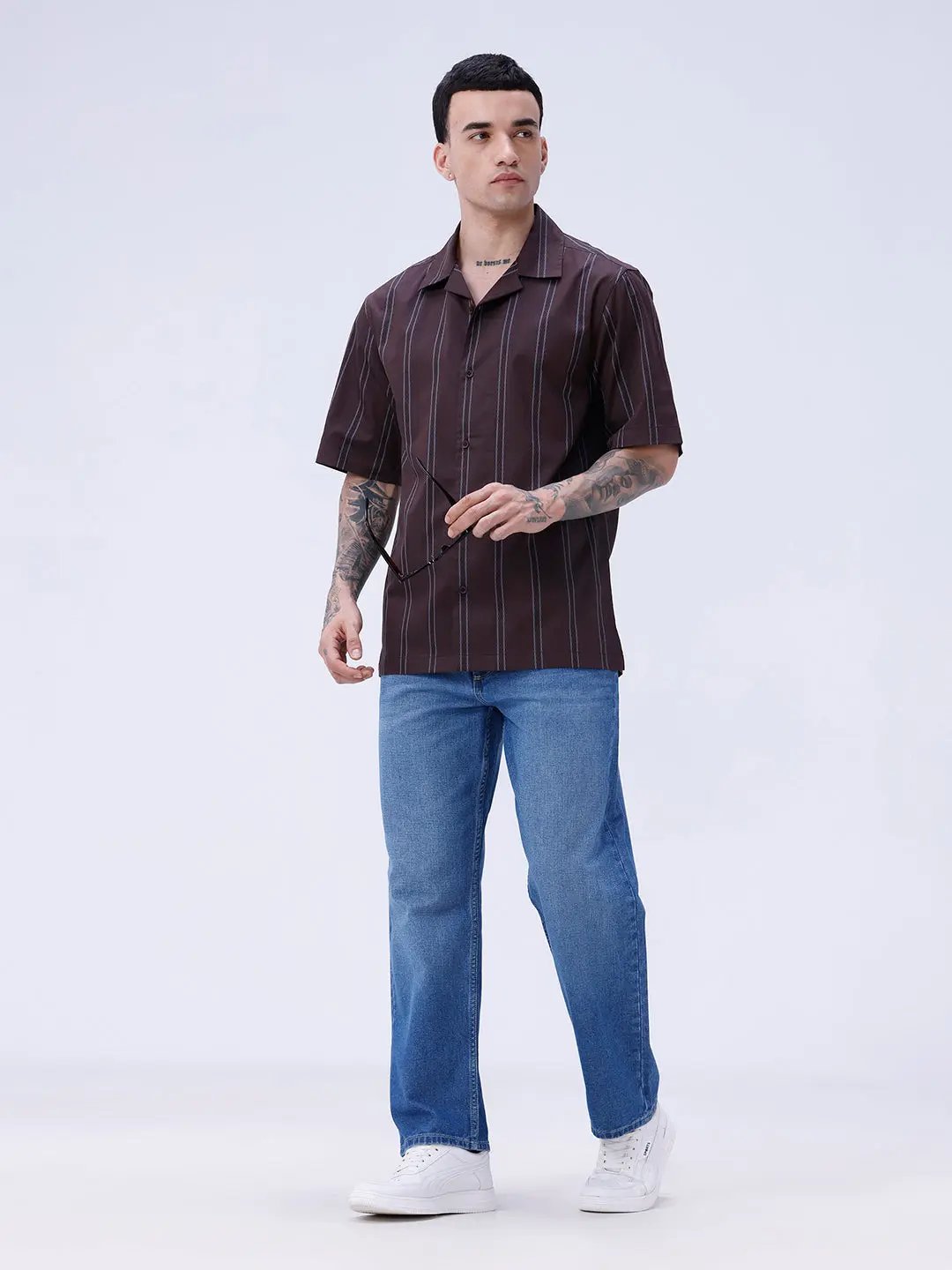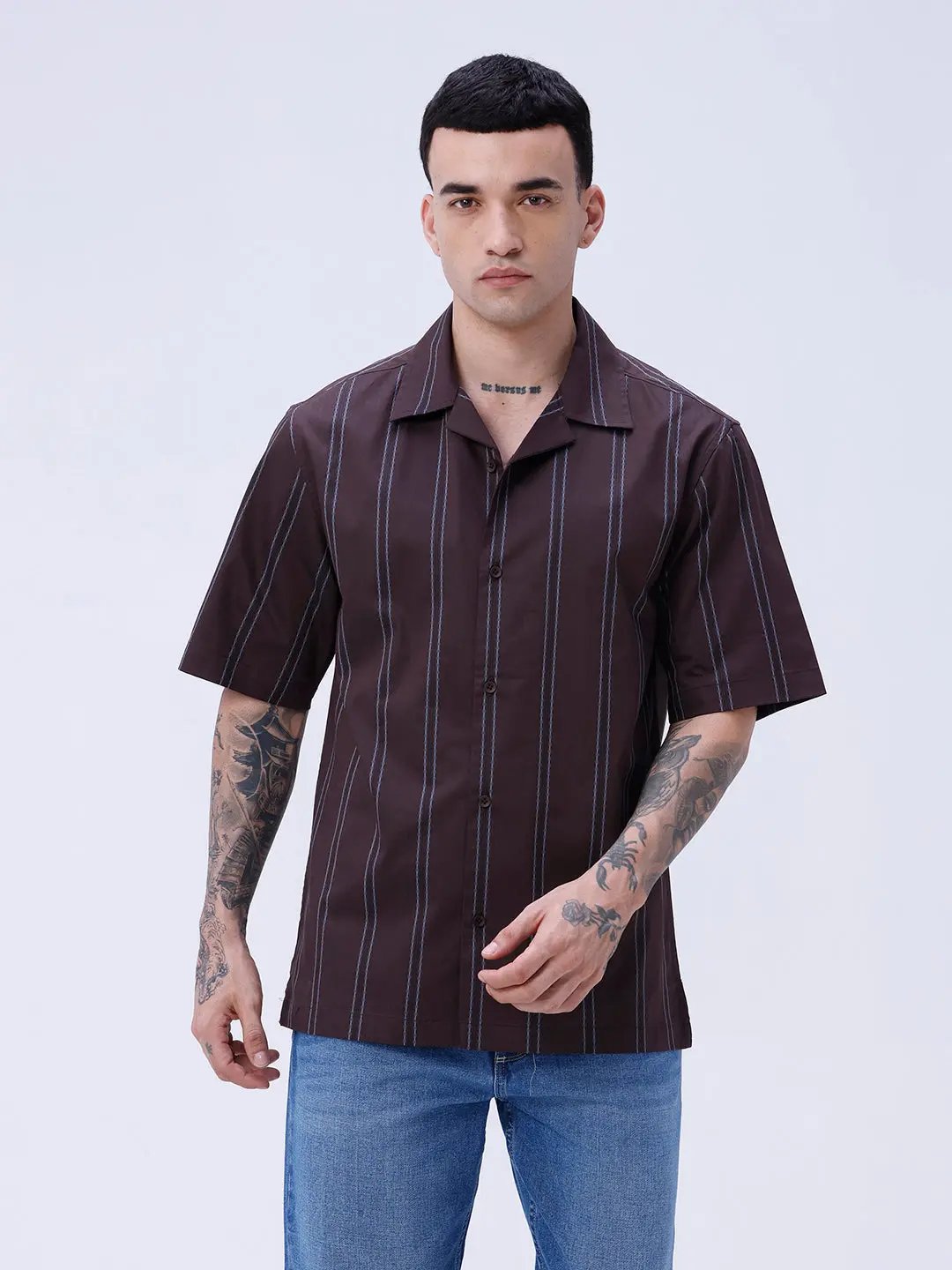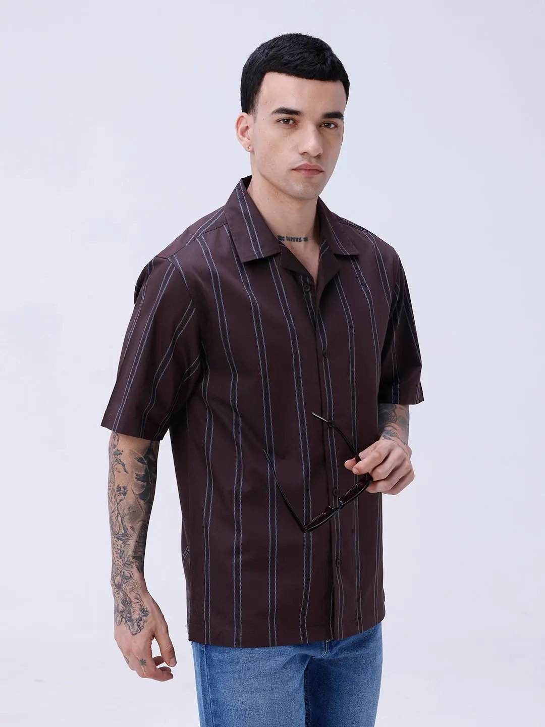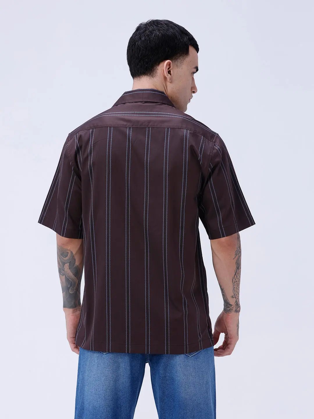 Brown Dobby Stripes Shirt