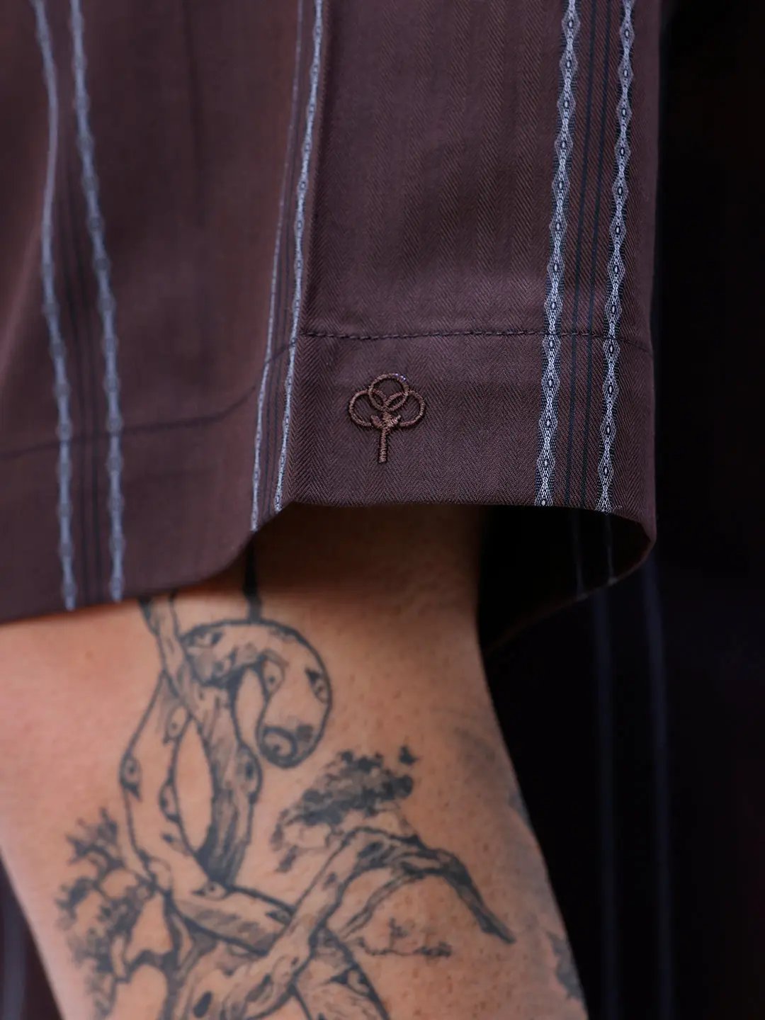 Brown shirt with subtle dobby stripes, suitable for casual or smart-casual wear.