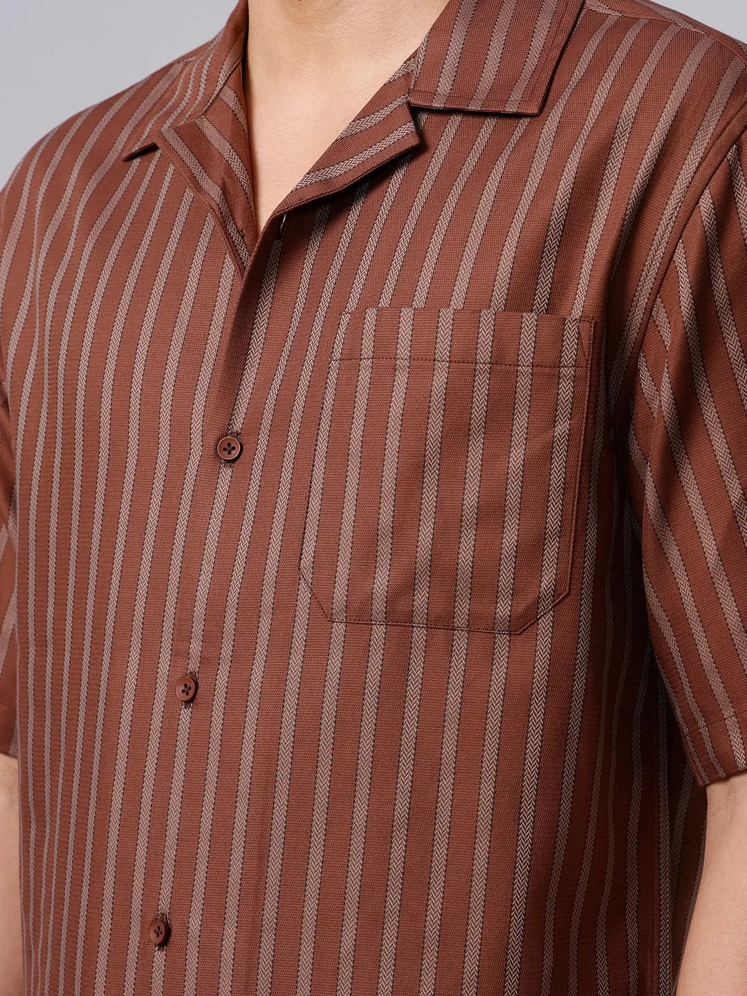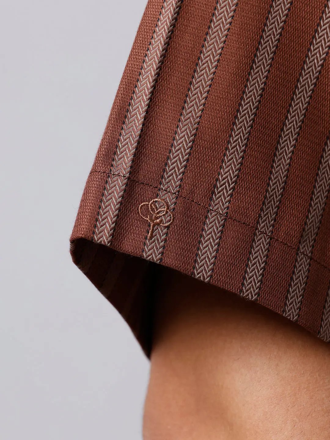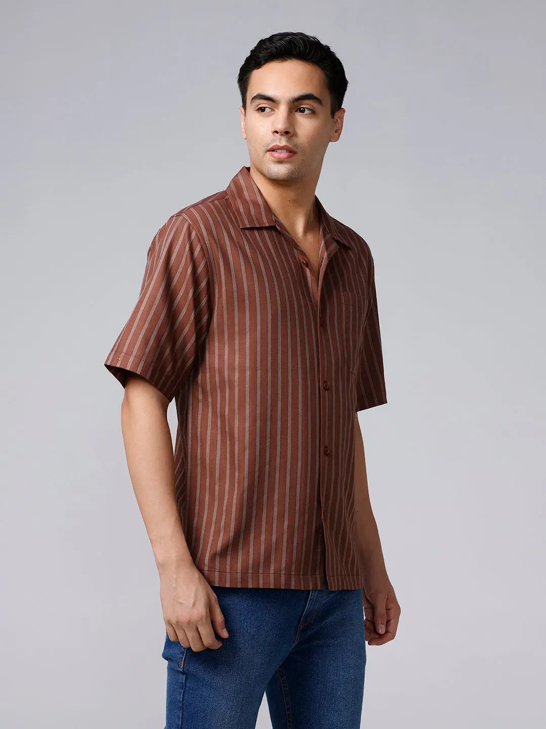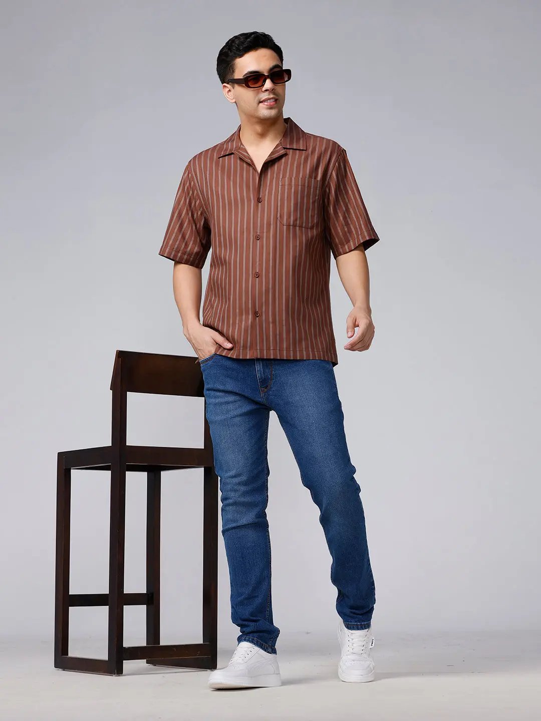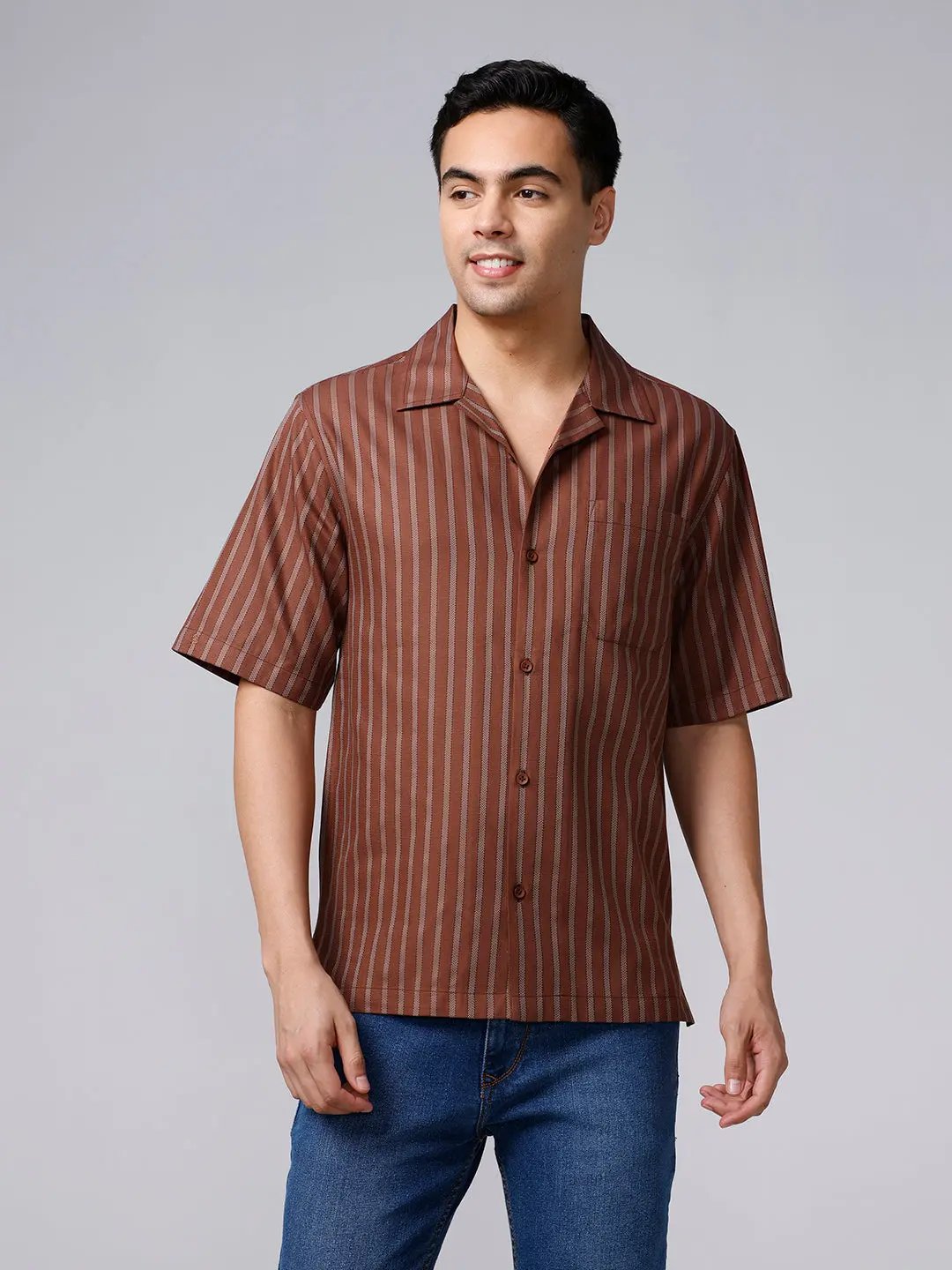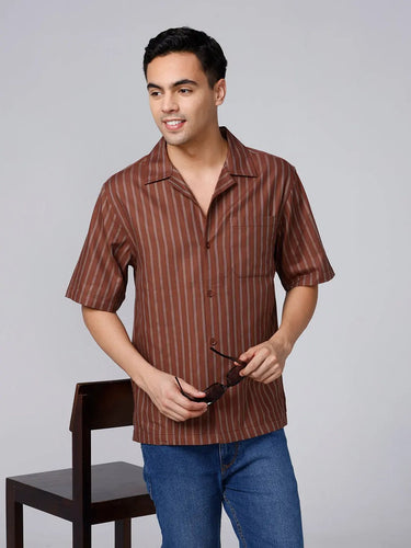 Durable twill fabric shirt with brown stripes, great for everyday styling.