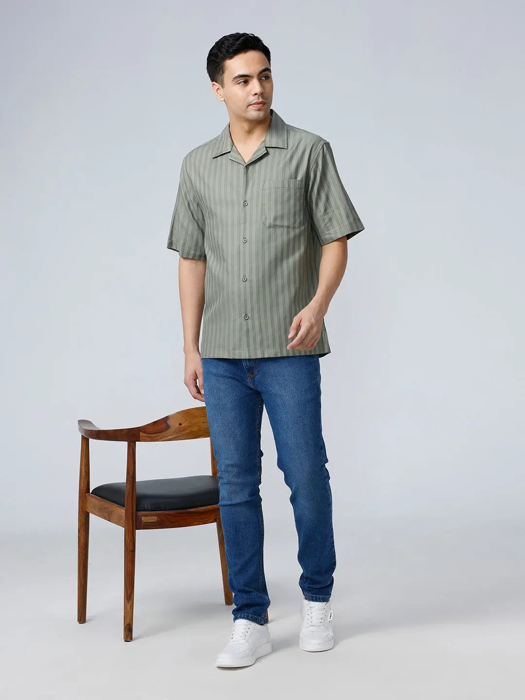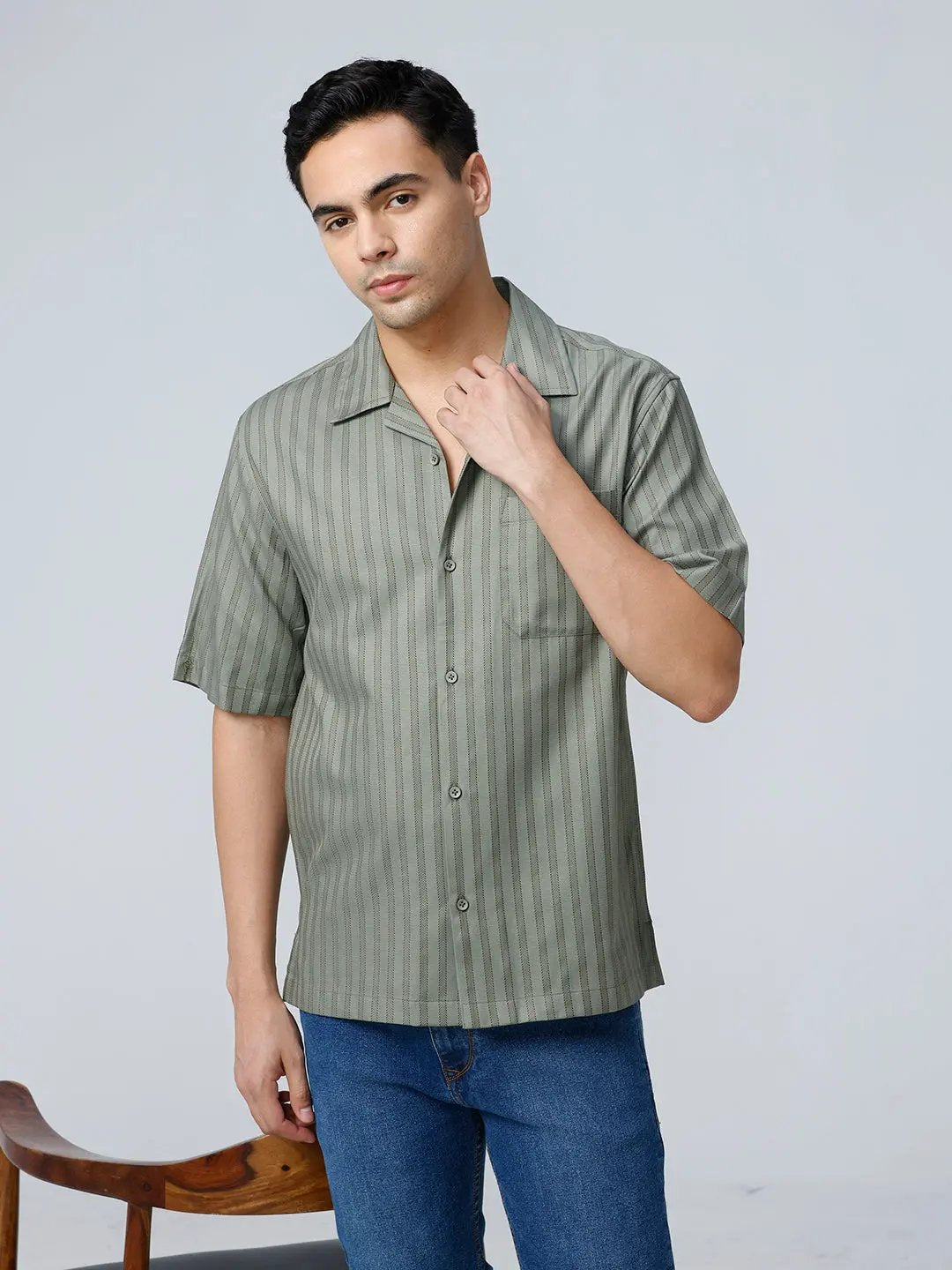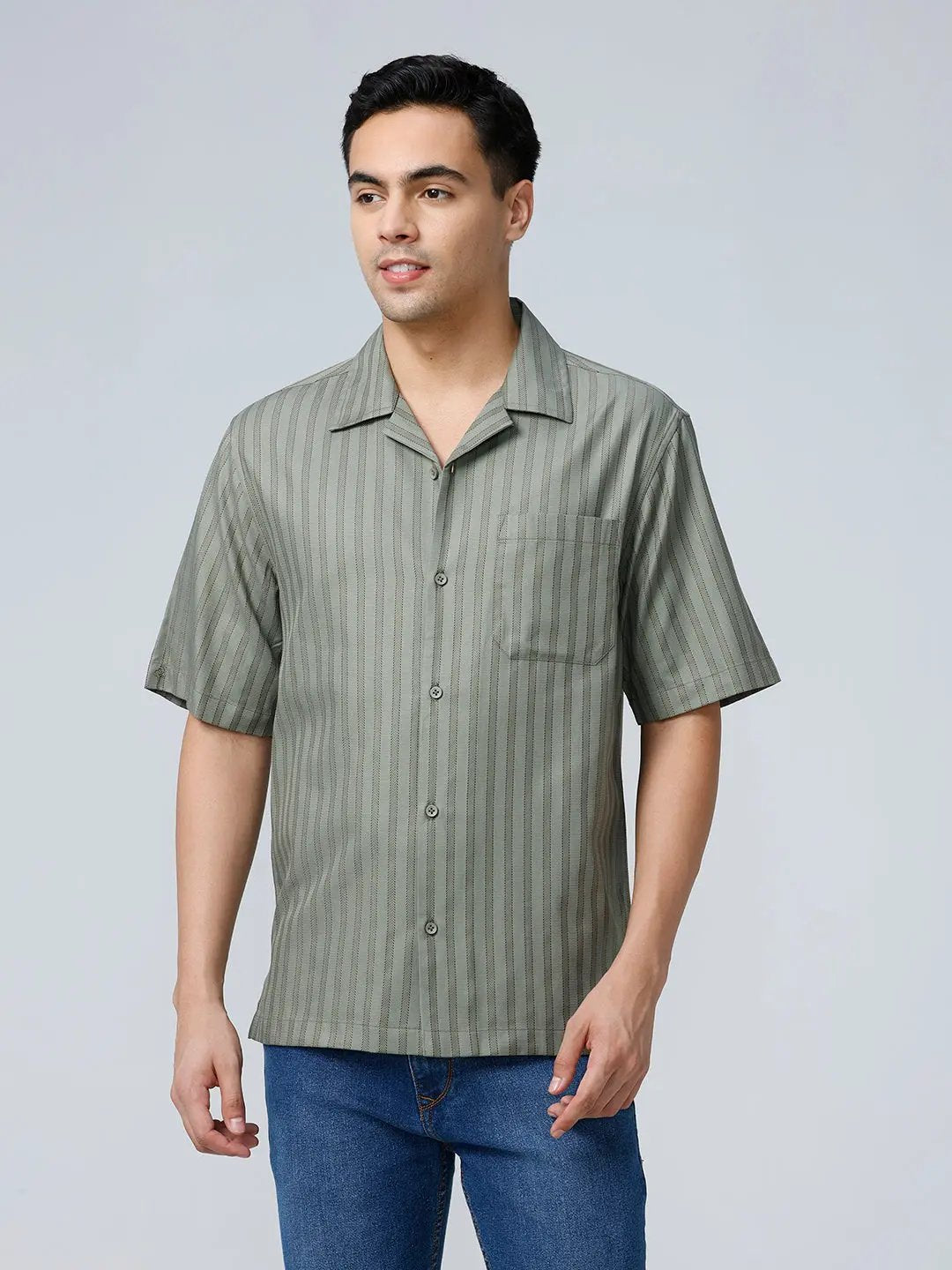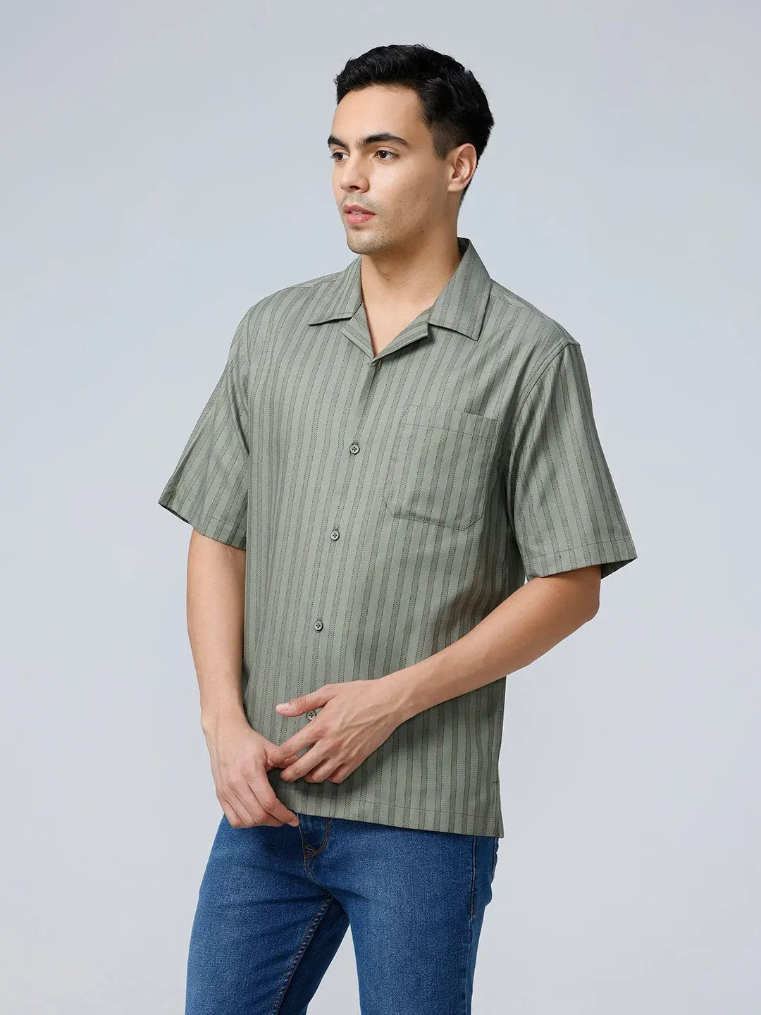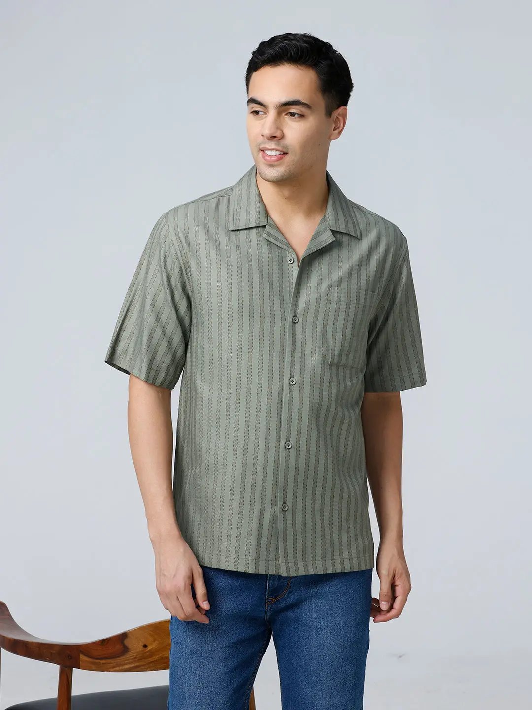 Green Twill Stripes Shirt