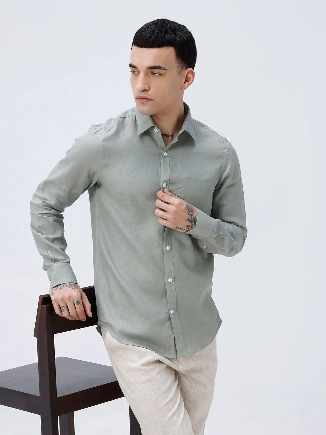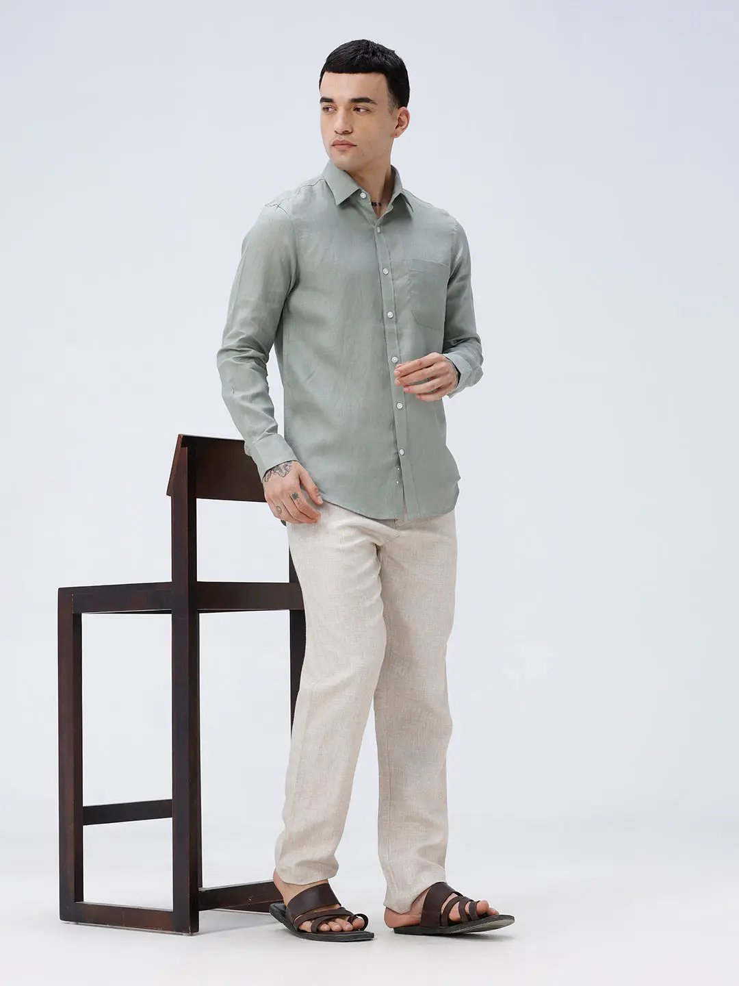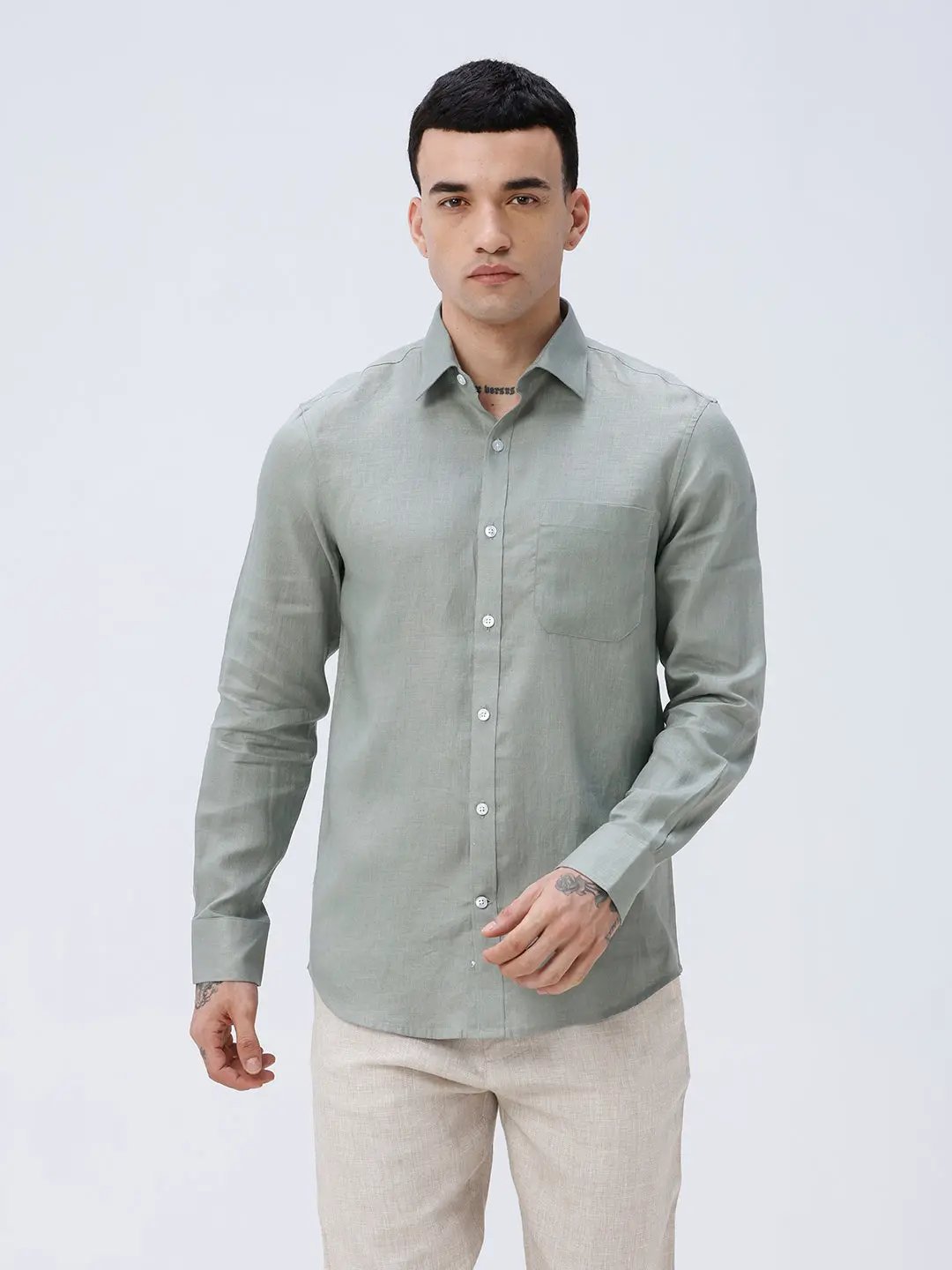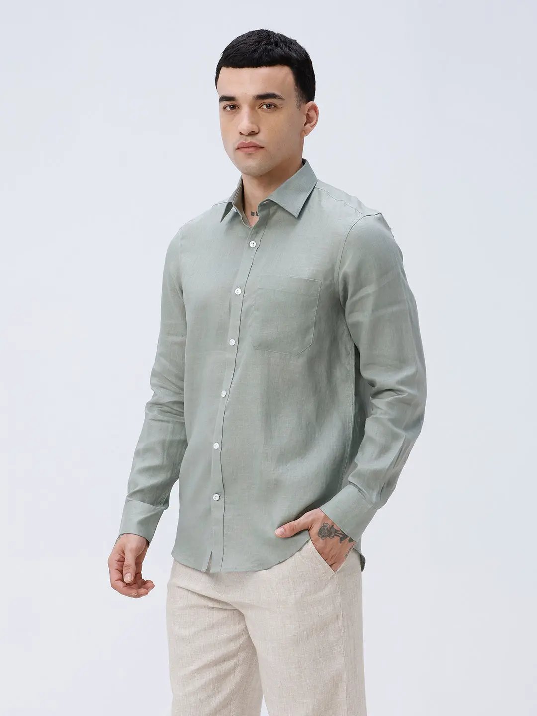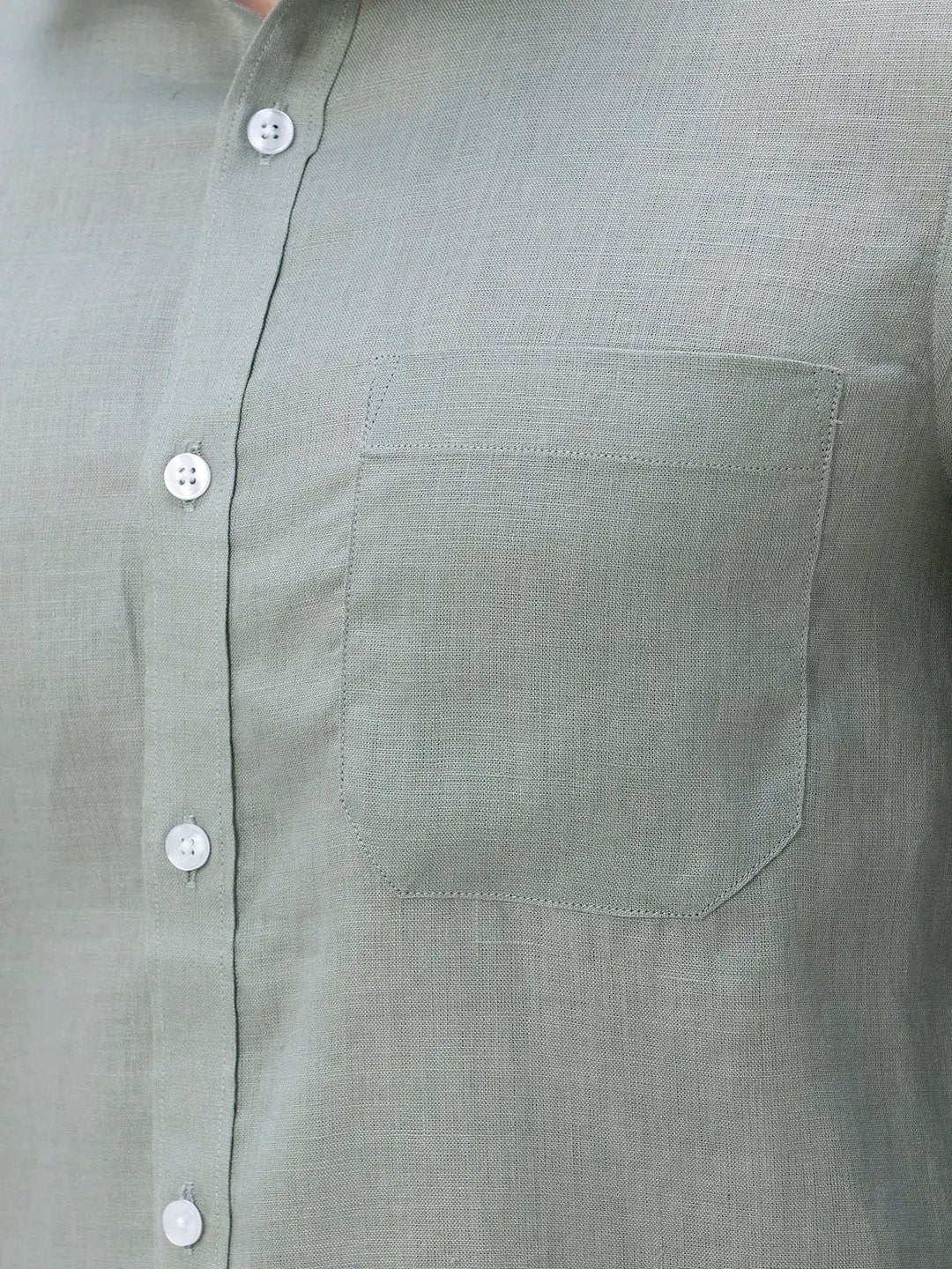 Green Full Sleeve Linen Shirt