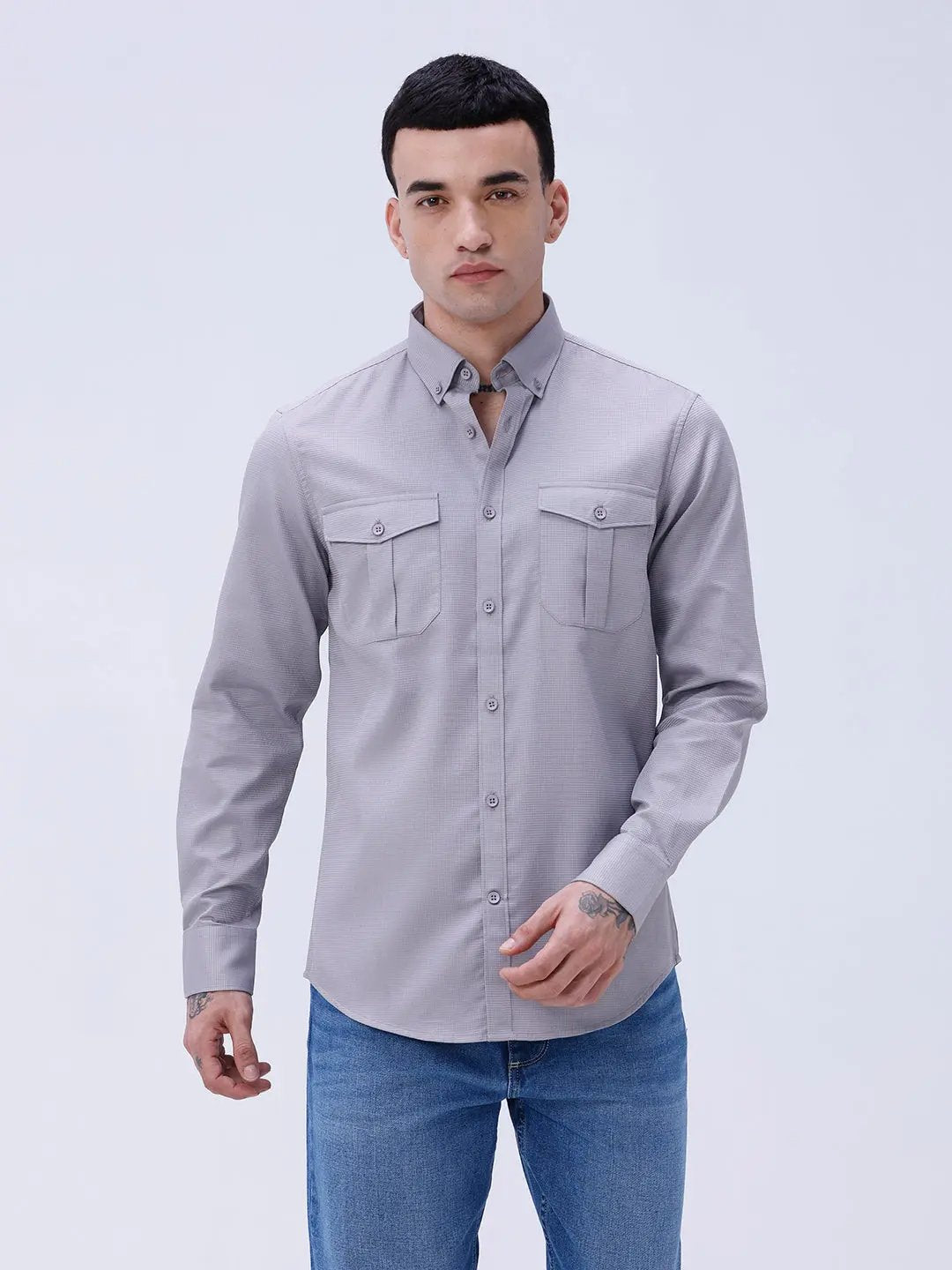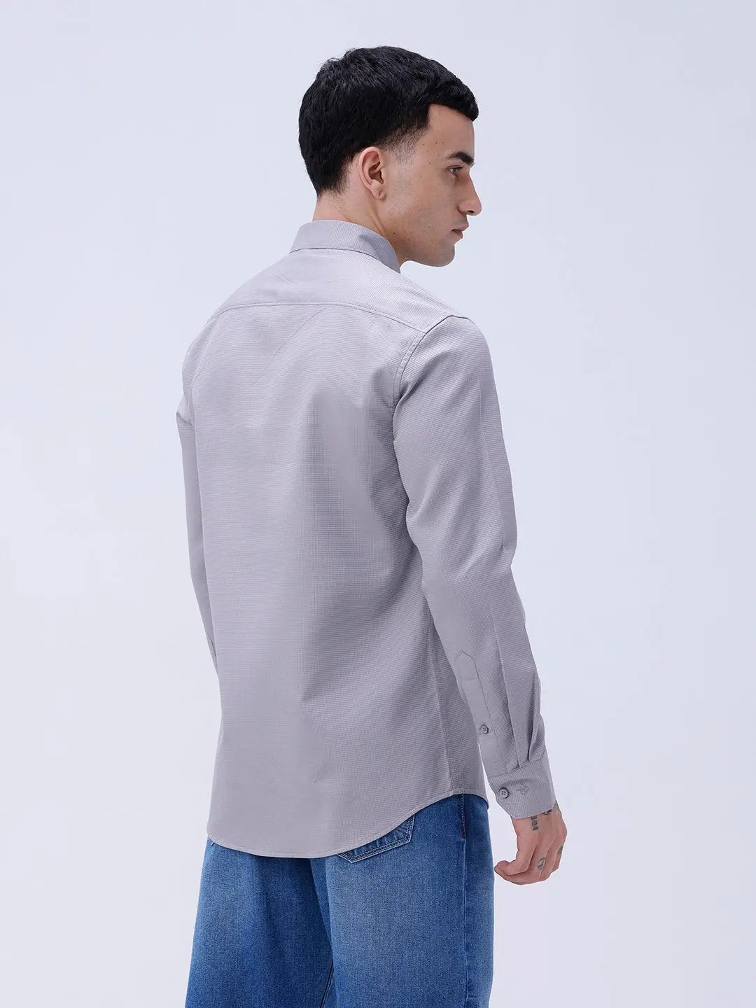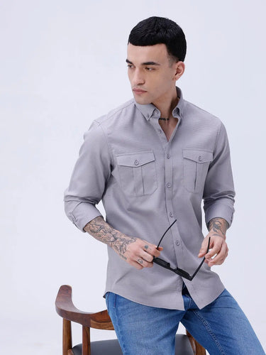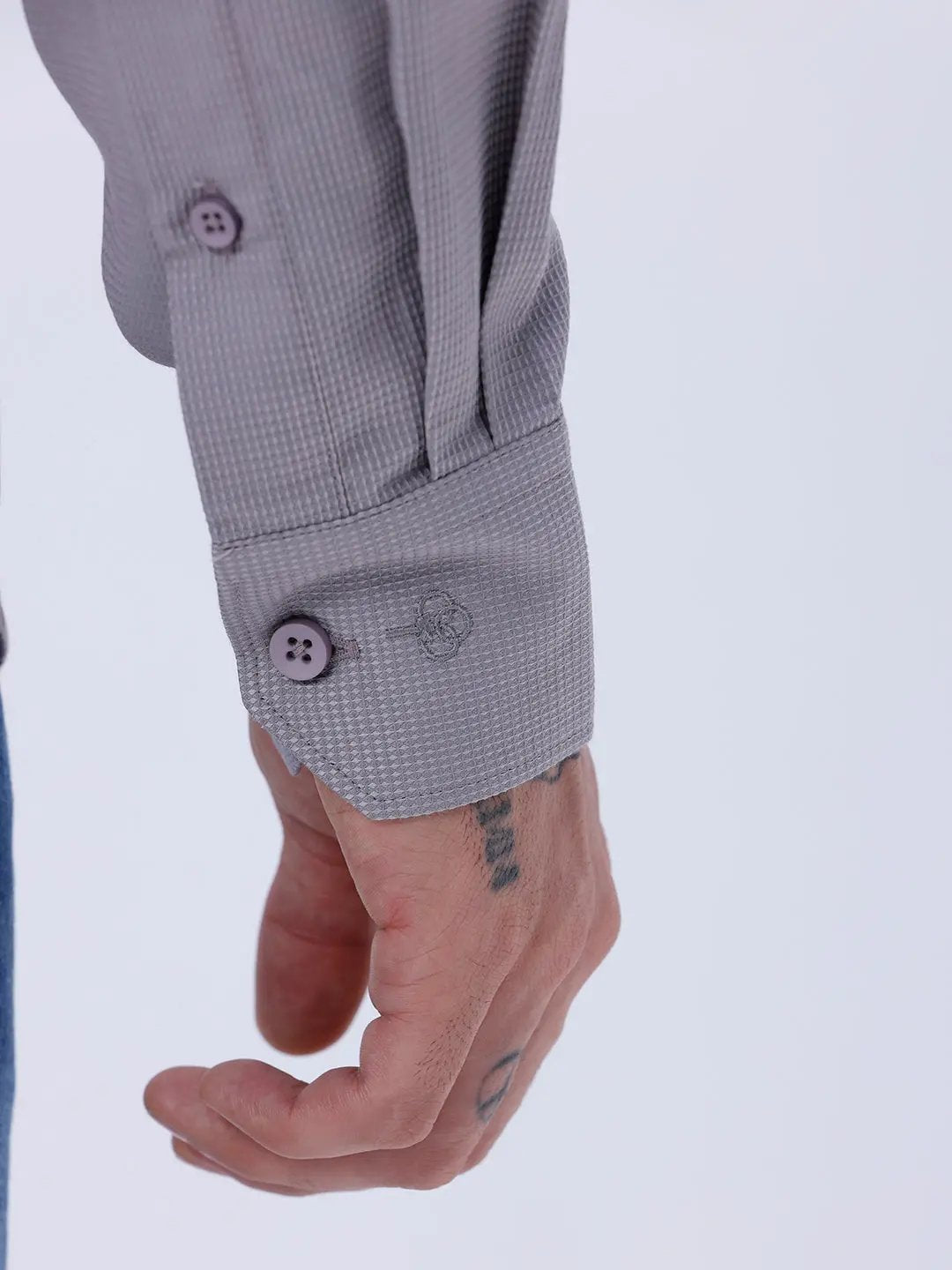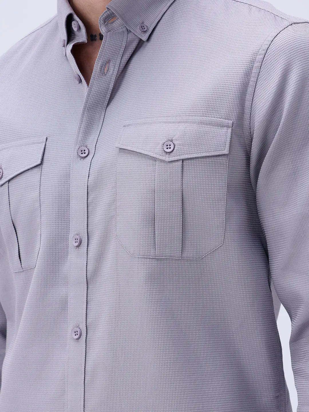 Waffle-dobby fabric in plain grey, soft and cozy, ideal for casual wear.