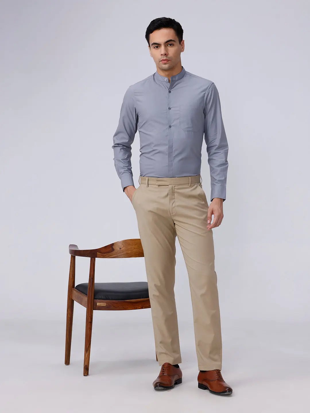 Light grey Tencel shirt, versatile and breathable for daily wear.