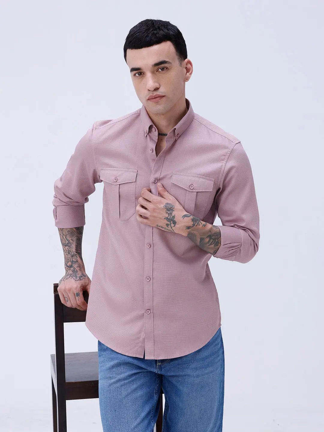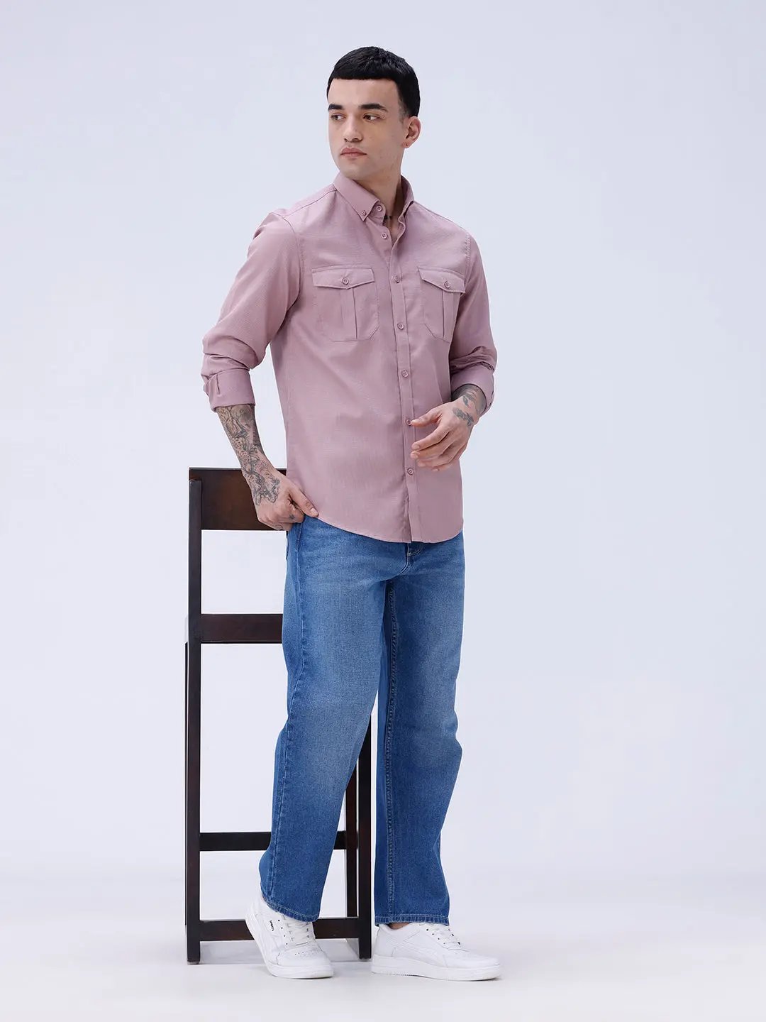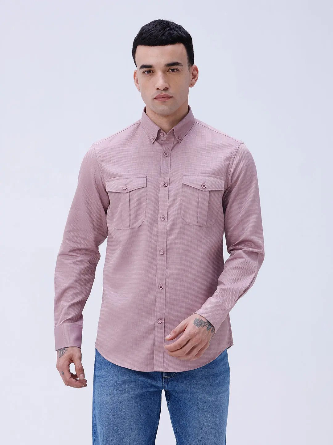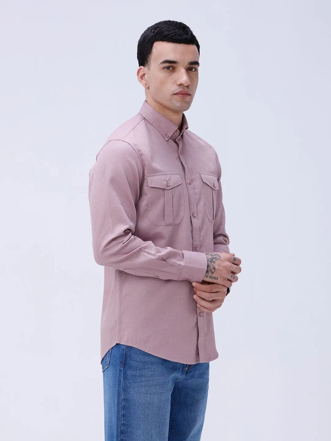 Mauve Waffle Dobby Plain Shirt