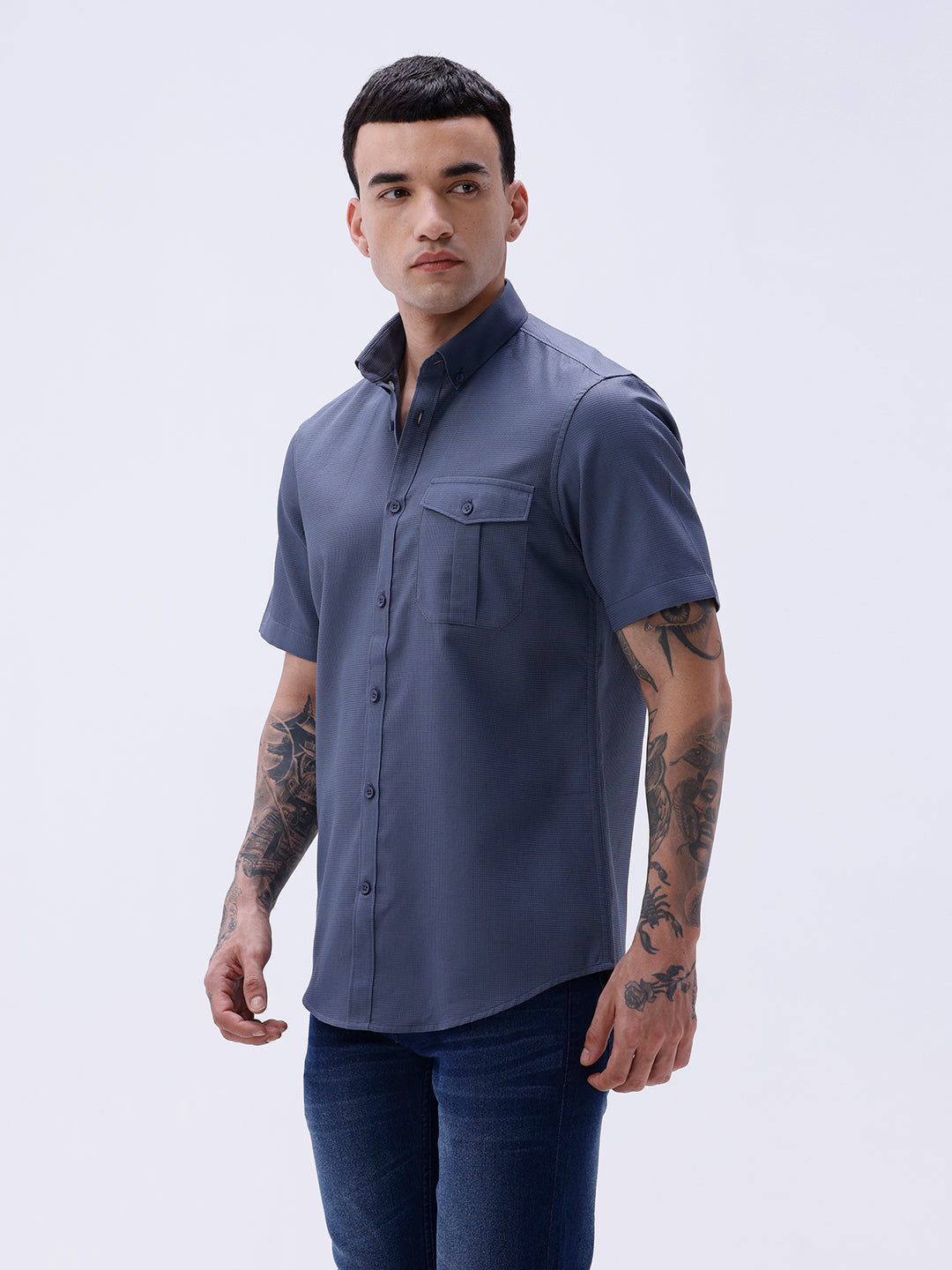Blue Waffle Dobby Plain Short Sleeve Shirt