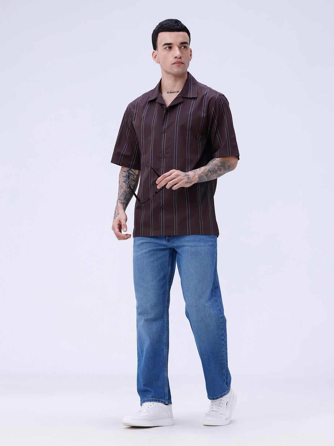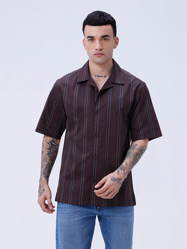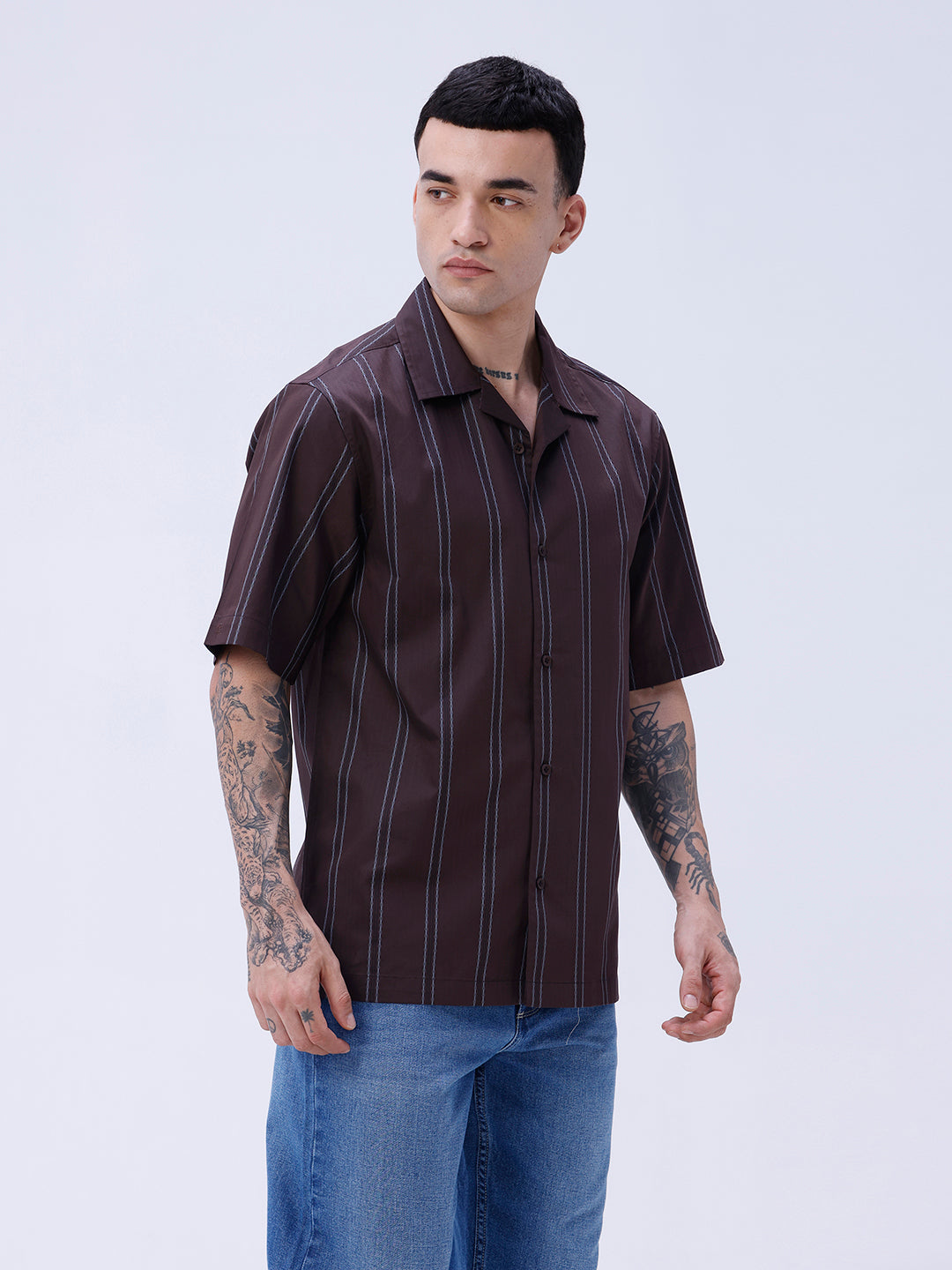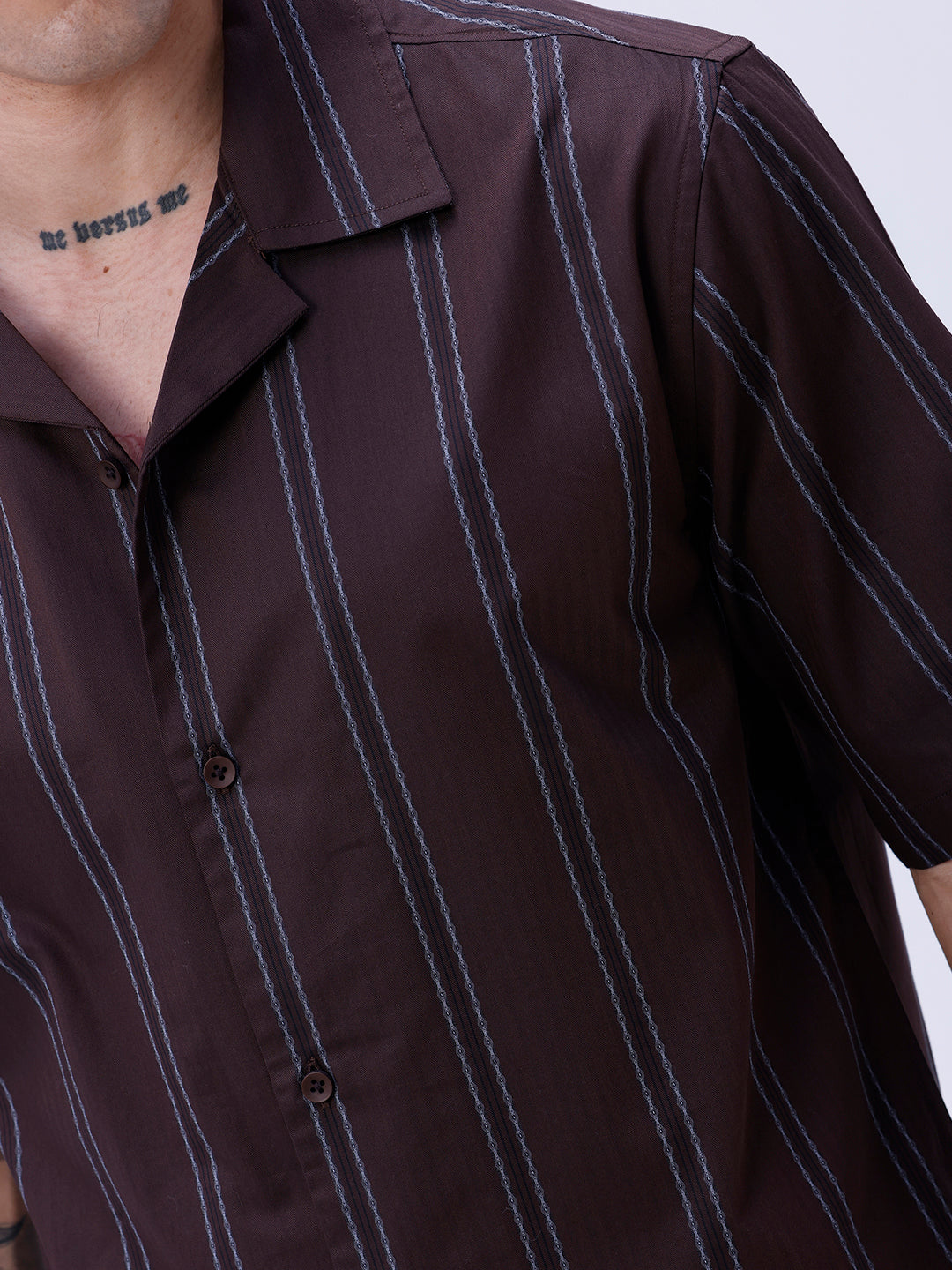 Brown shirt with subtle dobby stripes, suitable for casual or smart-casual wear.