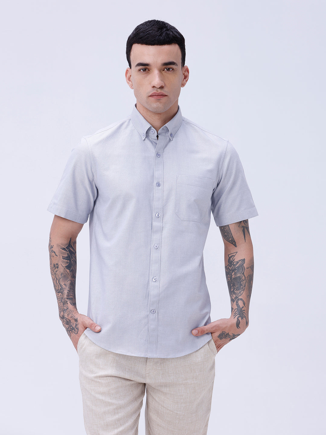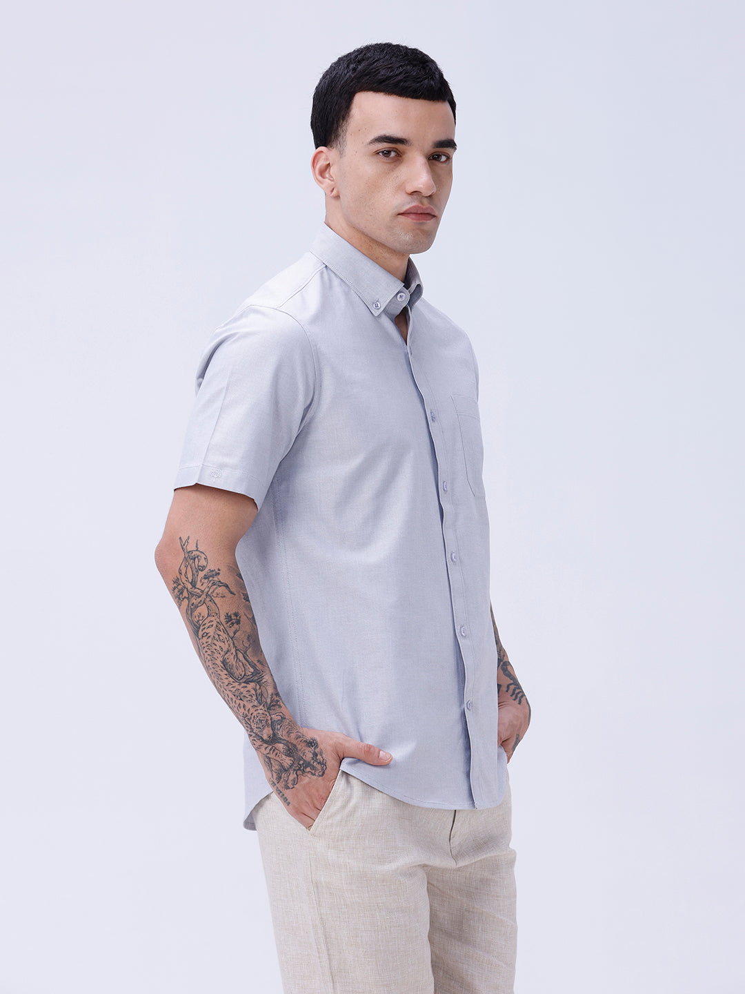 Grey Oxford Plain Shirt