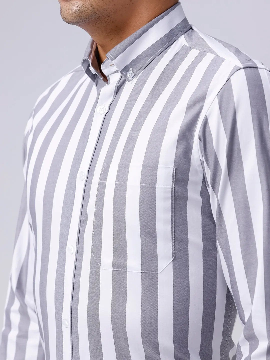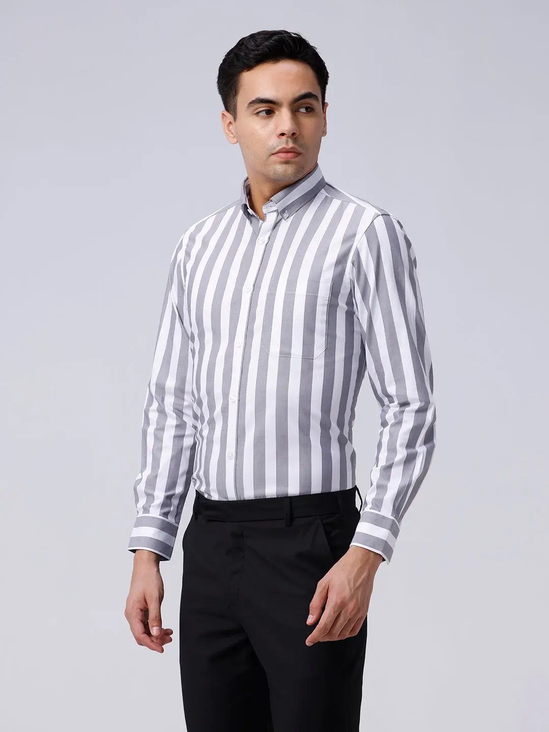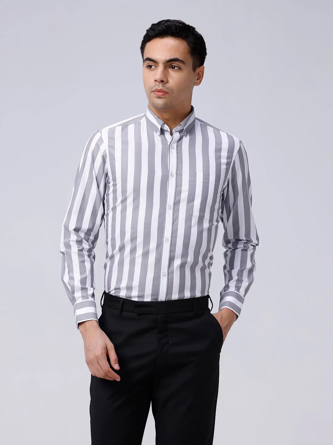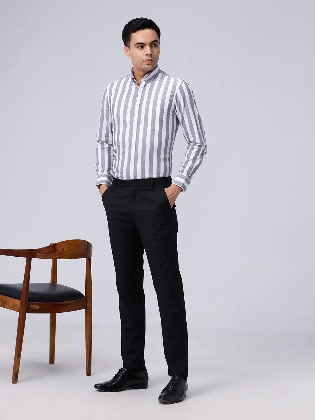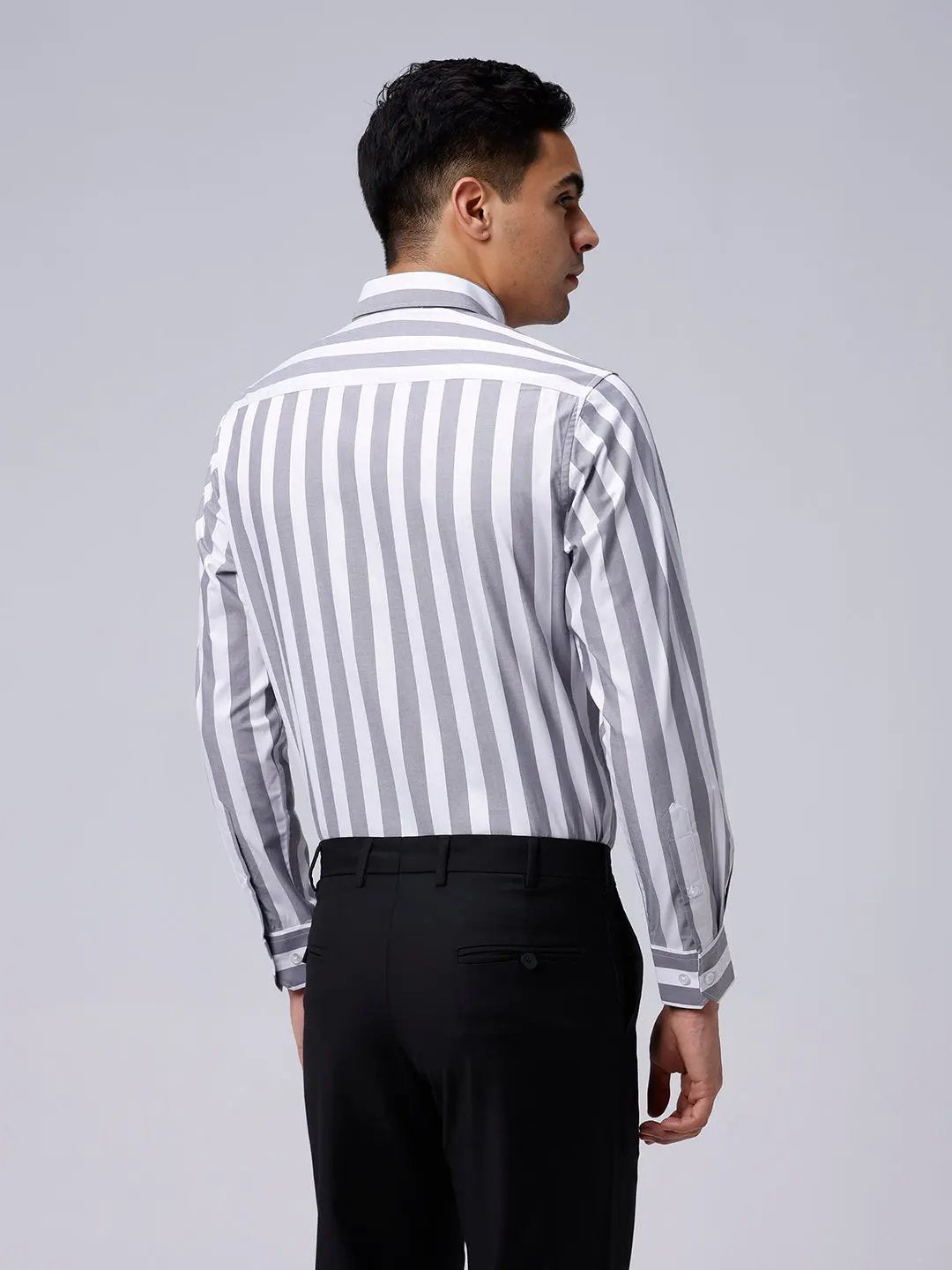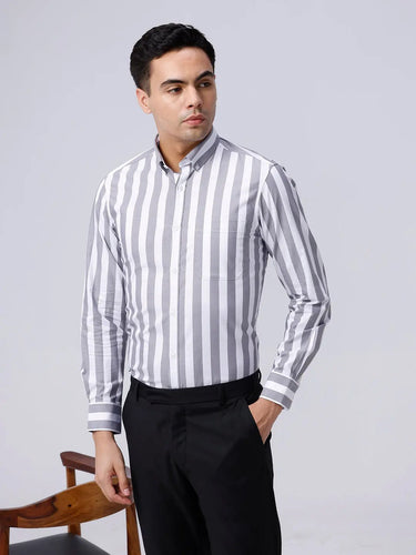 Striped dobby fabric shirt with a sleek monochrome pattern, ideal for smart casuals.