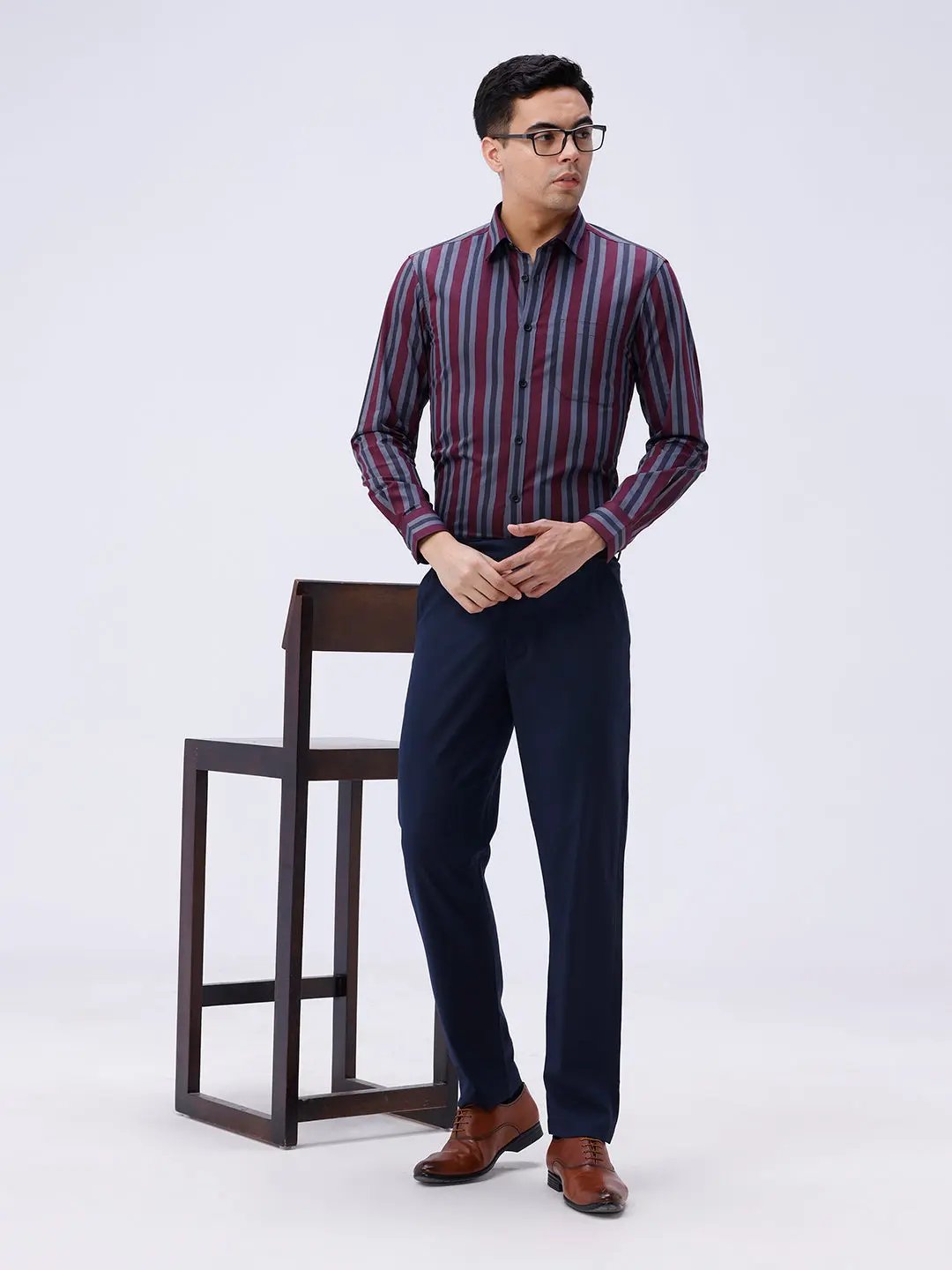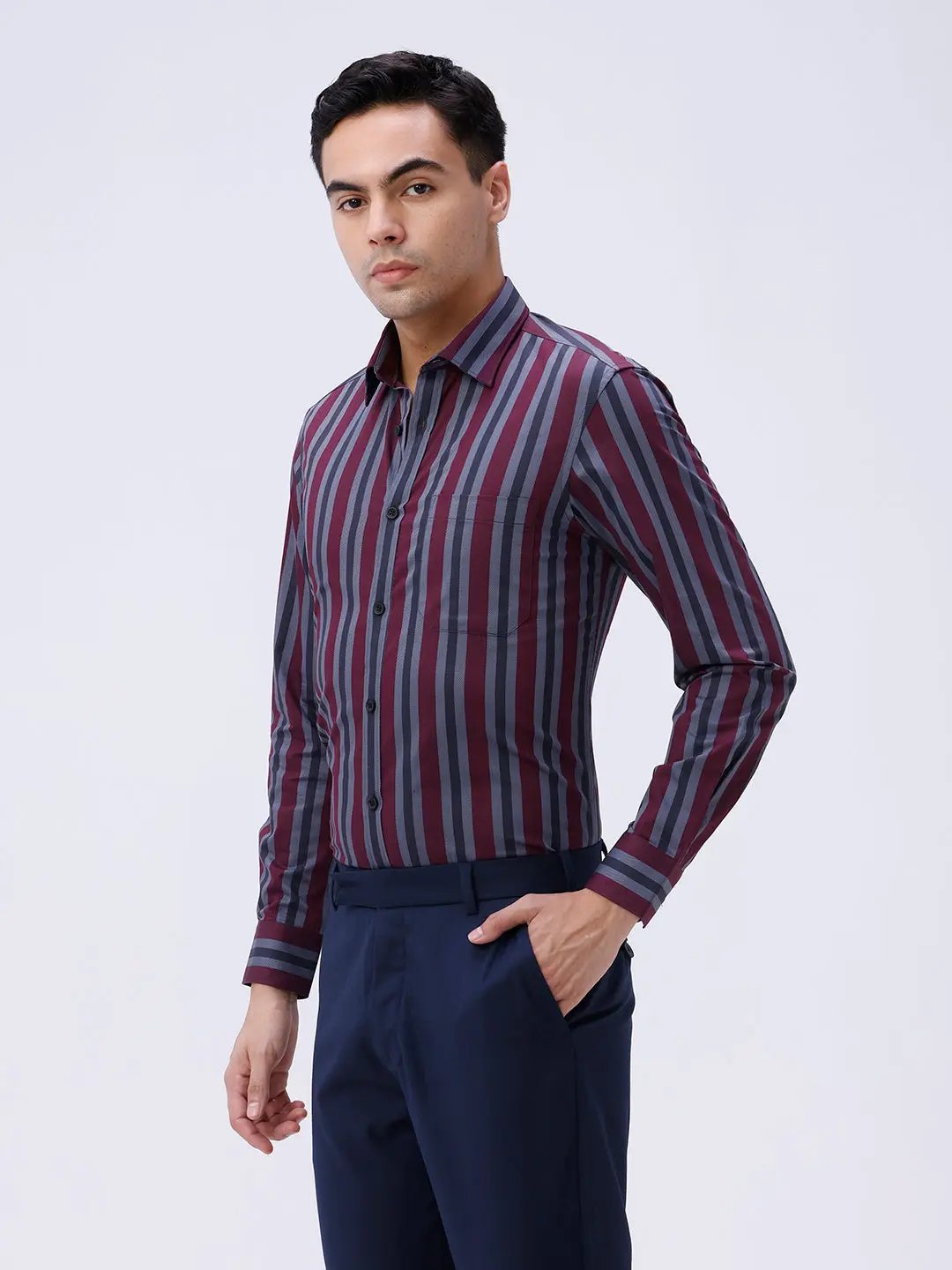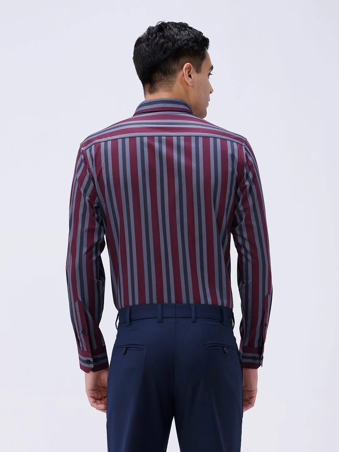 Stylish dobby shirt with maroon and grey stripes, perfect for versatile casual wear.