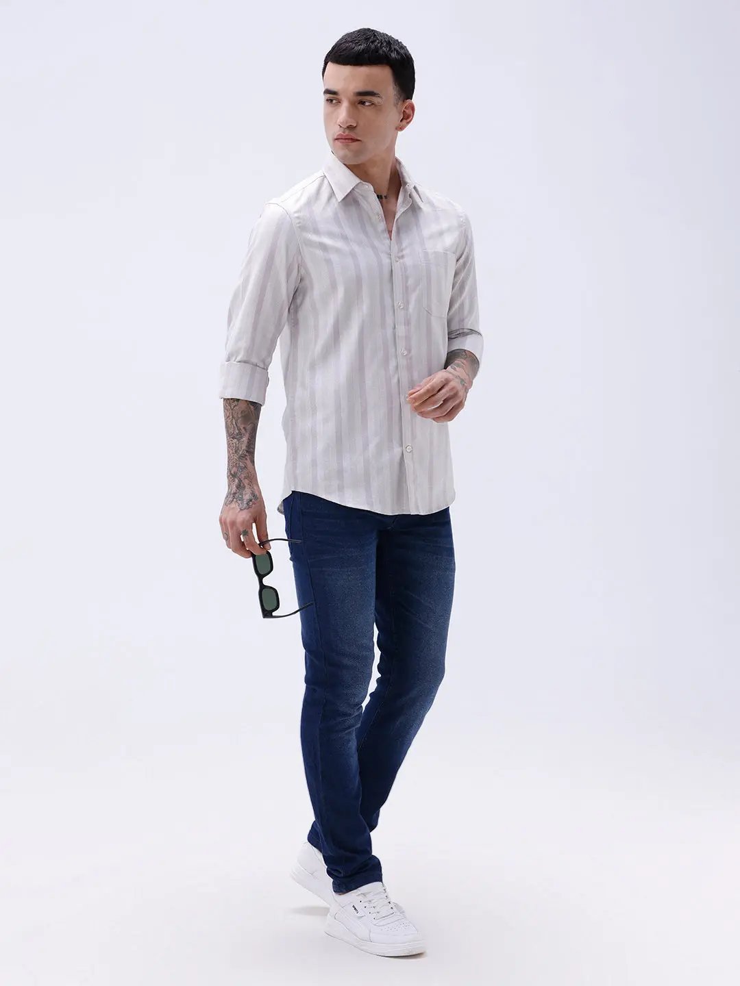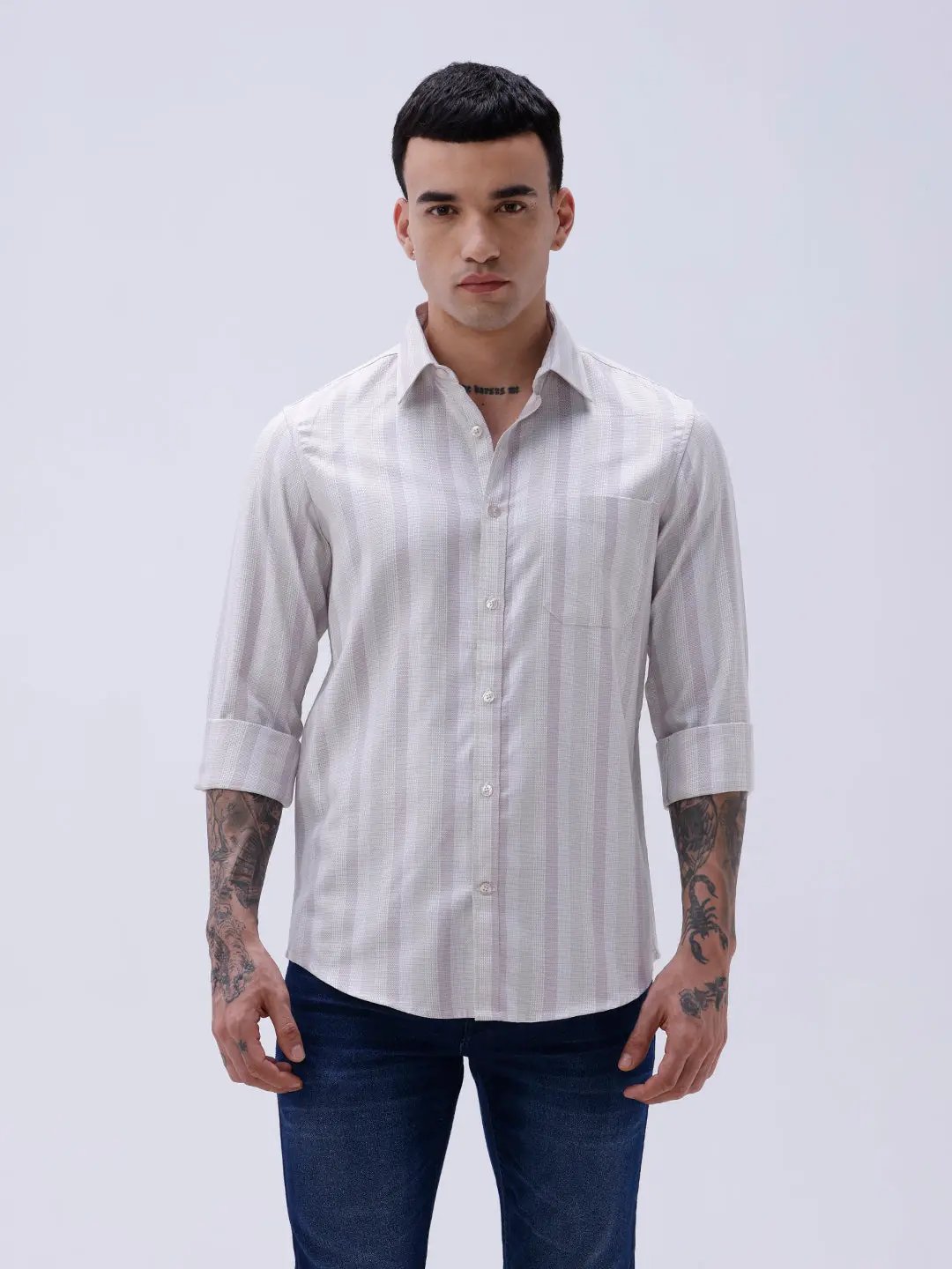 Mauve Striped Twill Shirt