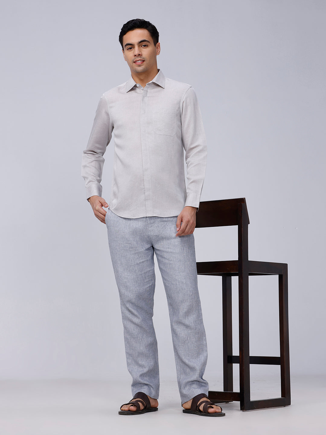 Comfortable Tencel fabric in grey, ideal for casual or office environments.