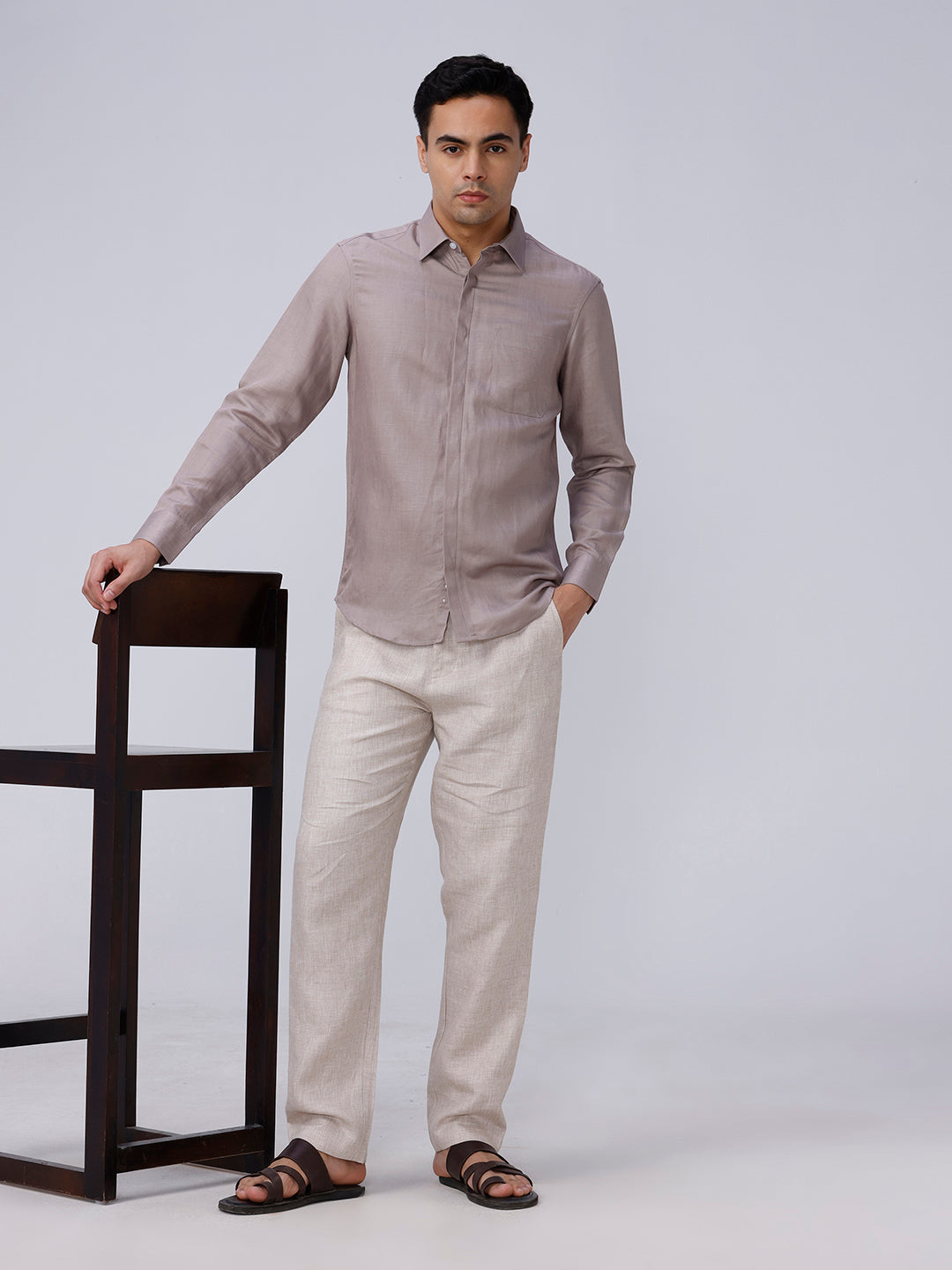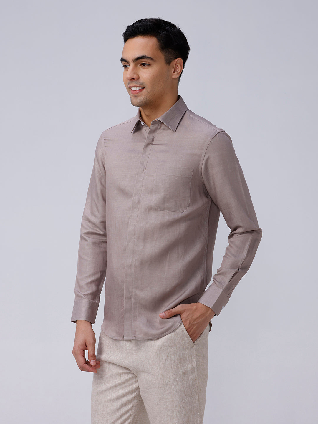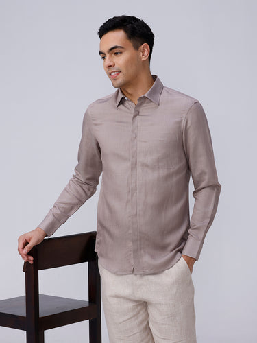 Soft Tencel fabric in a mauve-brown tone, blending style and comfort.