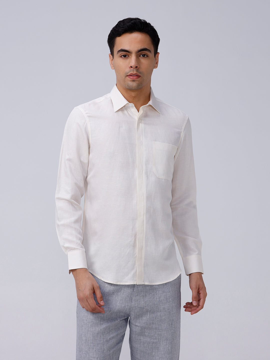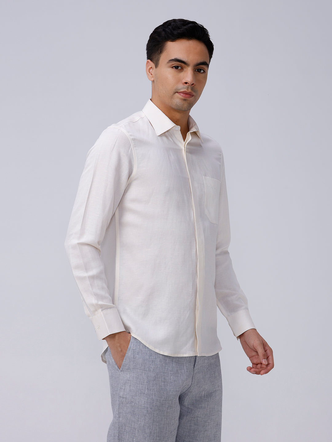 Light, breathable Tencel shirt in cream and yellow for a fresh, summery vibe.