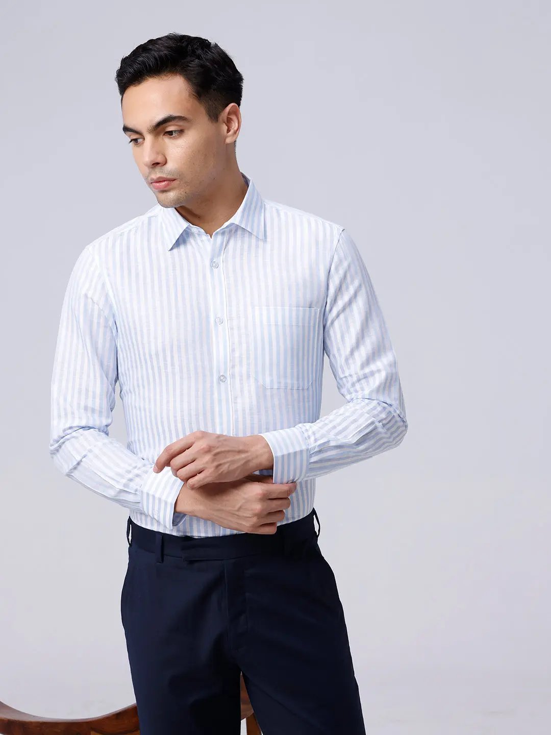 White and Blue Stripes Cotton Linen Shirt