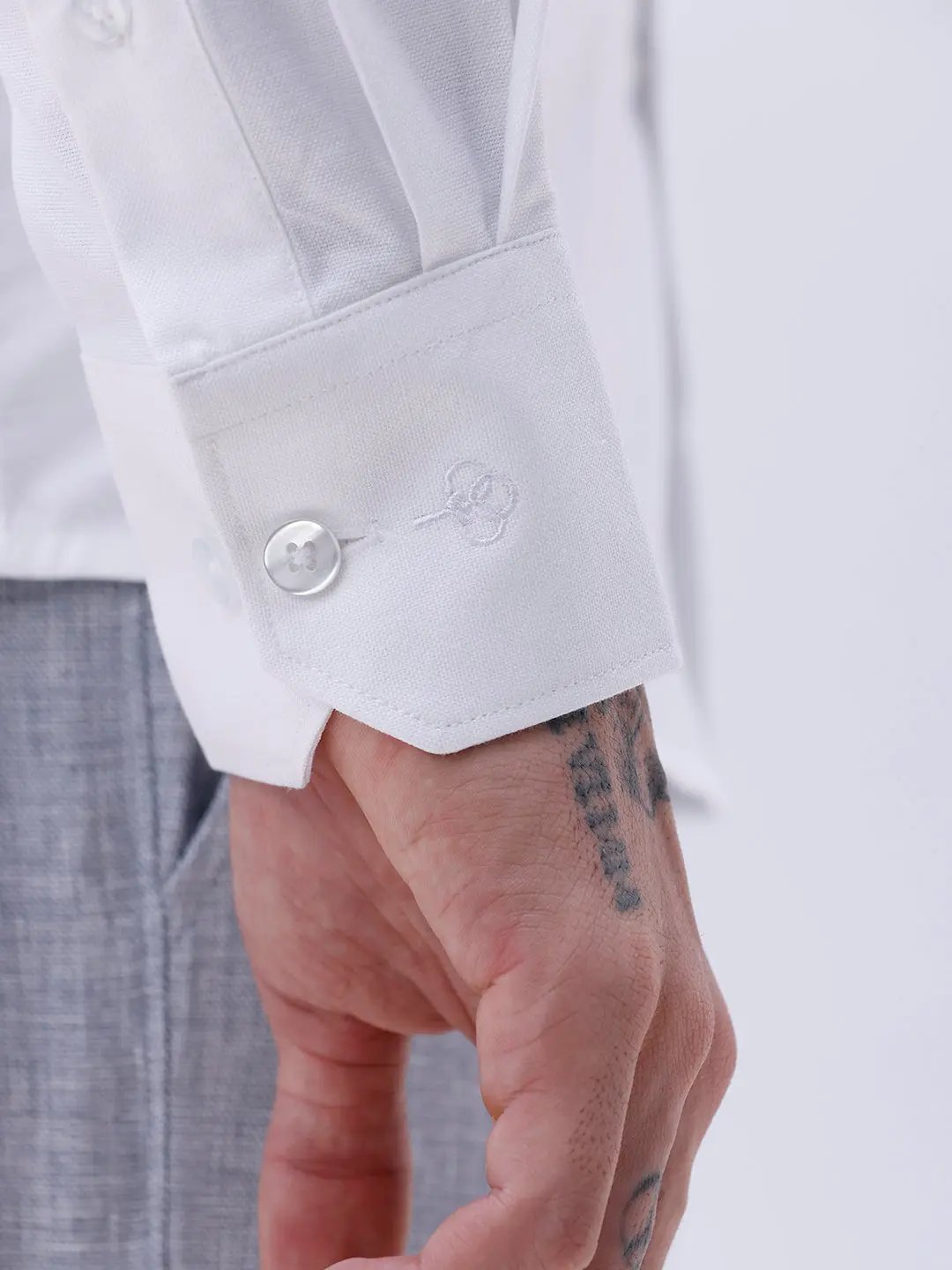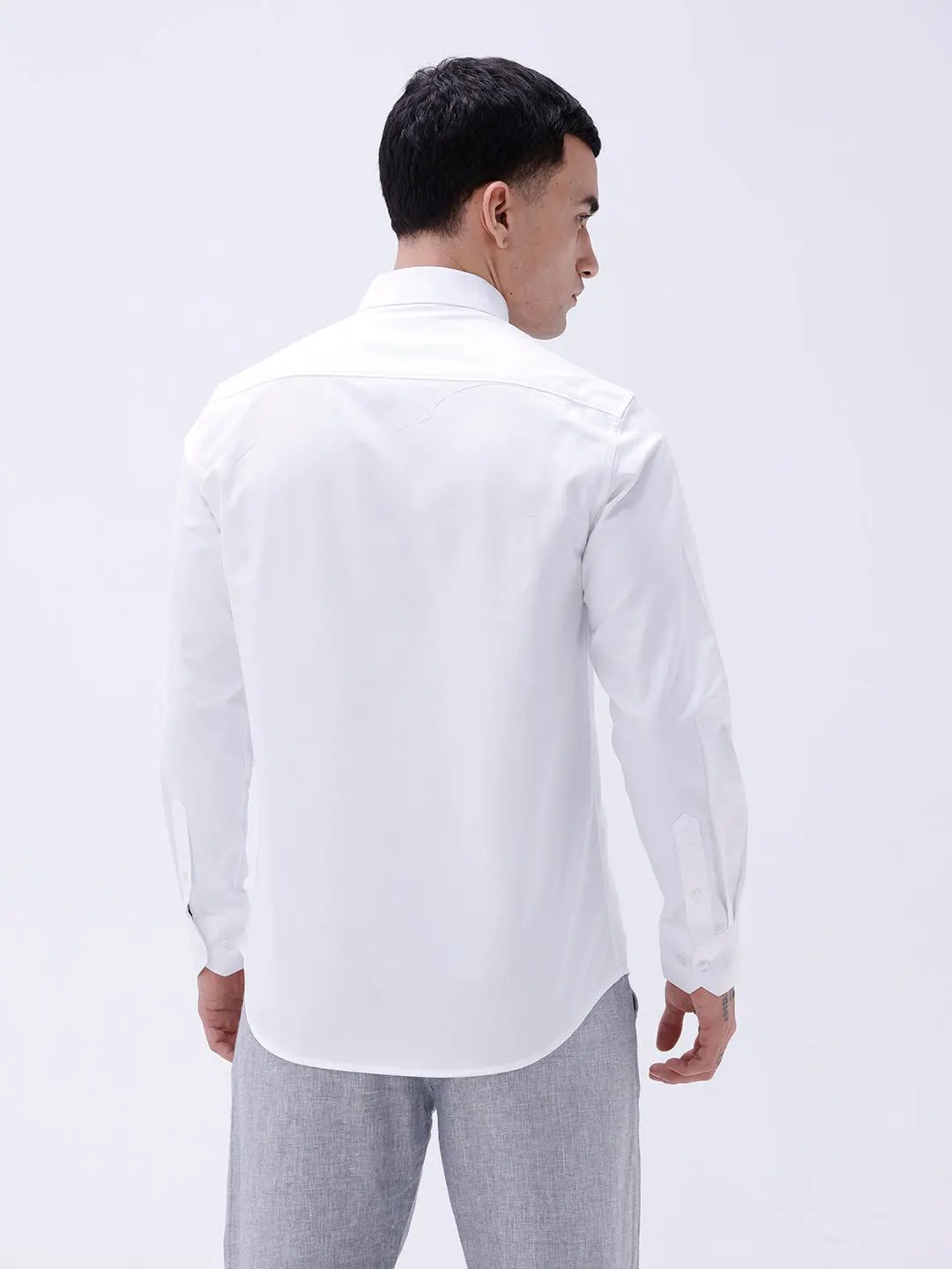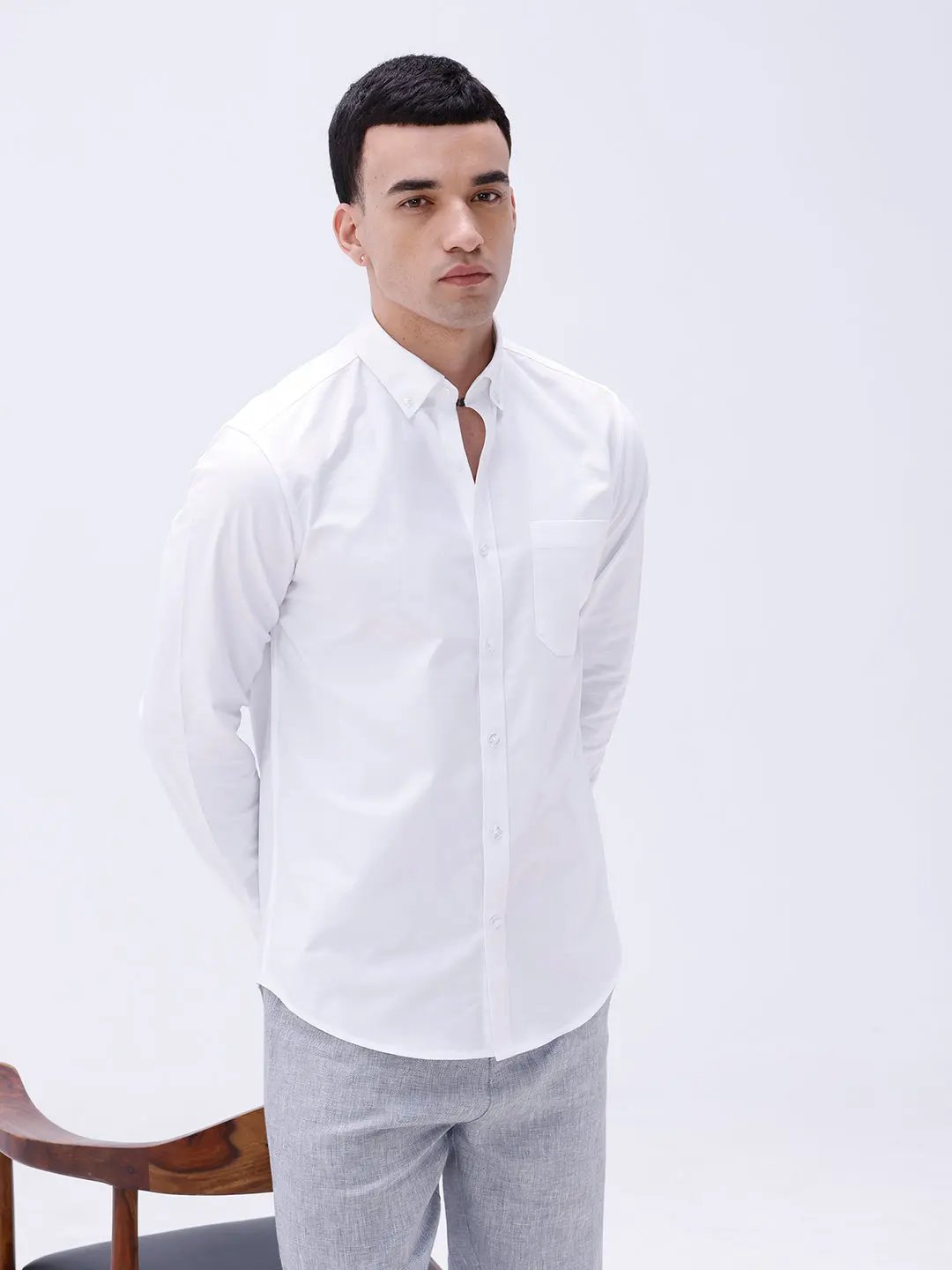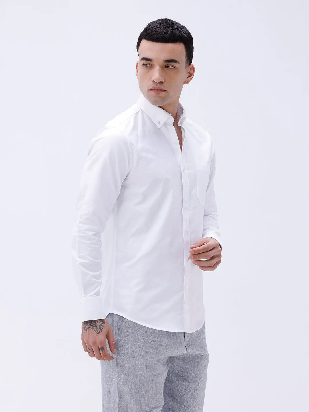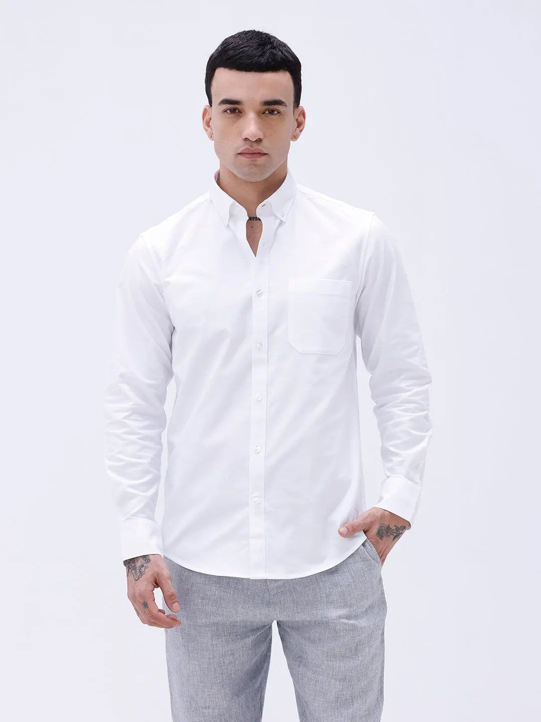 Timeless white Oxford shirt suitable for formal and smart-casual styles.