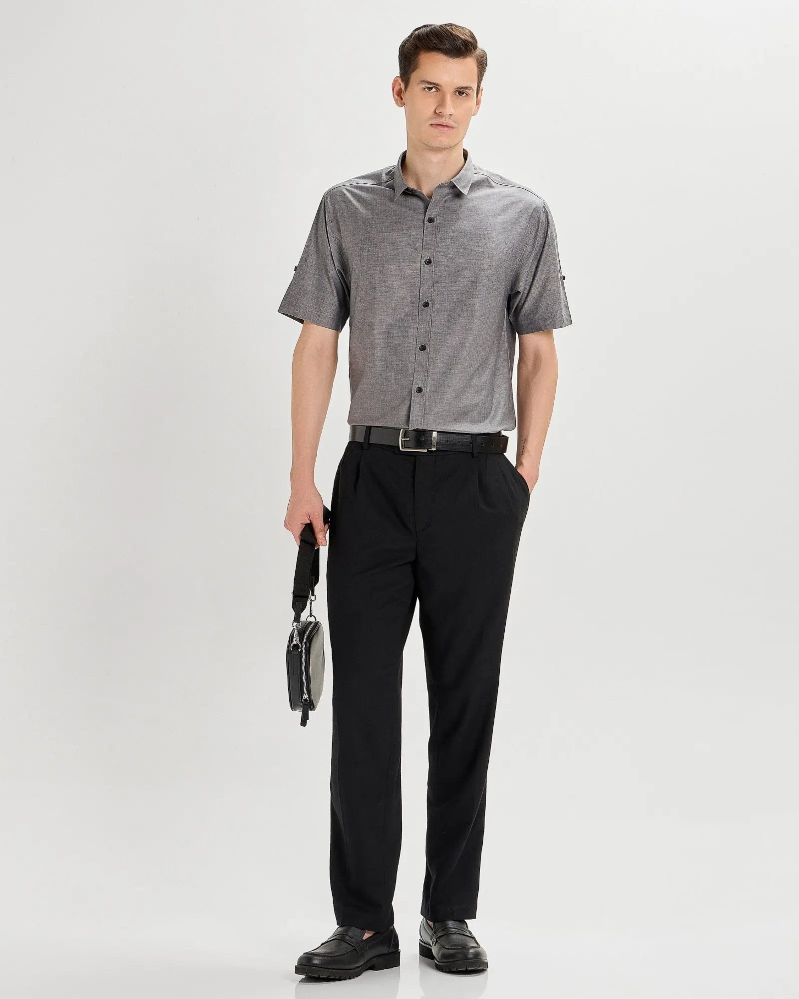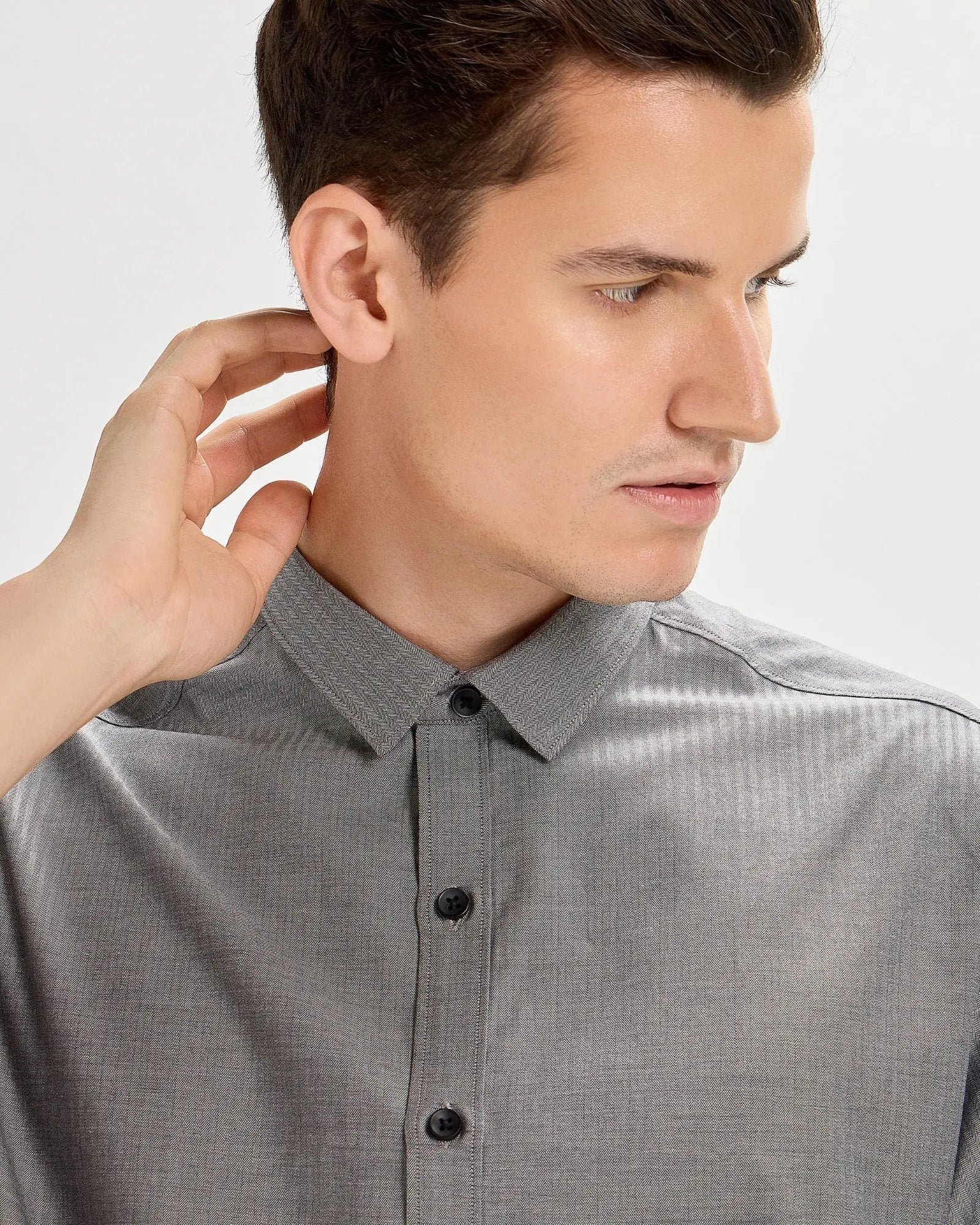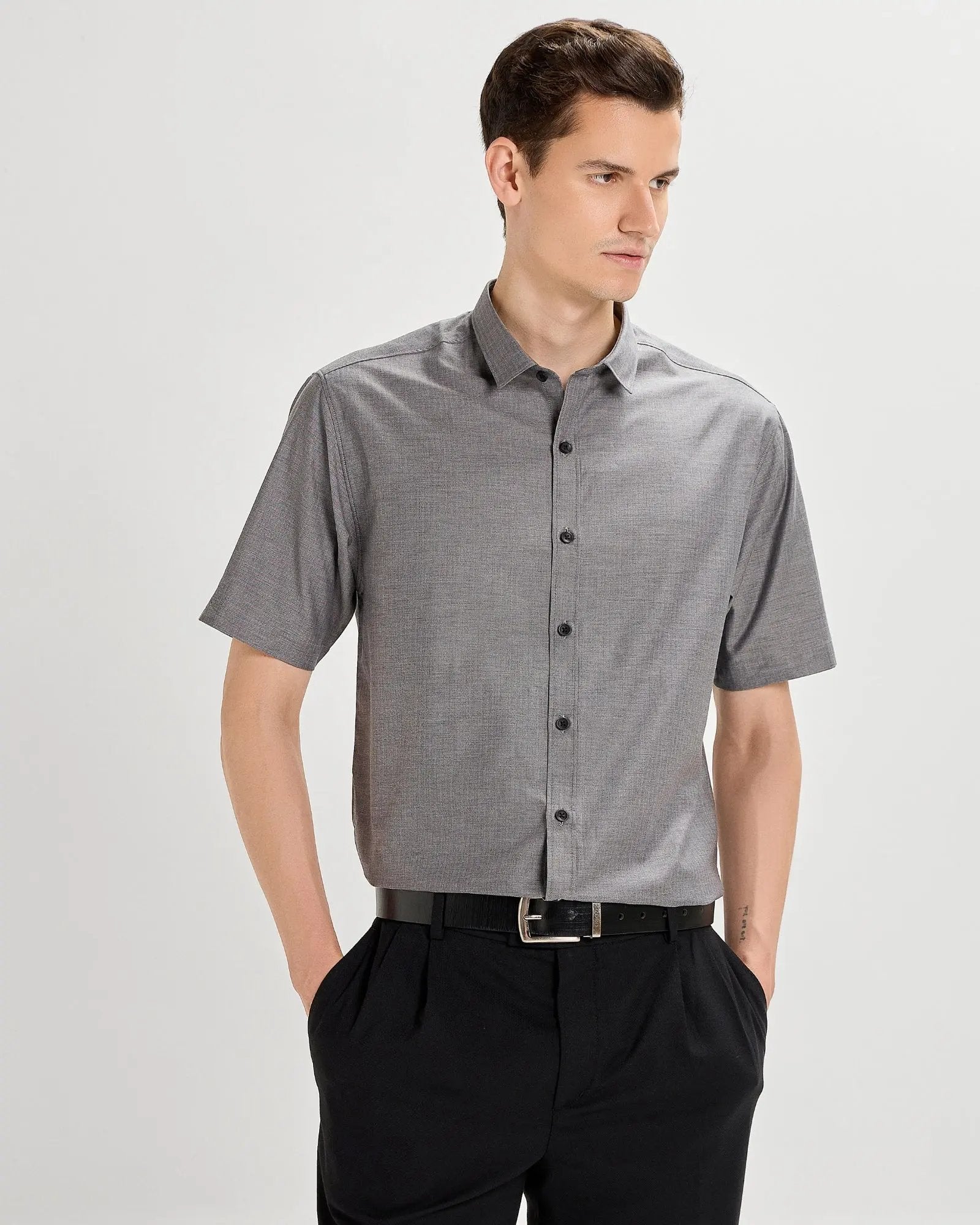 Get comfy with our grey Giza cotton shirt - perfect for summer wear. Looks stylish while keeping you cool.
