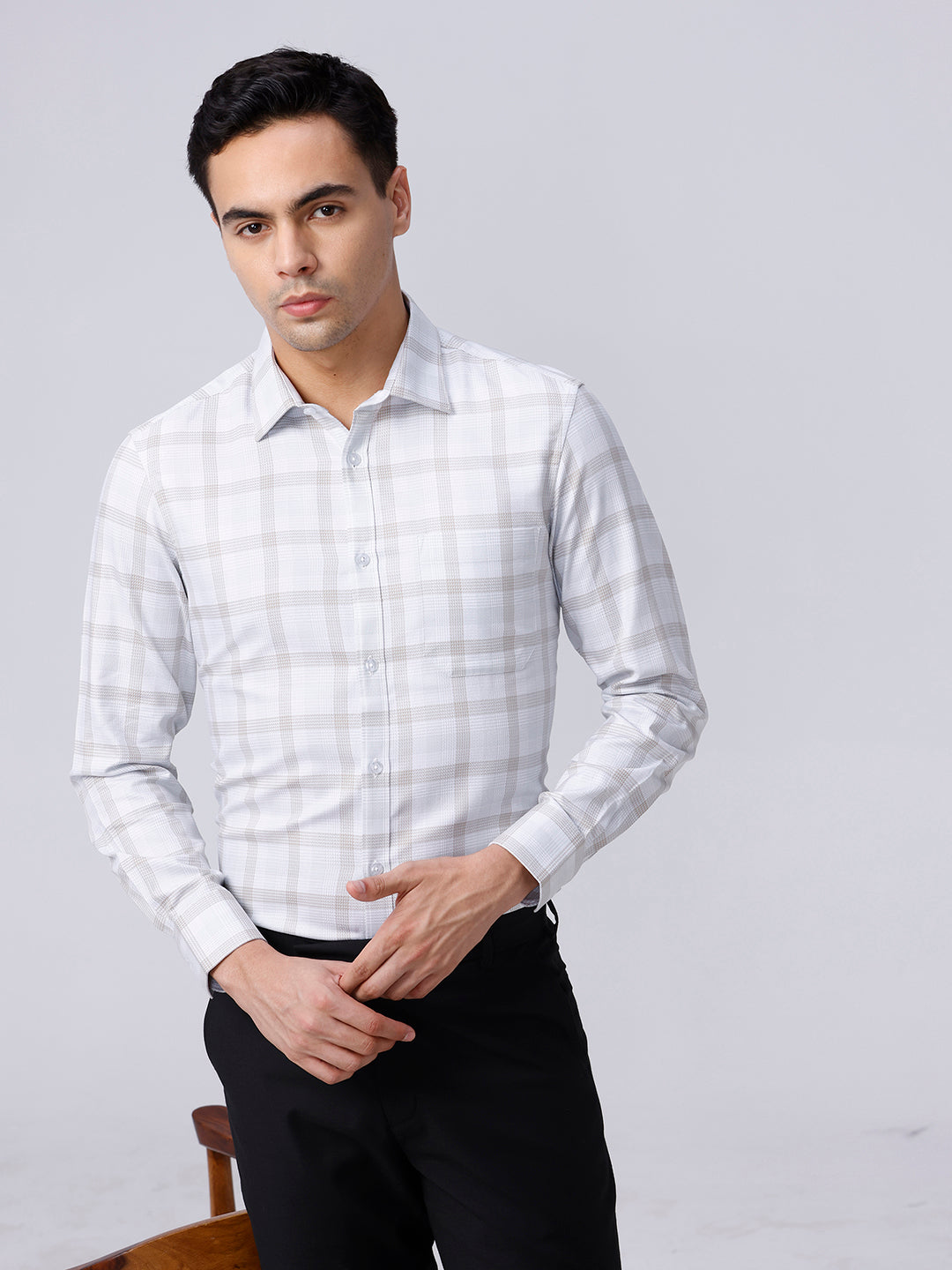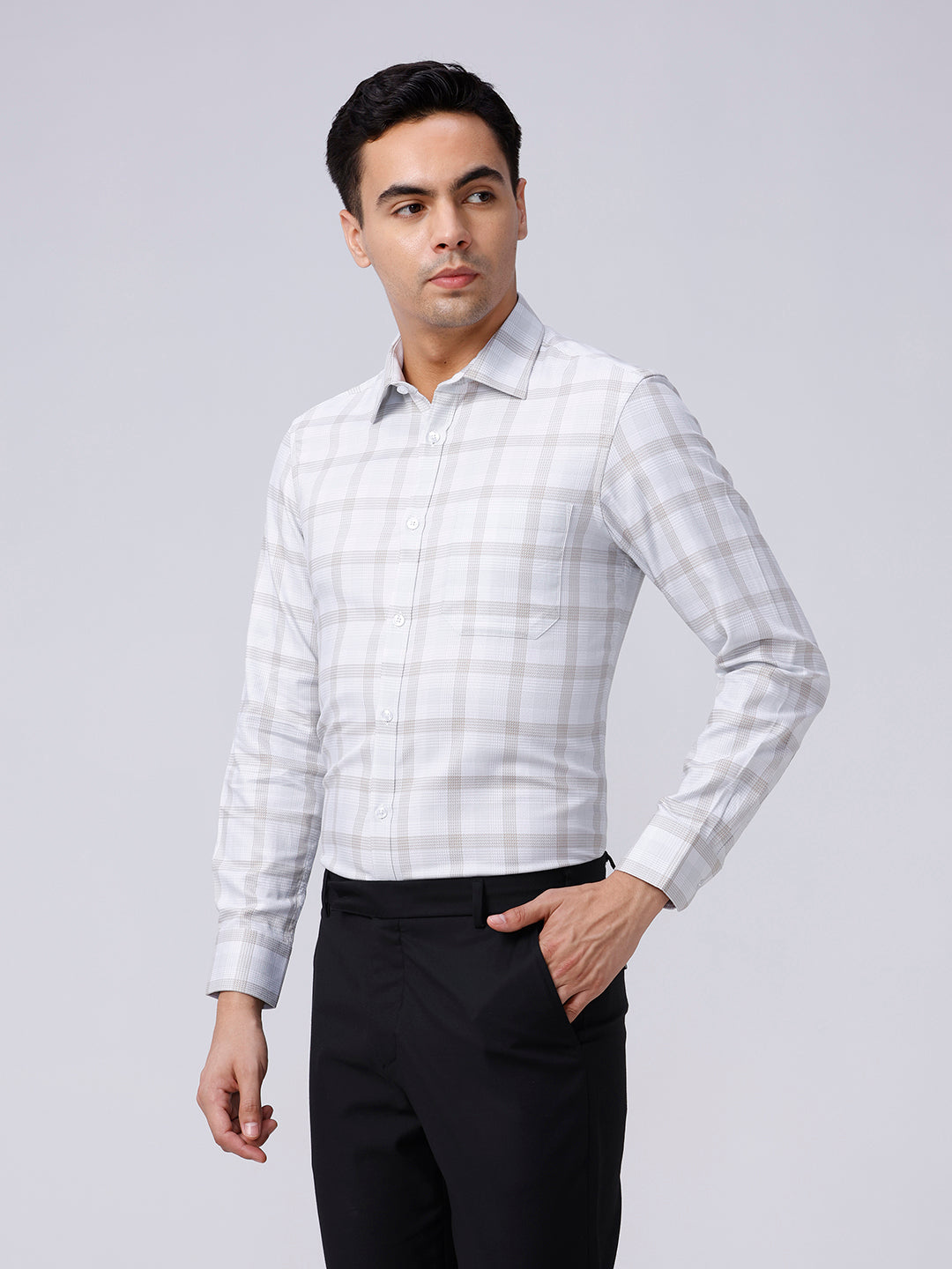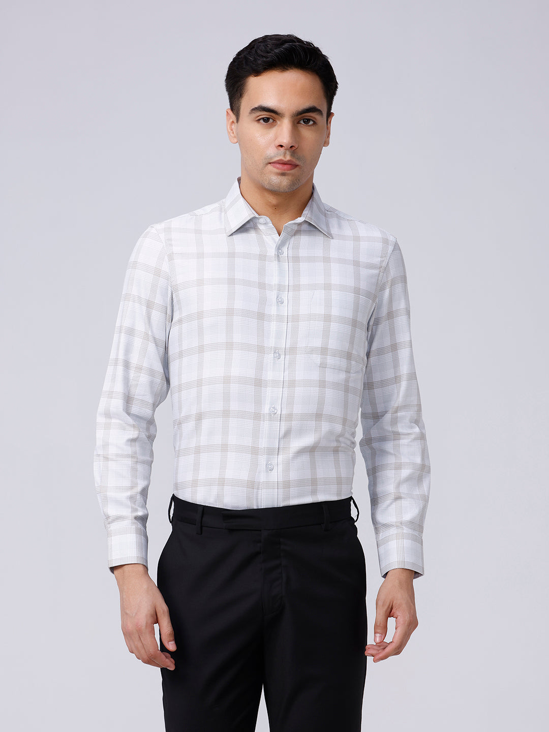 Beige and Green Checks Twill Shirt