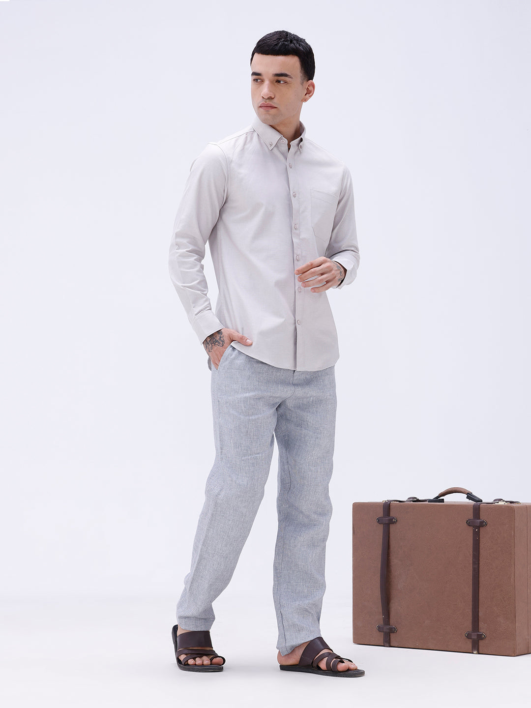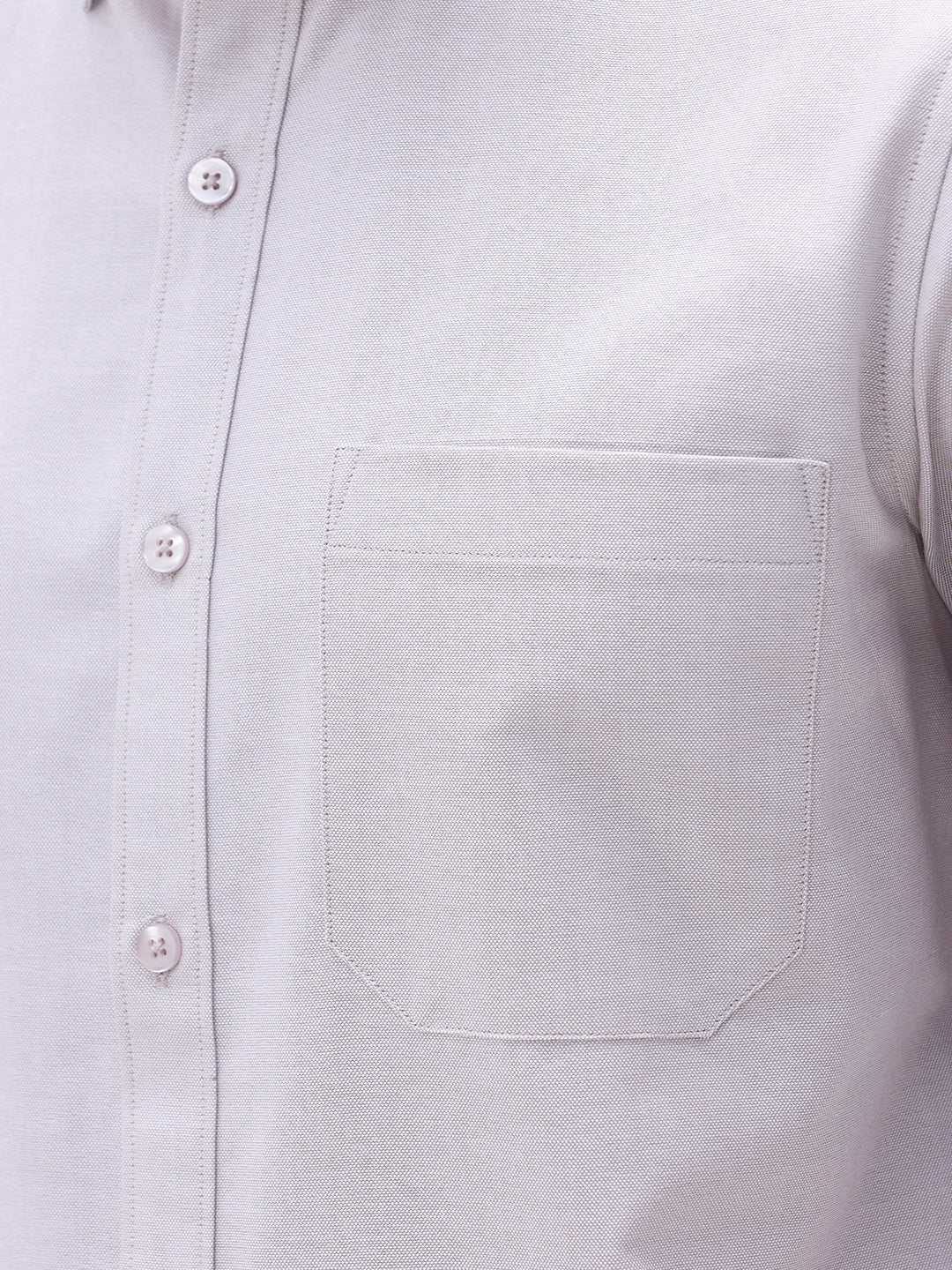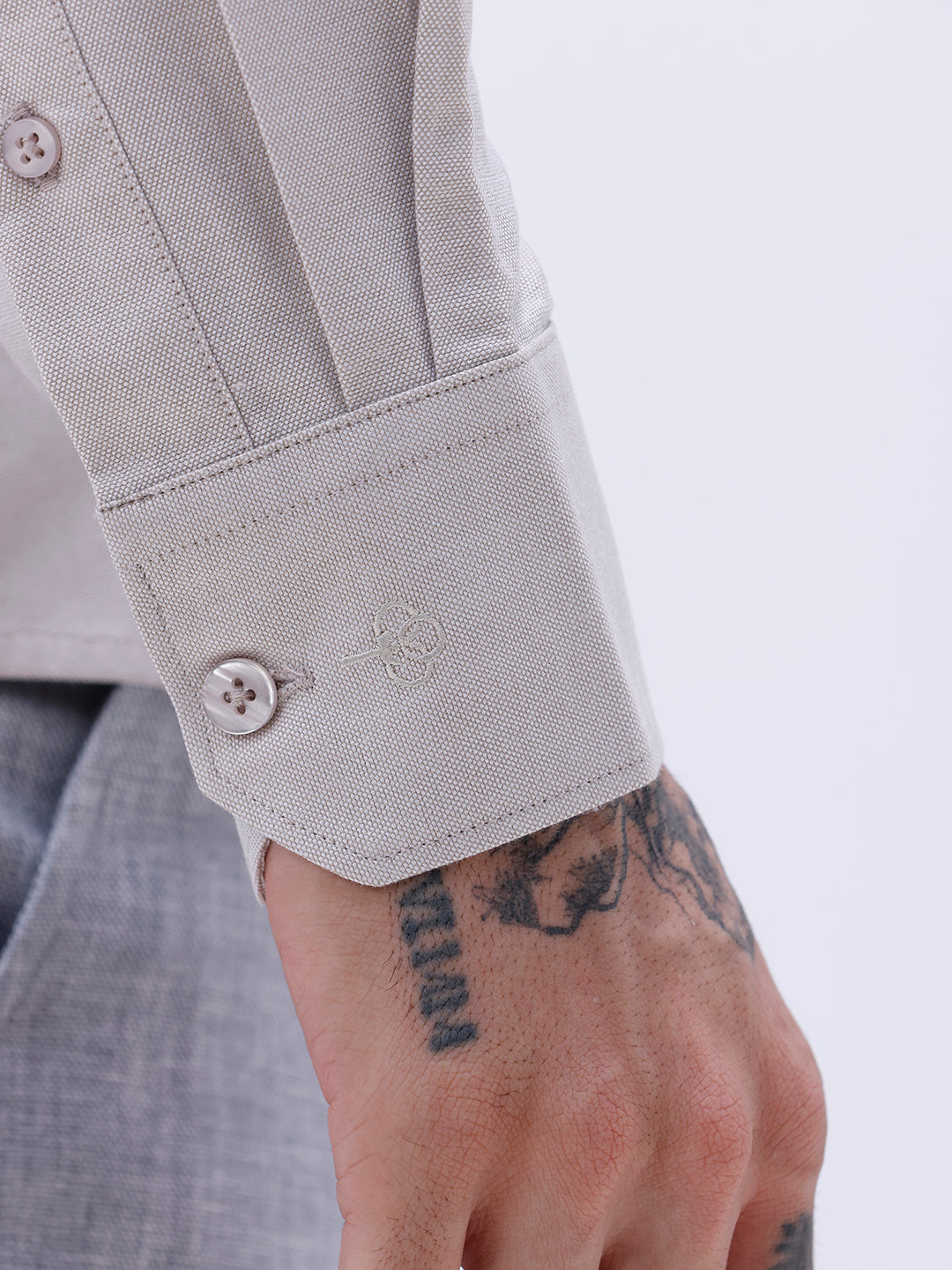 The Beige Oxford Plain Shirt features a classic design with a smooth, durable fabric, offering a refined look for both casual and semi-formal occasions.