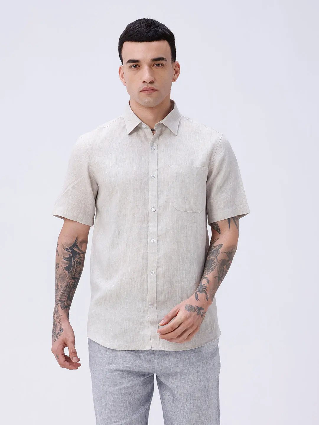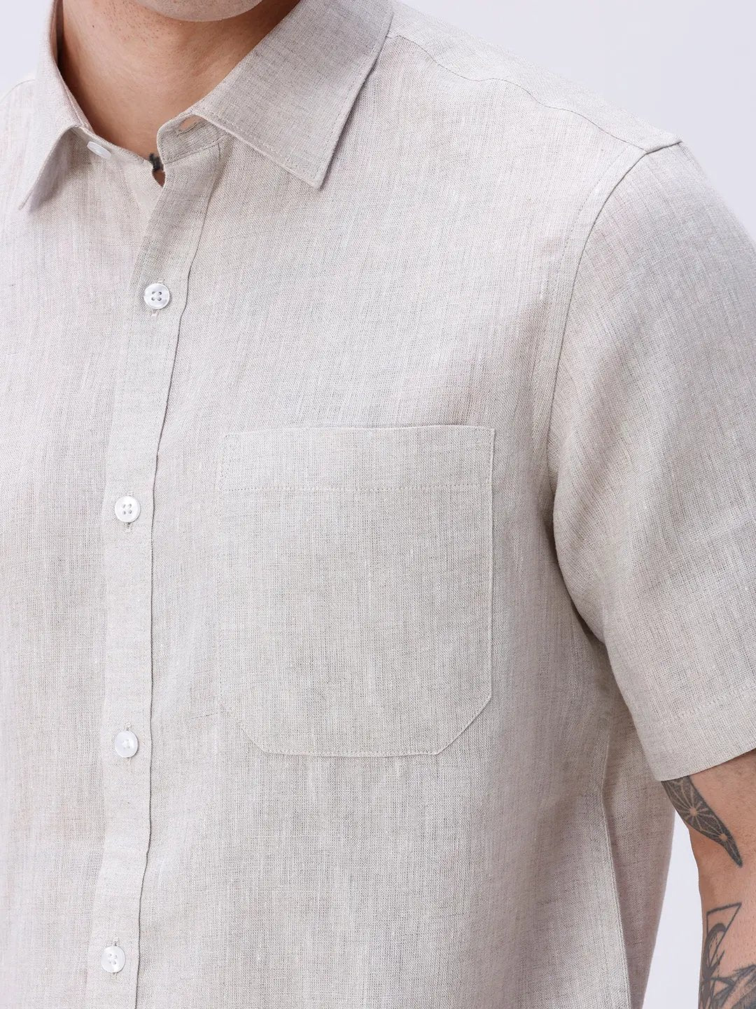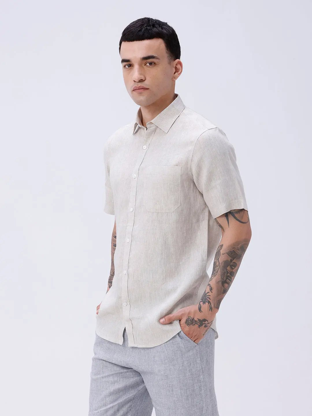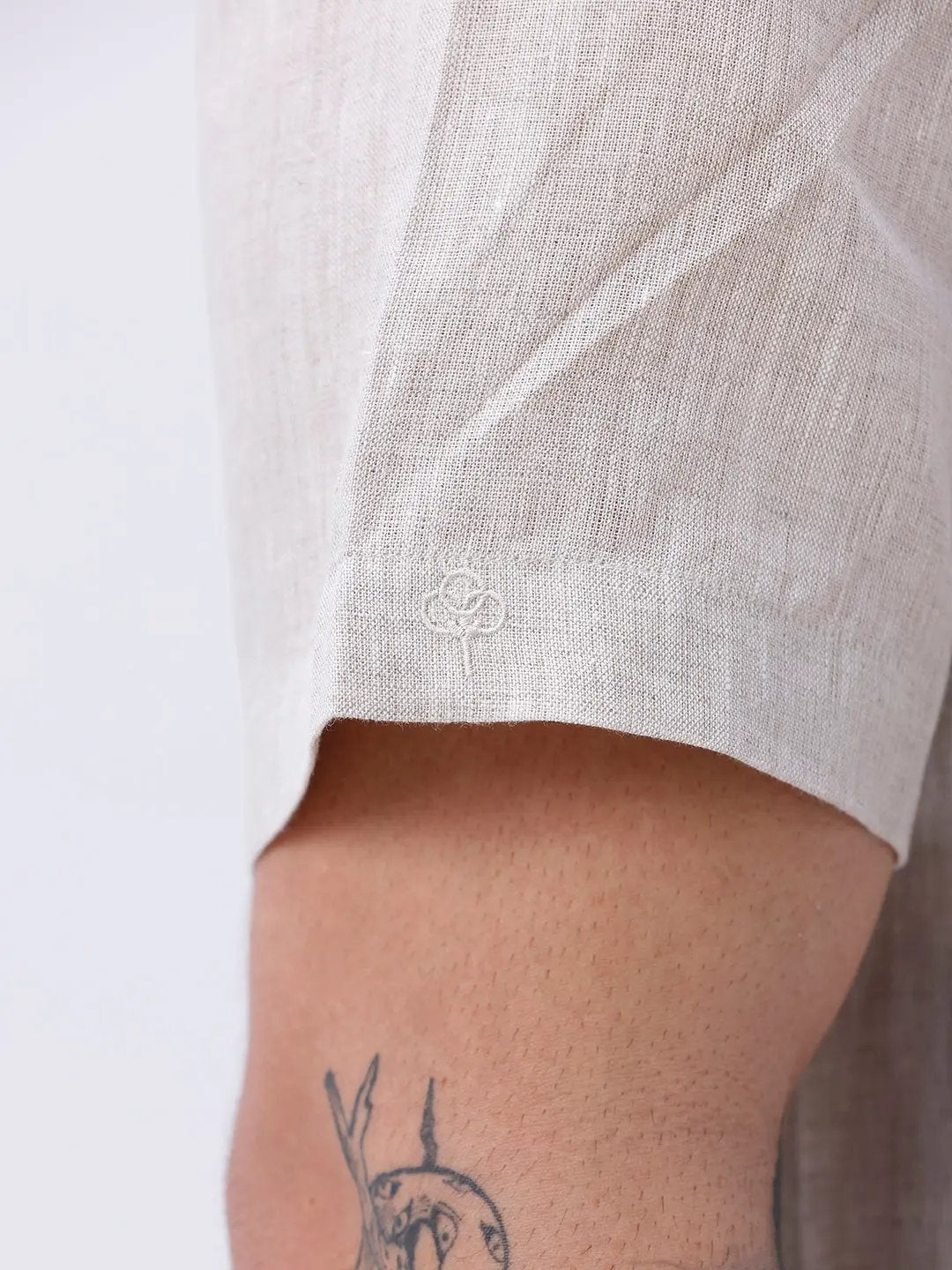 Breathable, lightweight linen shirt in beige, ideal for warm weather casual or semi-formal looks.