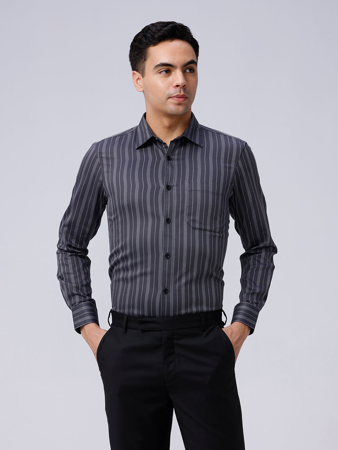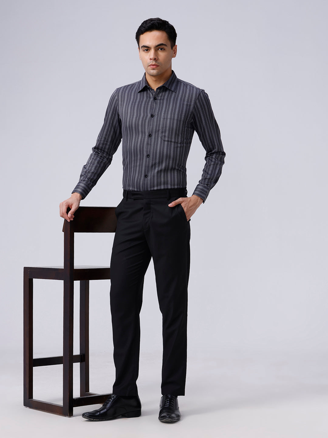 Sleek, versatile checks in black and grey on sturdy twill fabric for everyday wear.