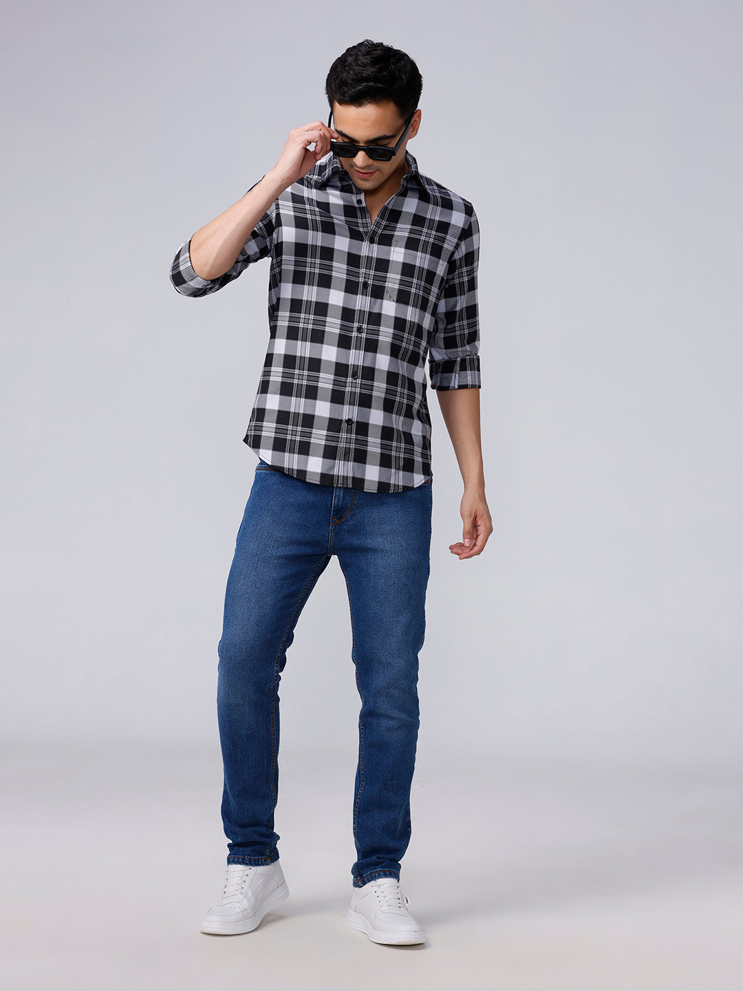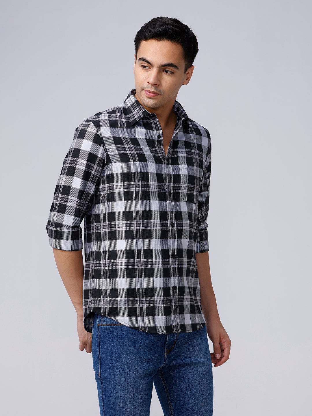 Black and White Checks Twill Shirt
