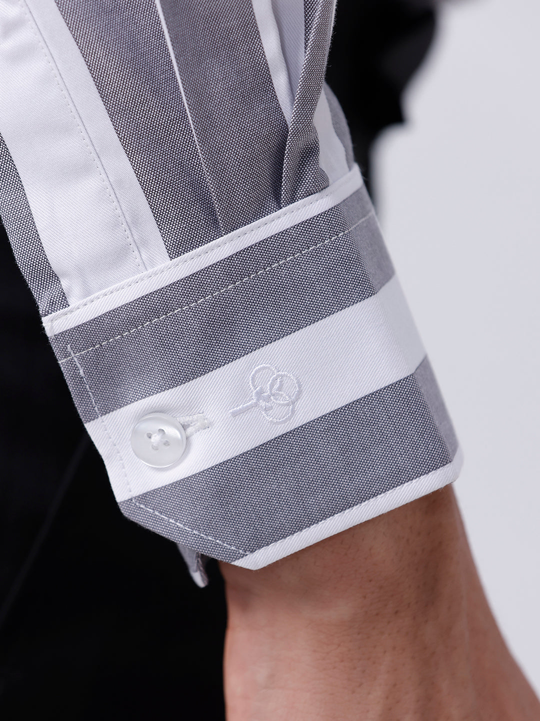 Striped dobby fabric shirt with a sleek monochrome pattern, ideal for smart casuals.