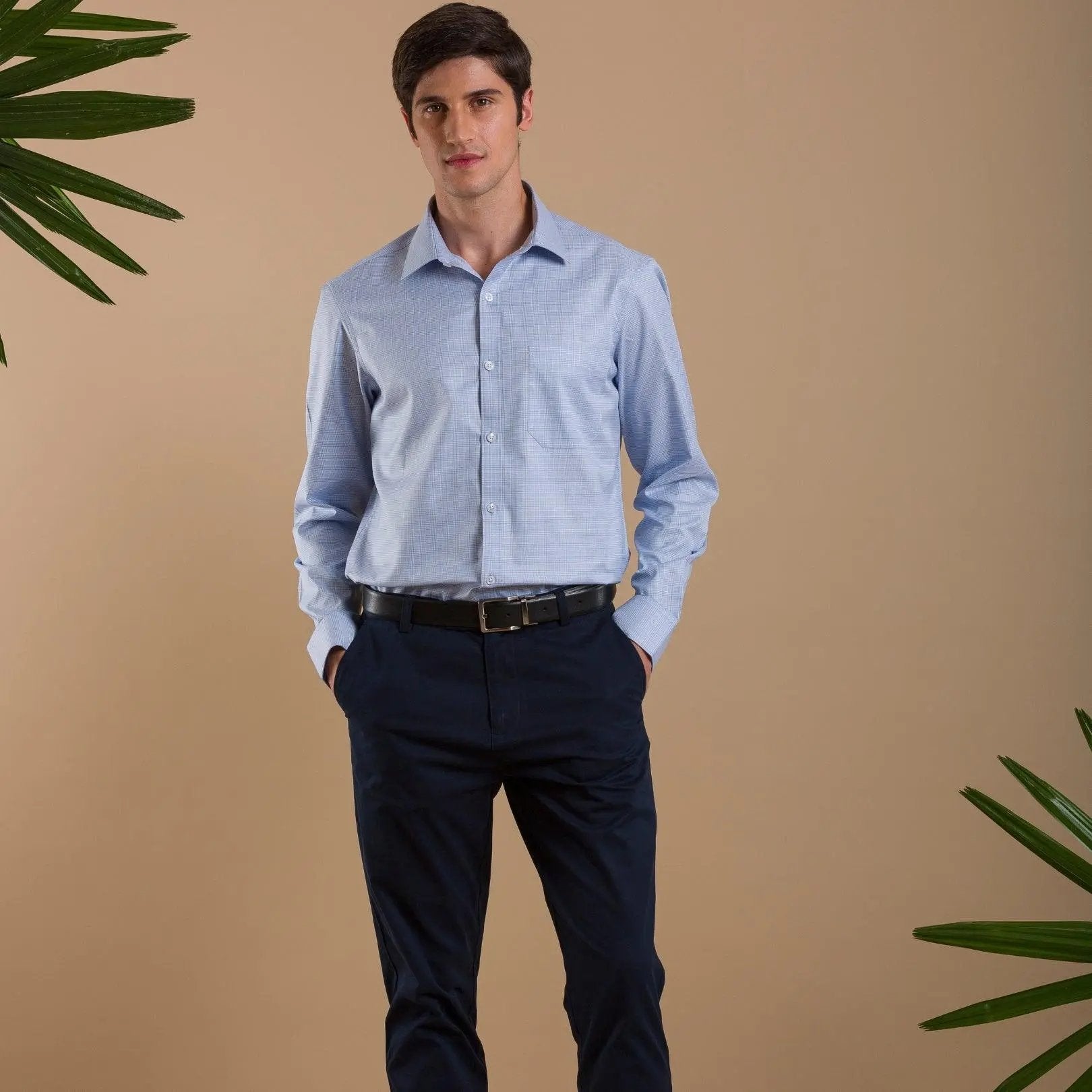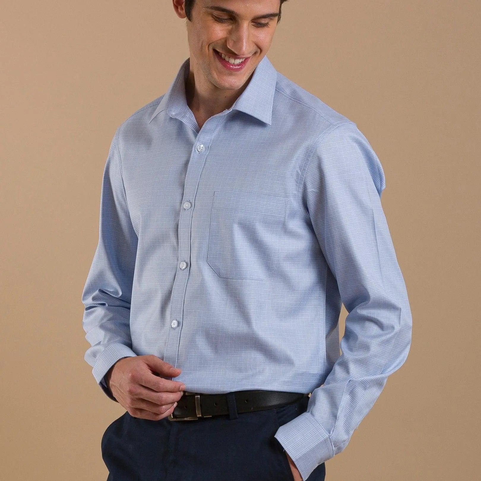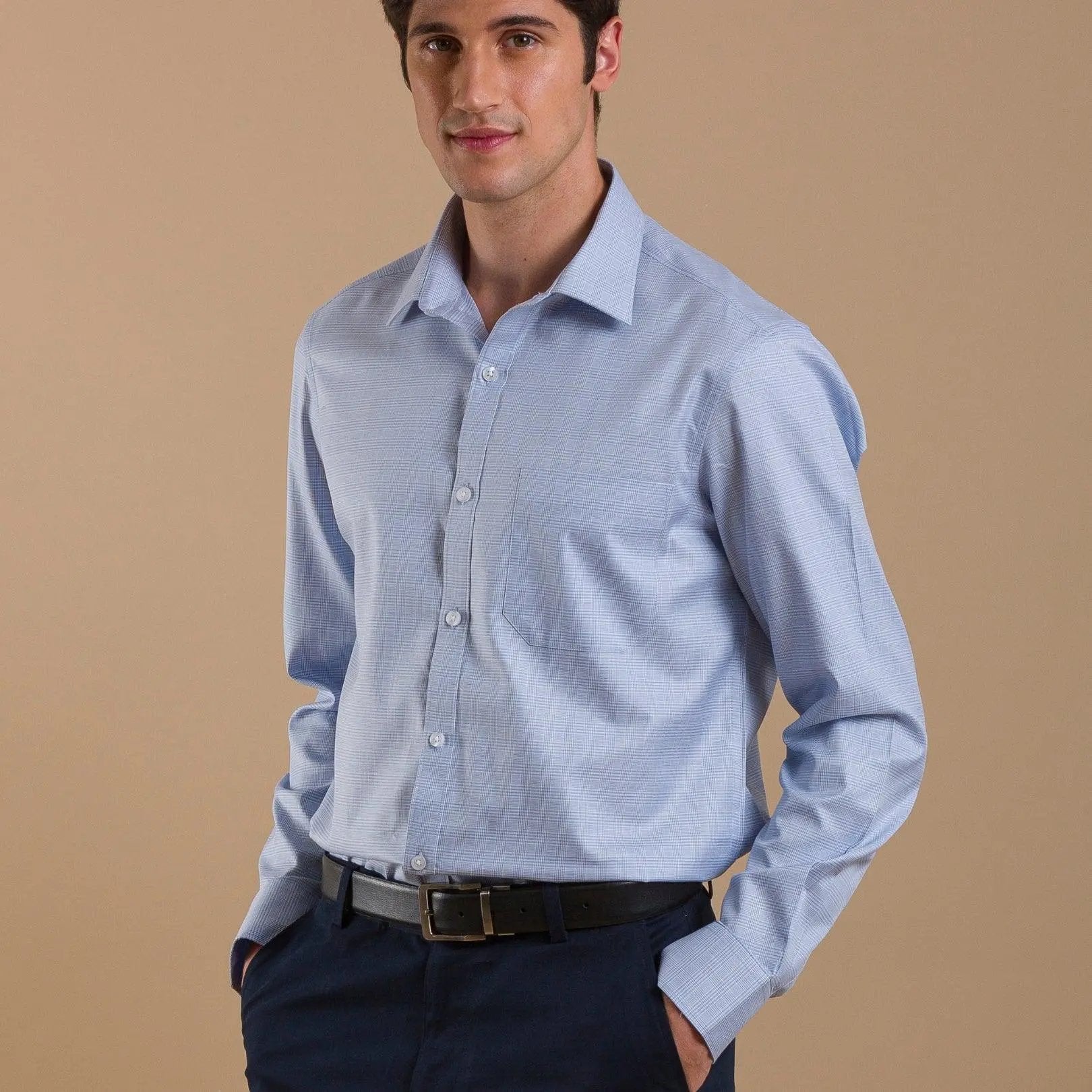 Crafted from a high-quality Giza cotton fabric and tailored to perfection, this smart blue checks shirt offers a sophisticated look that is sure to impress.