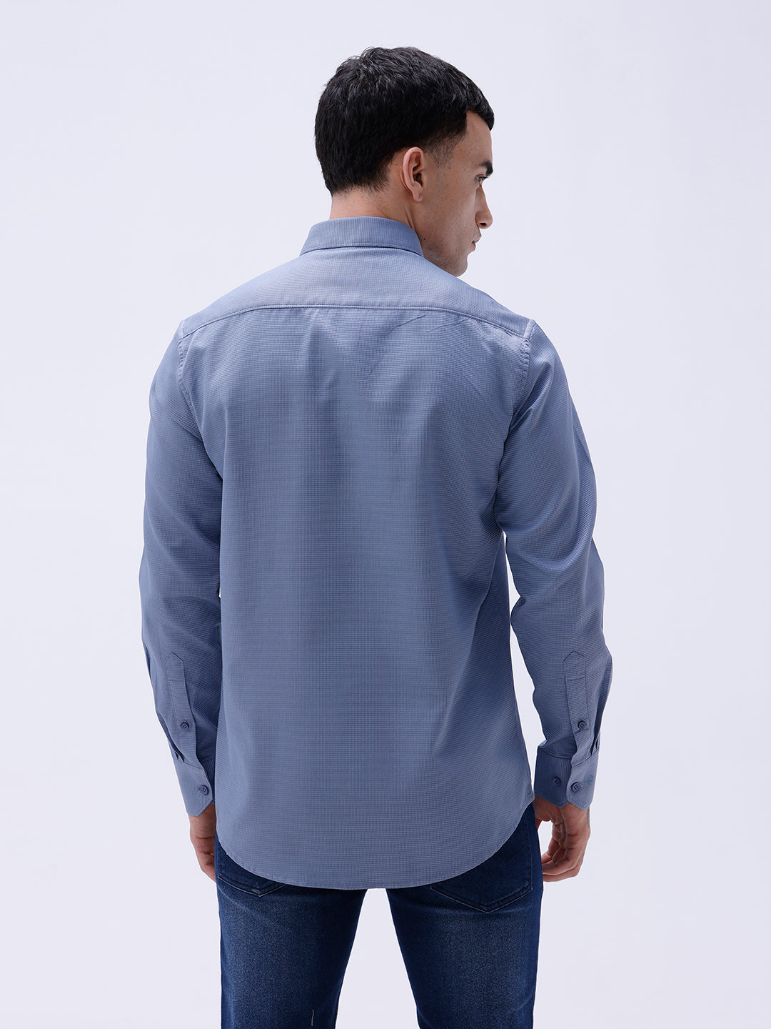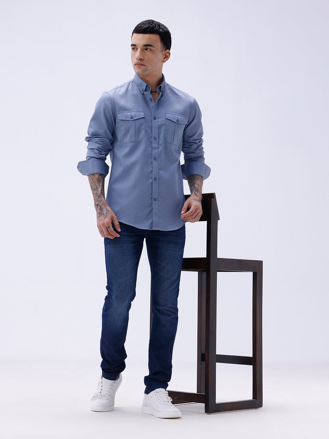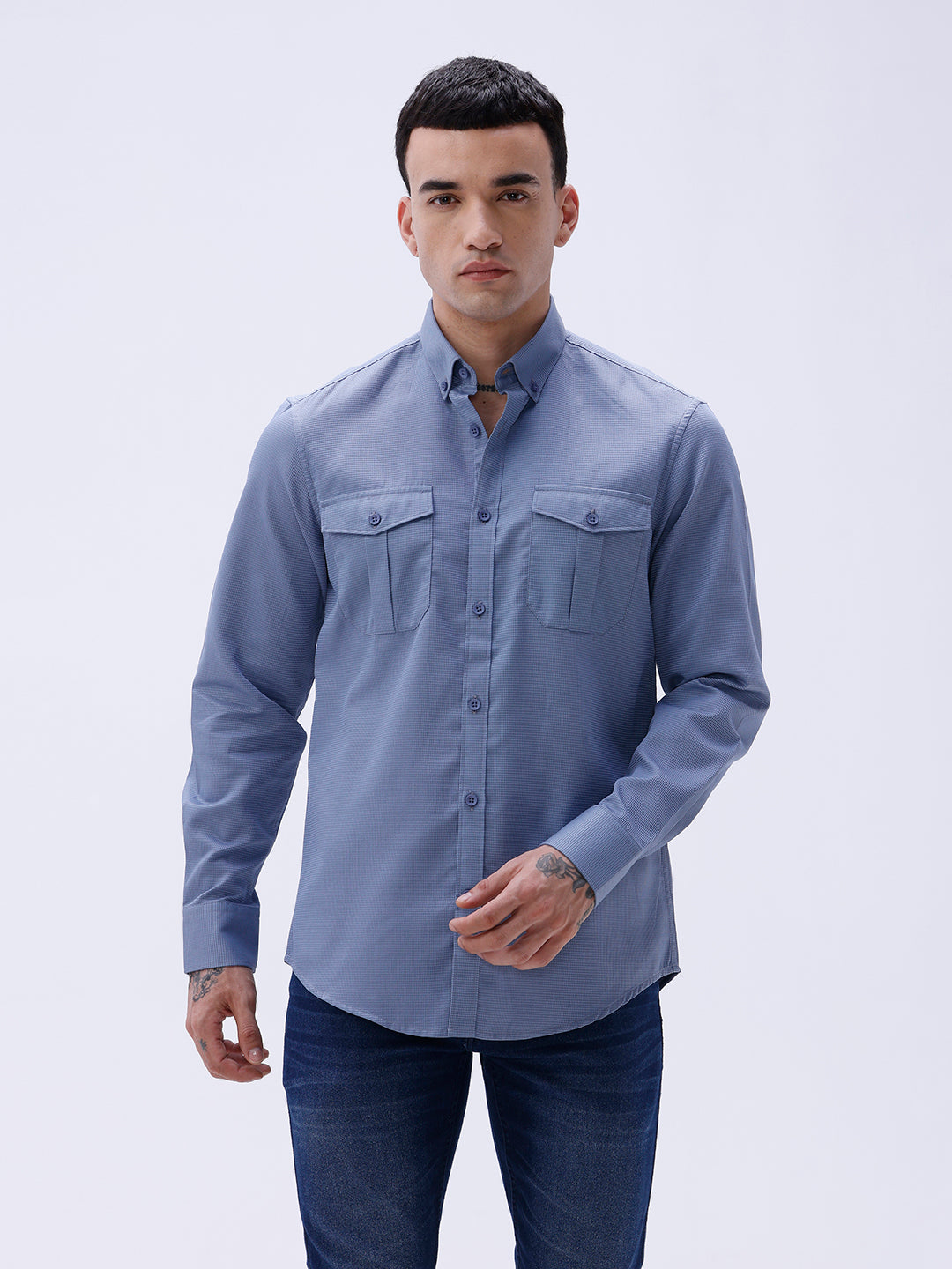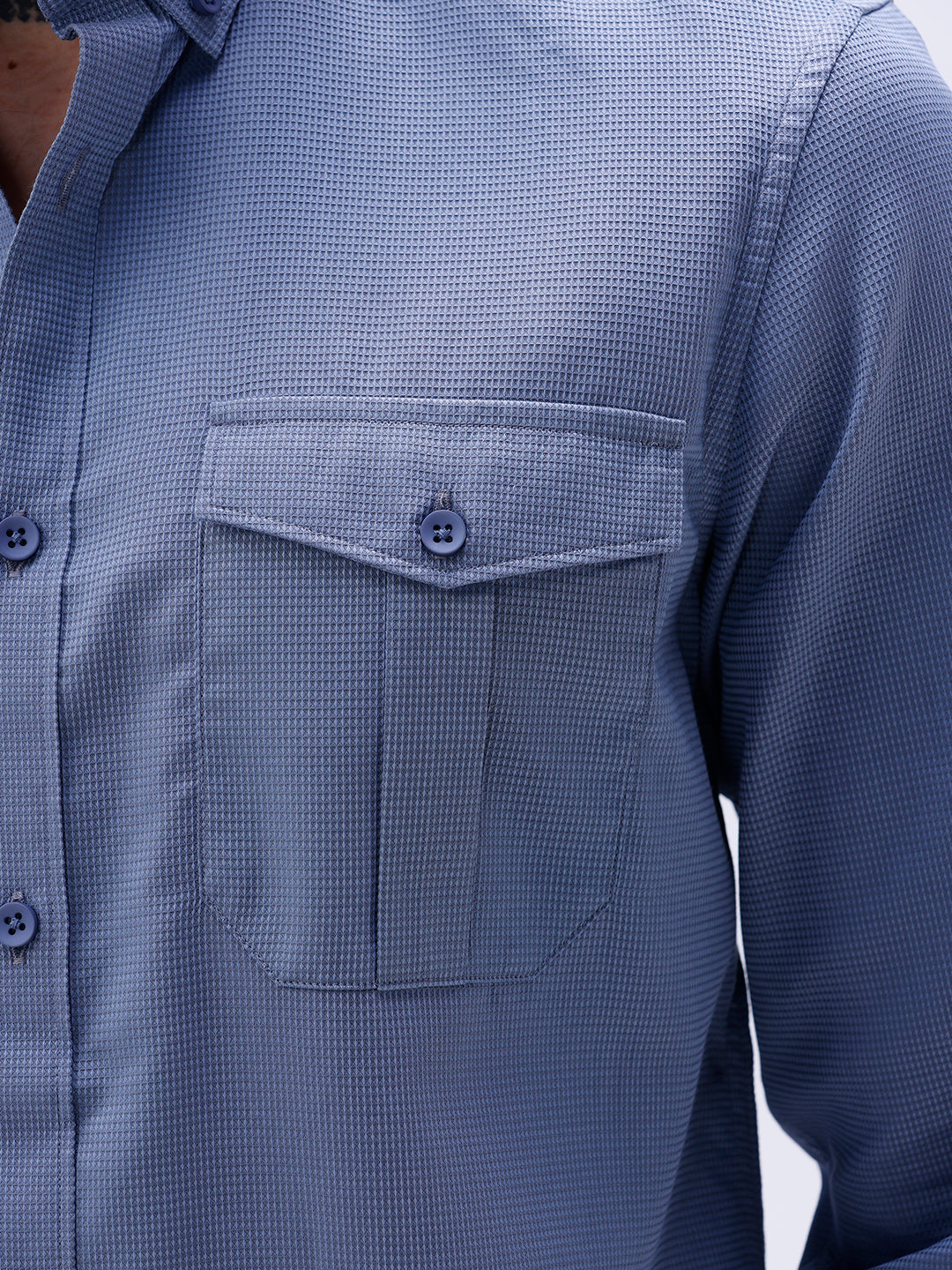 Comfortable waffle-textured shirt in blue, ideal for casual and easygoing occasions.