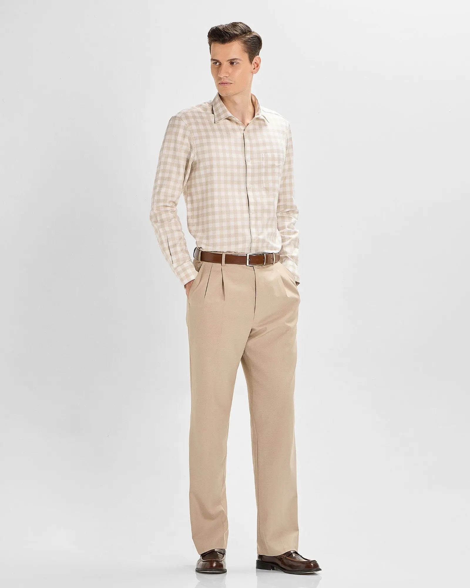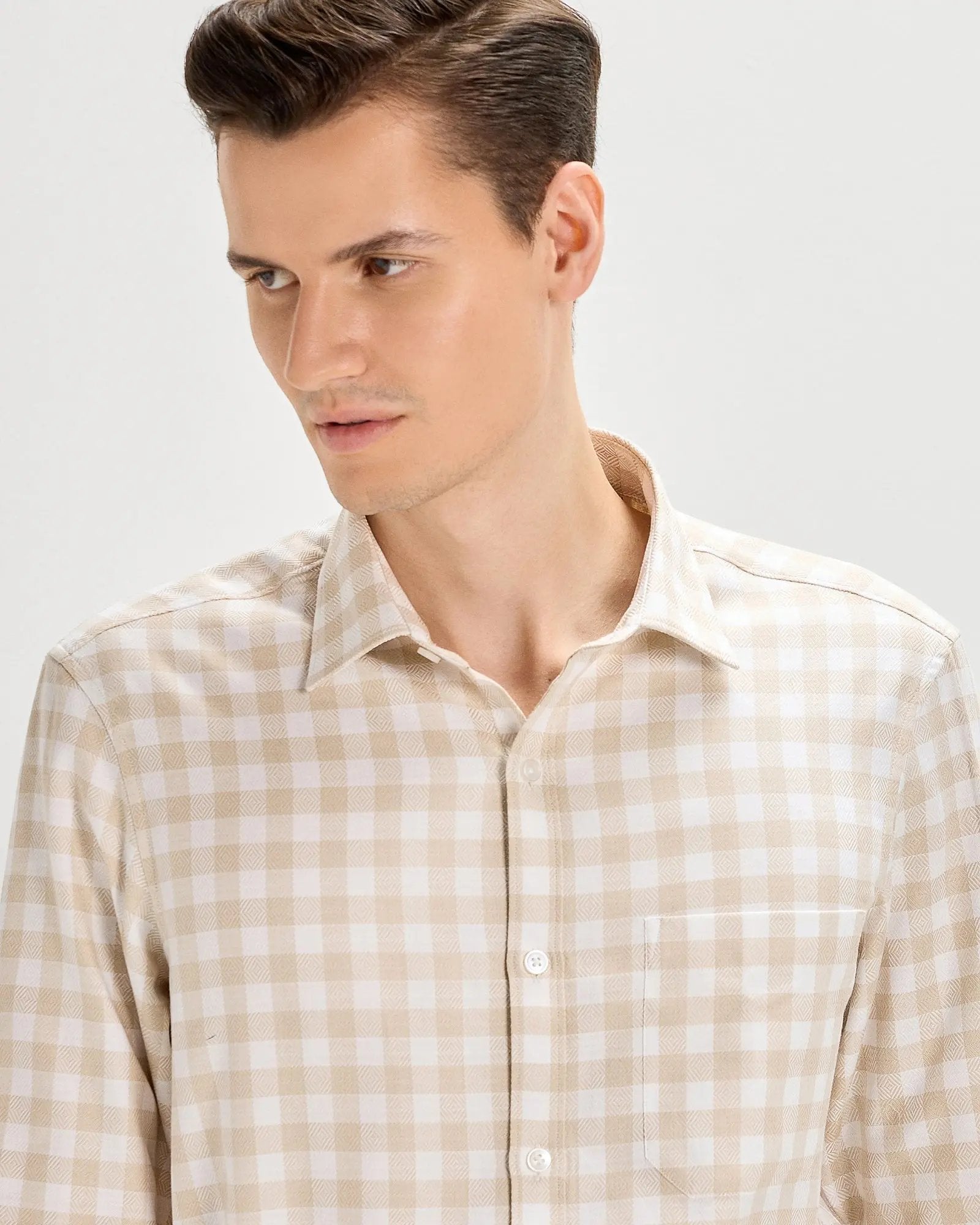 Crafted in premium Giza cotton fabric, this checked shirt offers both a comfortable fit and a formal look in one package.